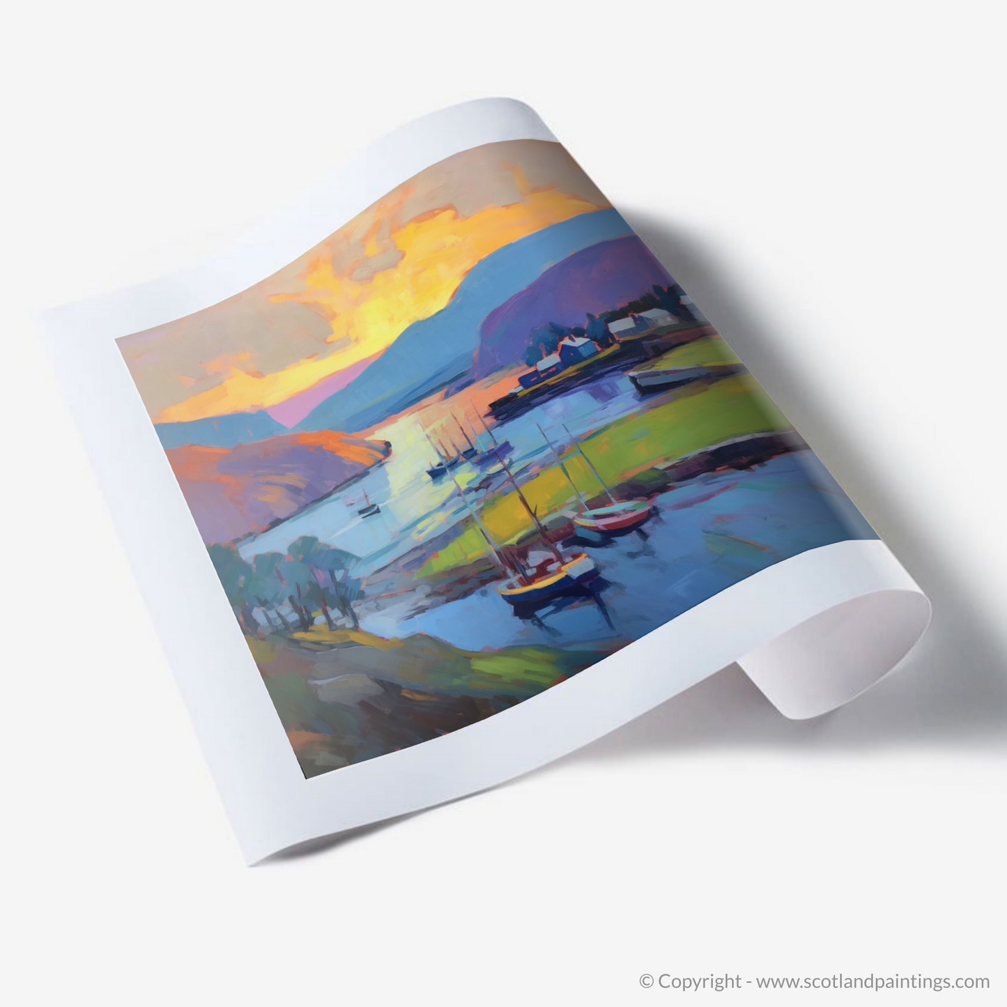 This print invites the viewer to lose themselves in the tranquil haven of the harbour, offering a moment of calm and contemplation. Whether to reminisce about days spent by the sea or to dream of distant Scottish shores, this piece is a perfect addition to any space seeking a touch of quiet majesty and painterly finesse.