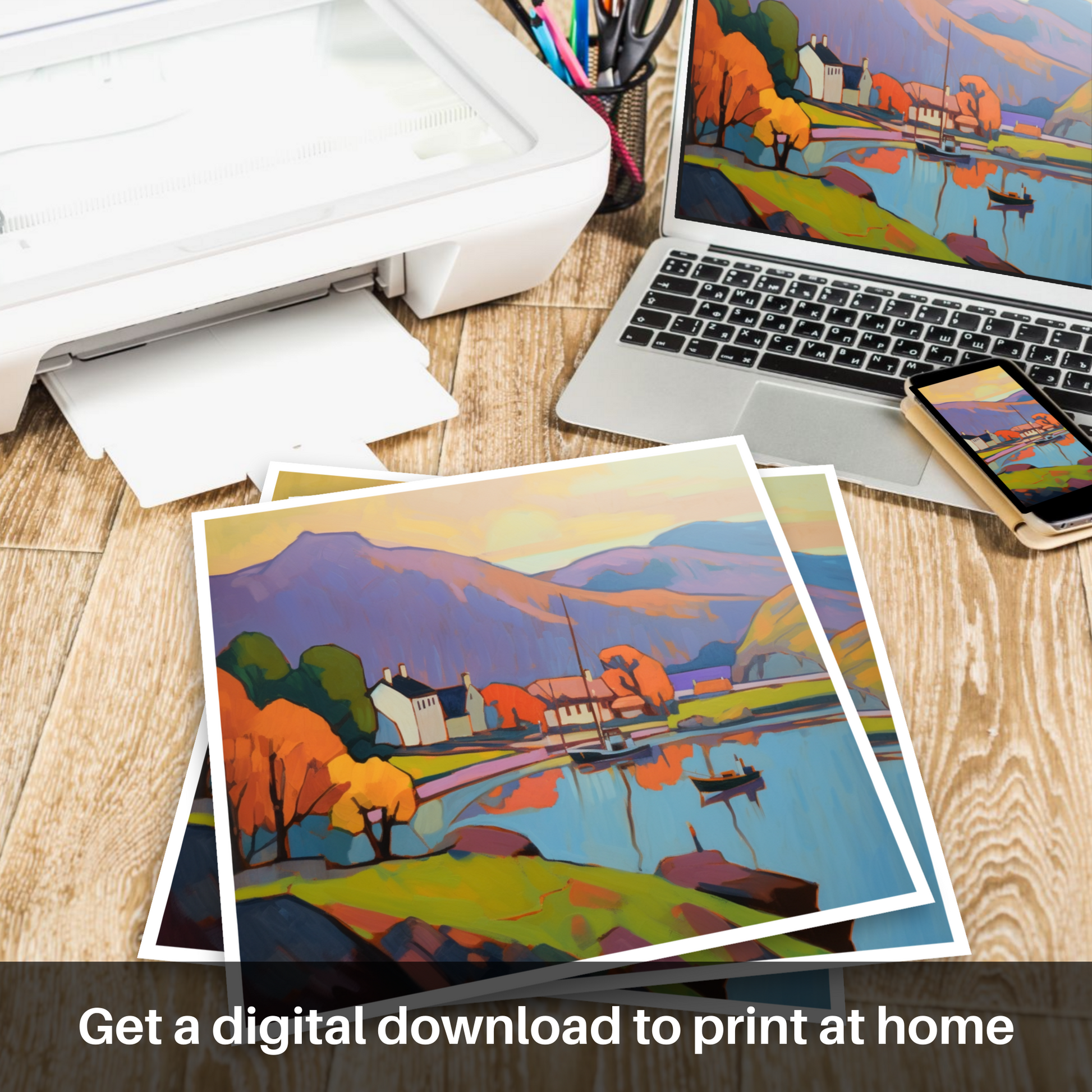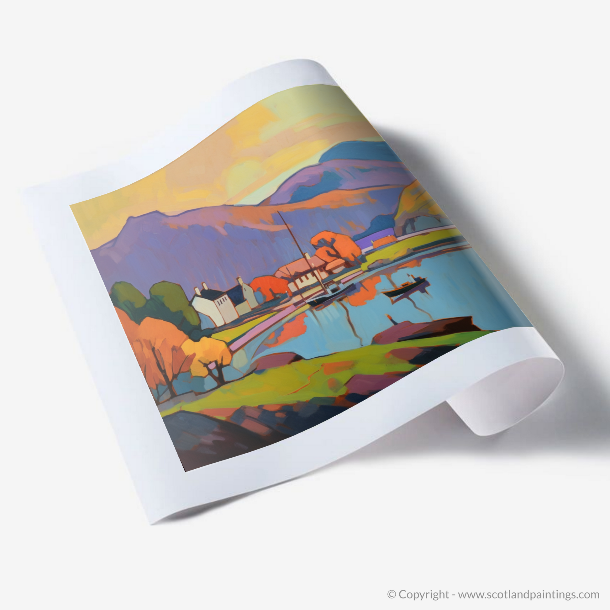 This print transports the viewer to a place where nature’s beauty and human habitation exist in harmonious balance. It's a testament to the timeless allure of Scotland's coastal landscapes and is sure to evoke a sense of calm and wonder in any space it adorns.