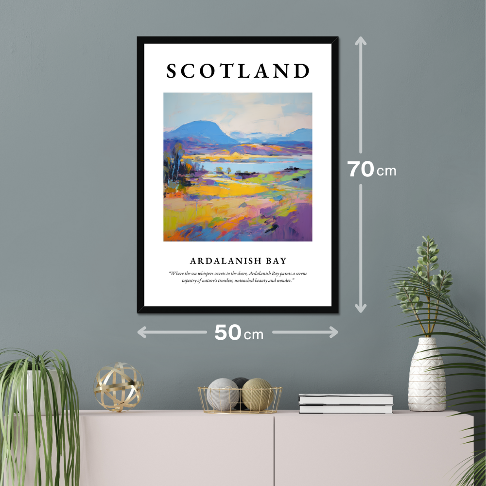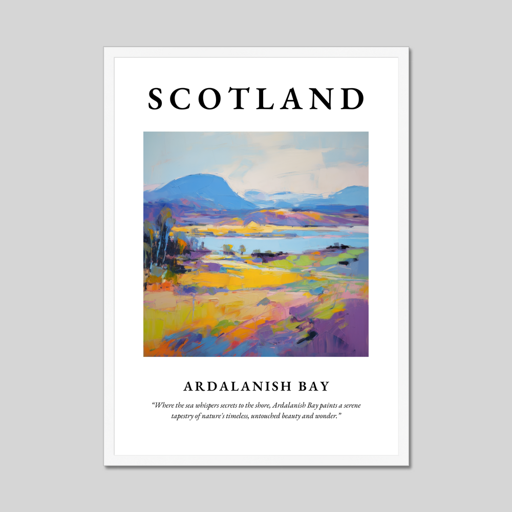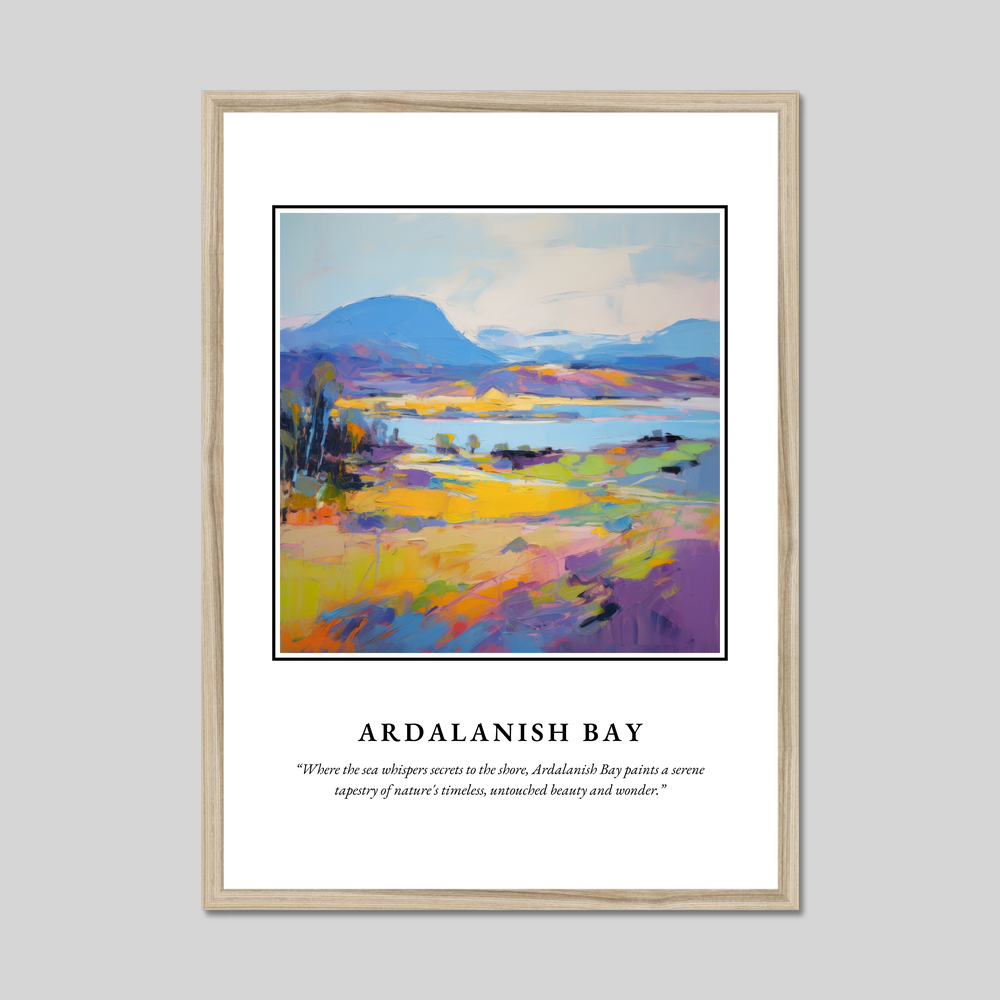 Underneath the painting, you'll find the evocative quote: “Where the sea whispers secrets to the shore, Ardalanish Bay paints a serene tapestry of nature's timeless, untouched beauty and wonder.” This poetic touch complements the art on display, inviting you to lose yourself in the tranquillity and wonder evoked by the scene.