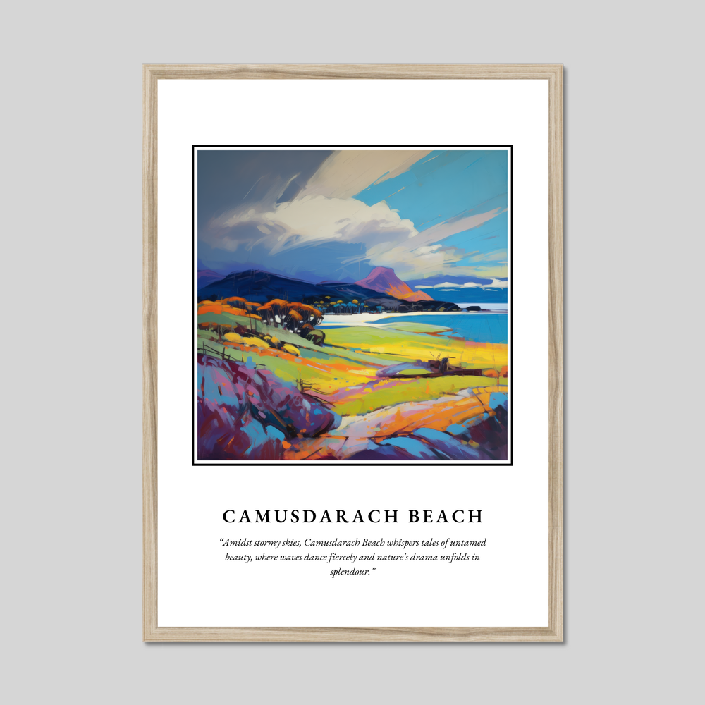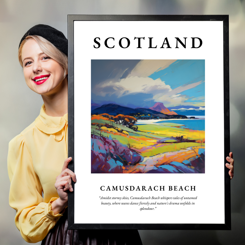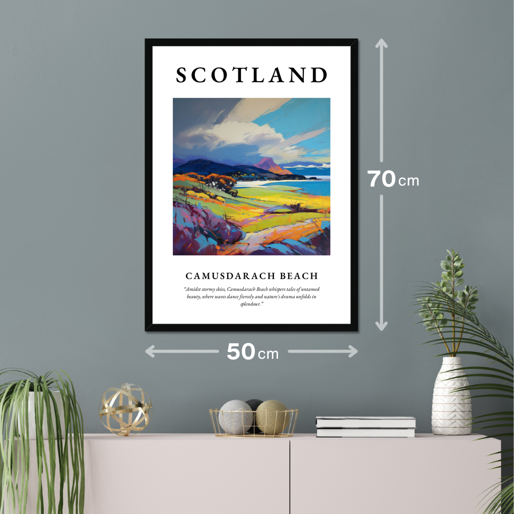 Ideal for those with a personal connection to Camusdarach Beach or a passion for uniquely styled art, this large poster is perfect for covering expansive wall areas without breaking the bank. It's not just an artwork; it's a conversation starter that transforms any room with its bold character and emotional depth.