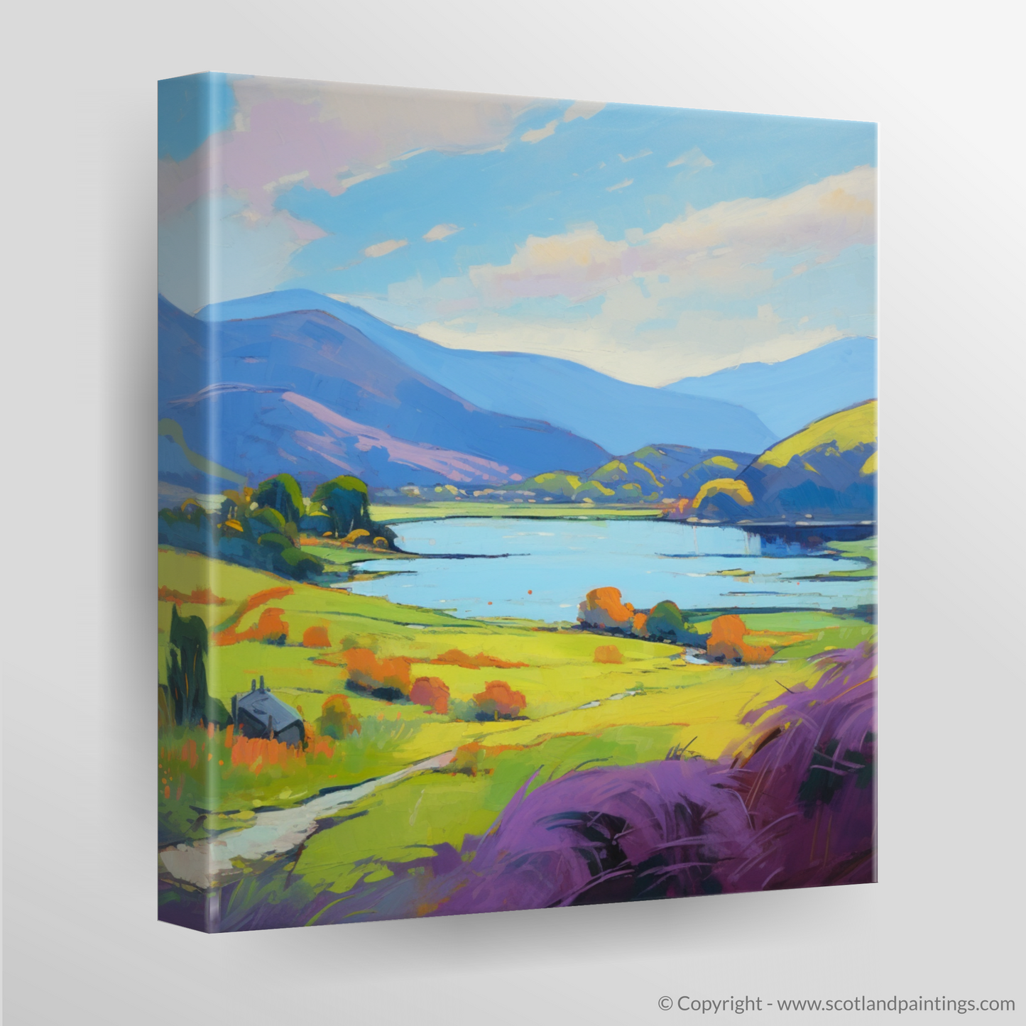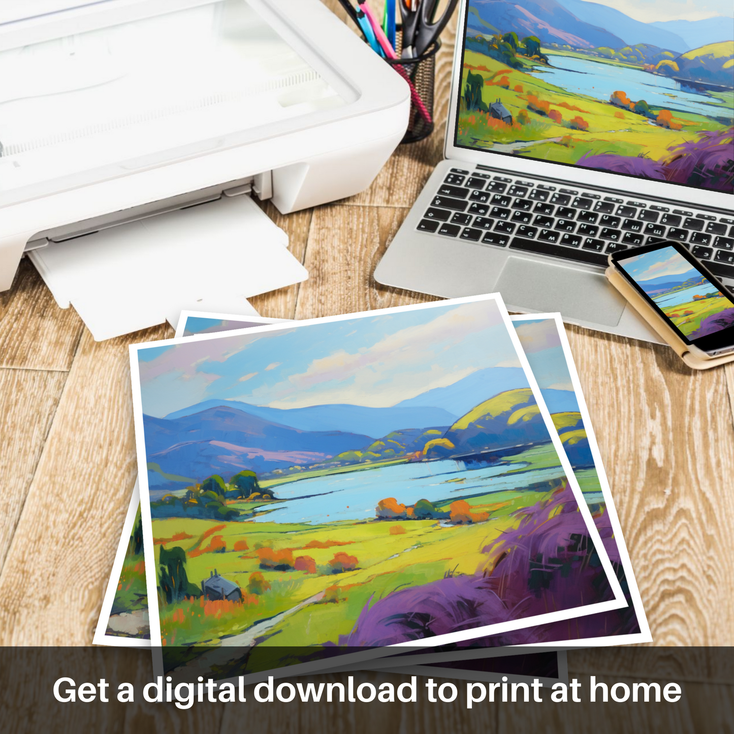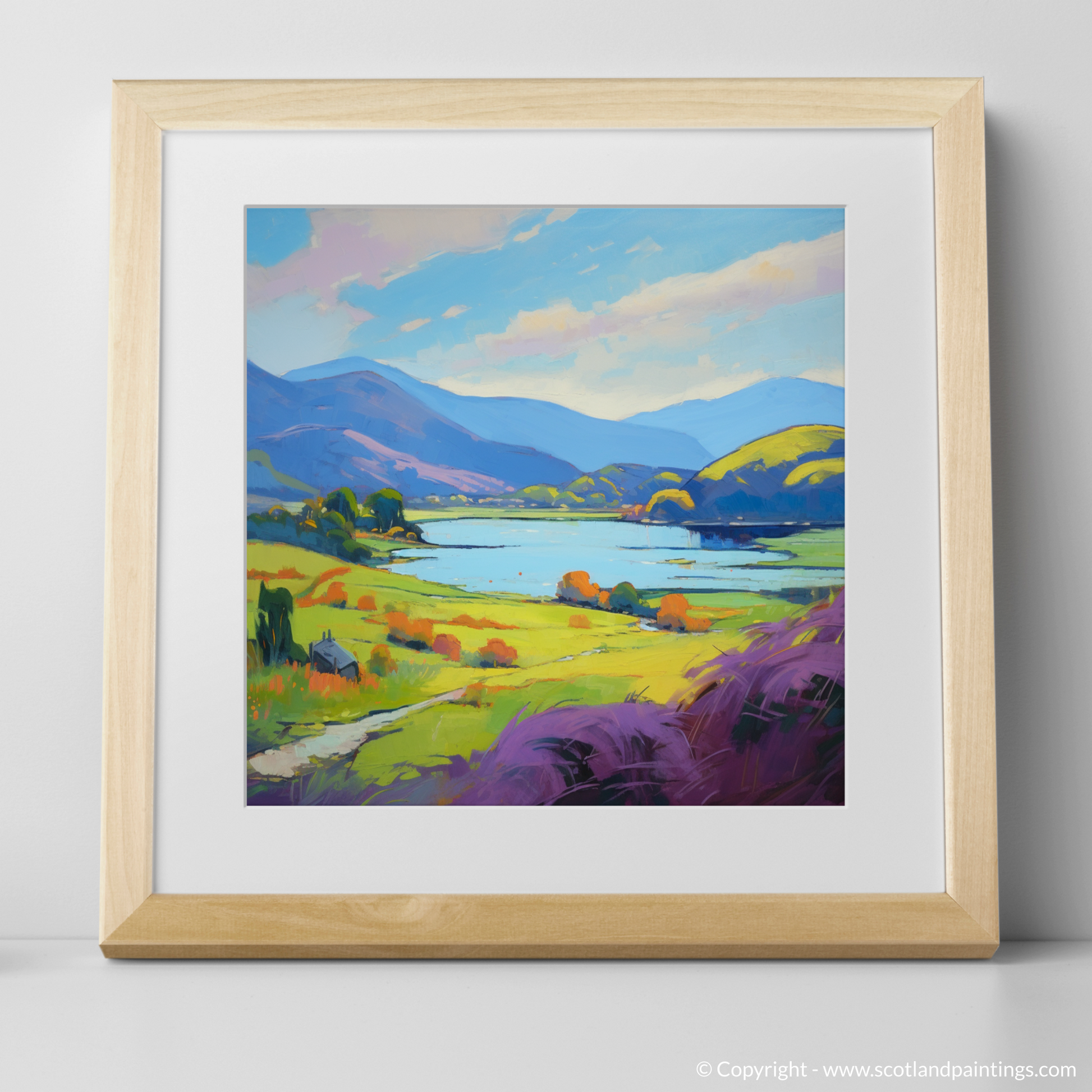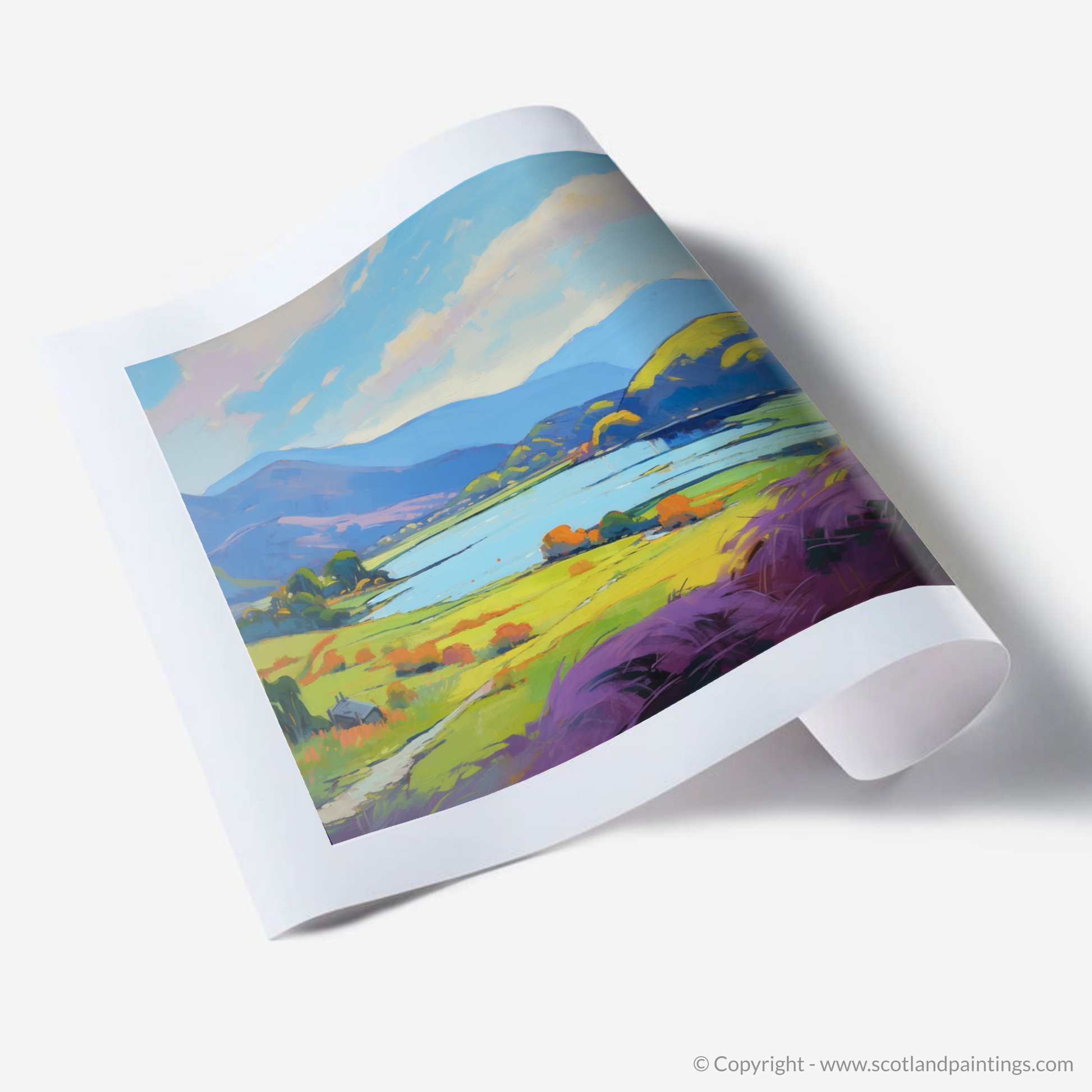 Capture the essence of a Scottish summer with this charming print, bringing the serene beauty of Loch Feochan in Argyll and Bute into your home. The quintessence of Naive Art, this piece is awash with a symphony of vibrant colours that harmoniously blend to depict a tranquil summer day in one of Scotland's most picturesque locales.