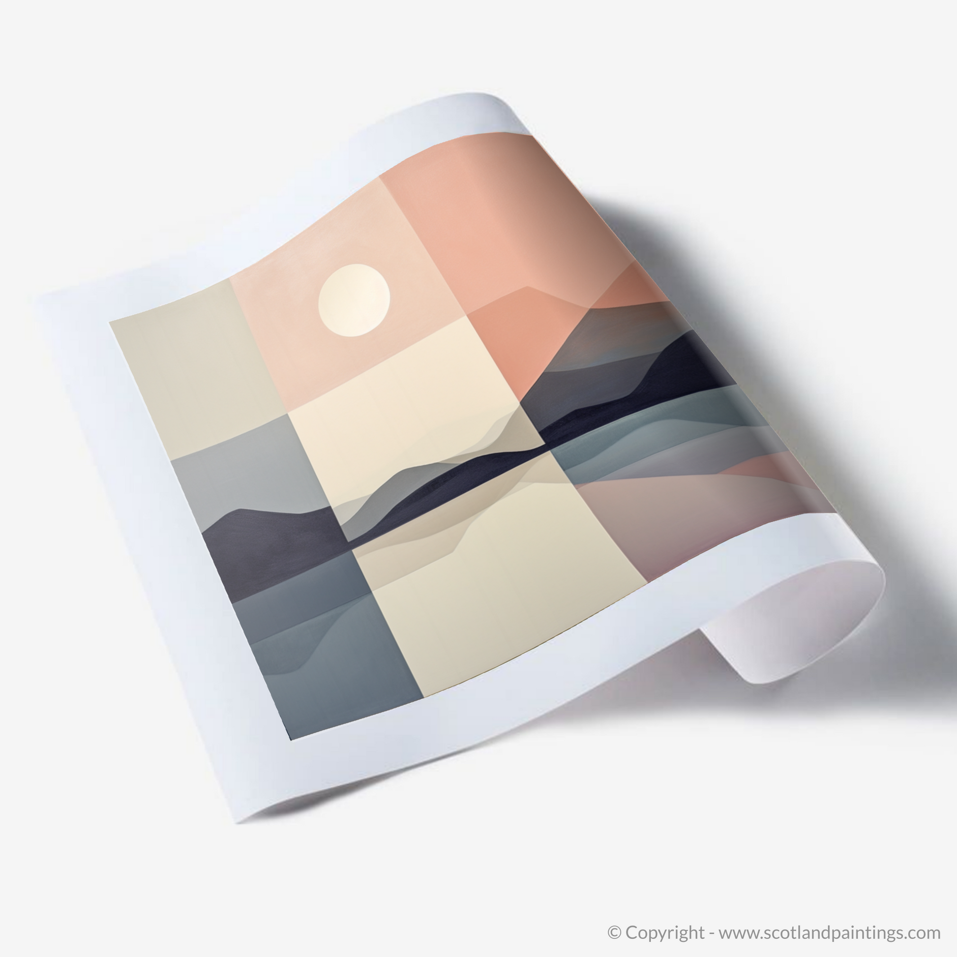 This print is a masterclass in minimalist expression, inviting the onlooker to a moment of contemplation and repose, as the stark lines and soft colour transitions capture the timeless allure of one of Scotland's hidden gems. Perfect for those who appreciate the meditative simplicity of modern art, this piece is a subtle yet striking addition to any space that calls for a moment of stillness and a breath of Scottish air.