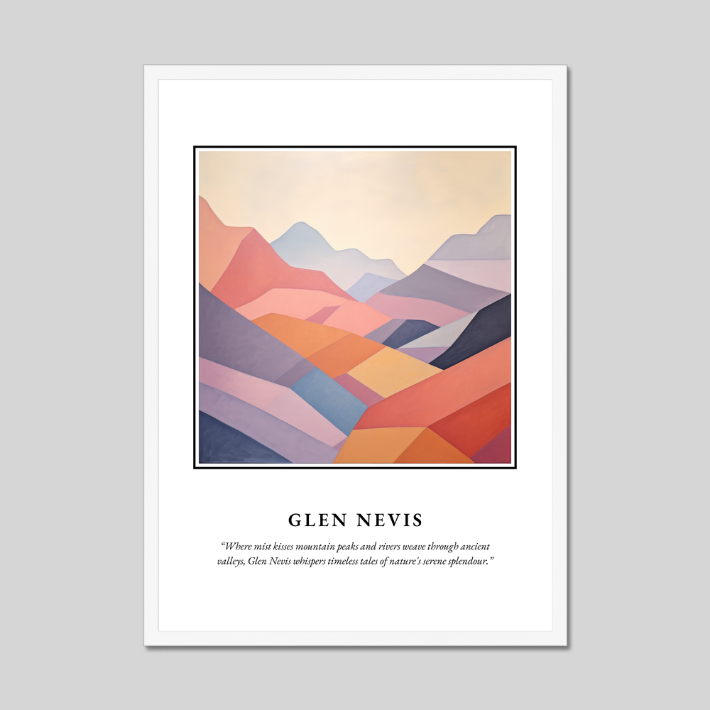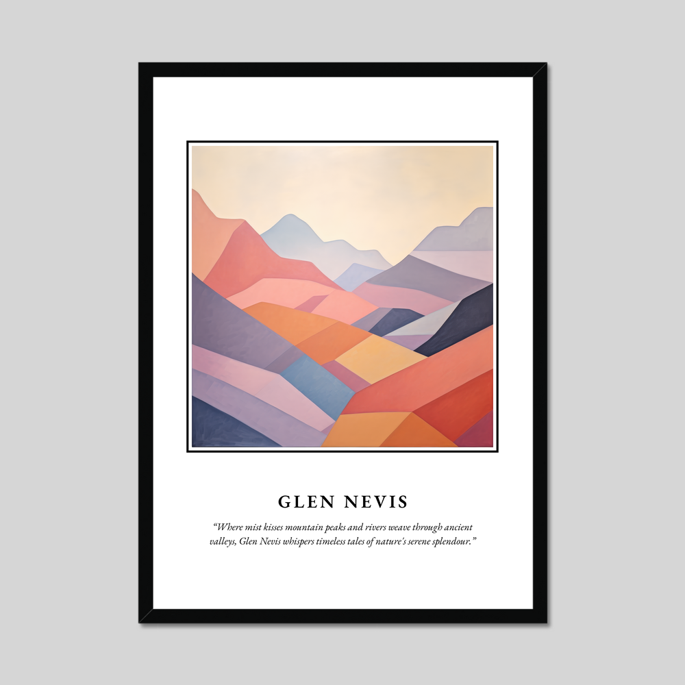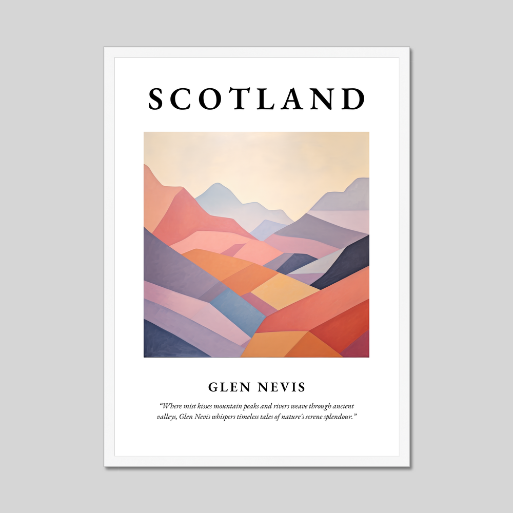The artwork in this poster captures the enduring spirit of Glen Nevis, highlighting its harmonious blend of rugged terrain and tranquil vistas. Evoking the enchanting atmosphere found within these ancient valleys, the painting reminds us why Glen Nevis remains an unmissable destination for explorers and dreamers alike. Whether you have a personal connection to Scotland or simply fall in love with its mystique, this poster print invites you to bring a piece of its magic into your home.