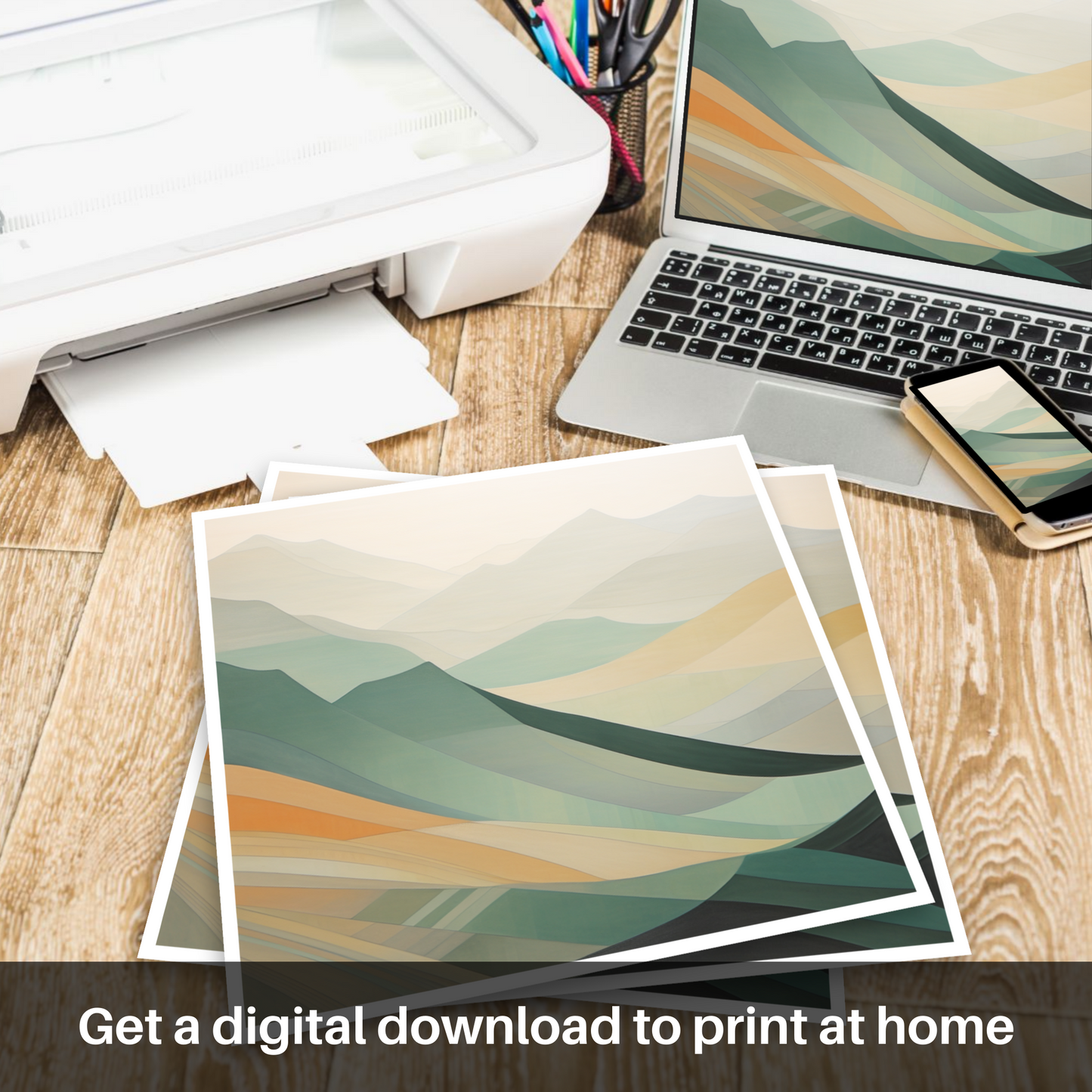 Envision the serene essence of a Scottish glen brought to life with a majestic harmony of colour and form. This exquisite print captures the natural beauty of rolling hills through its minimalist palette, offering a contemporary take on the timeless highland landscape.