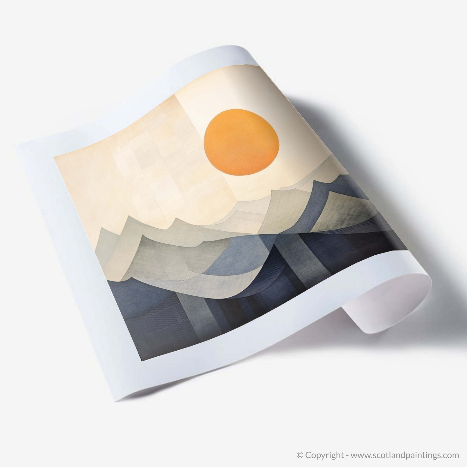 Immerse yourself in the serene simplicity of our exclusive print, a representation that synthesizes the majestic contours of Glen Nevis into stylized elemental forms. At first glance, this artwork captures the soul of minimalism with its clean, crisp lines and understated colour palette.