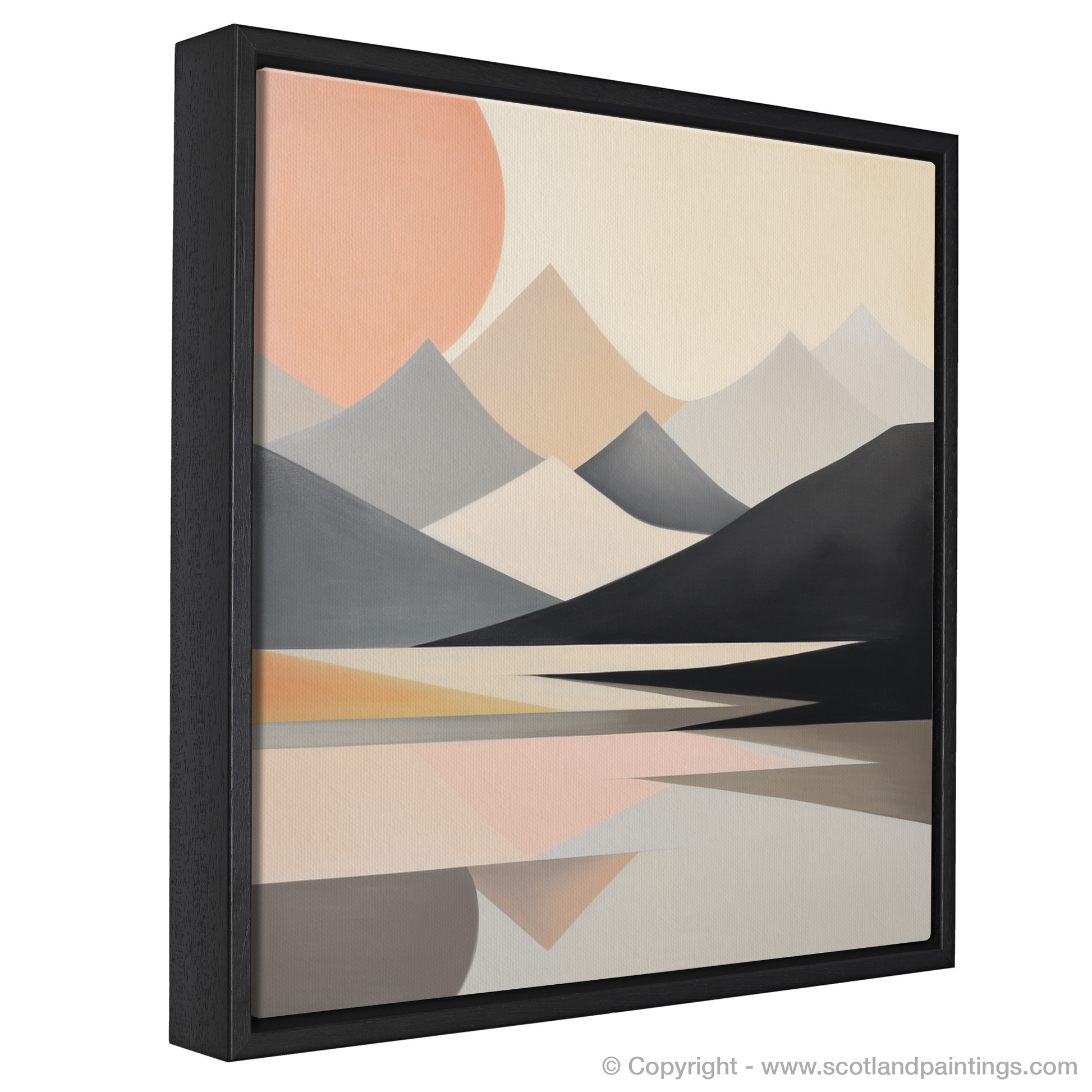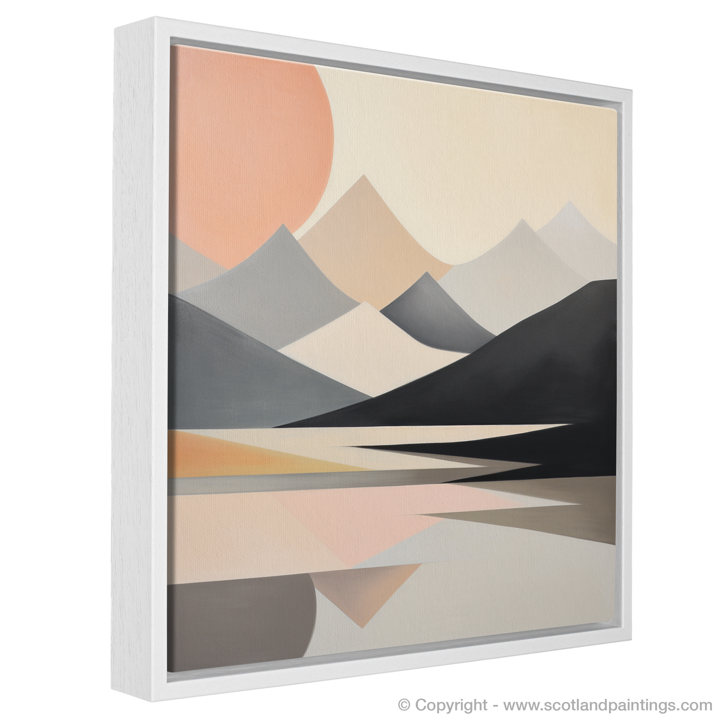 Reflected in the stillness below, the composition's mirror image on a tranquil loch is a masterstroke of calm—the ripples and reflections adding layers of depth to an otherwise stark and reductive aesthetic. With its exquisite balance of colour and form, this piece offers an oasis of repose for the modern aesthete, evoking the soul-stirring quietude one finds amongst the whispering winds and timeless wonders of Glencoe.