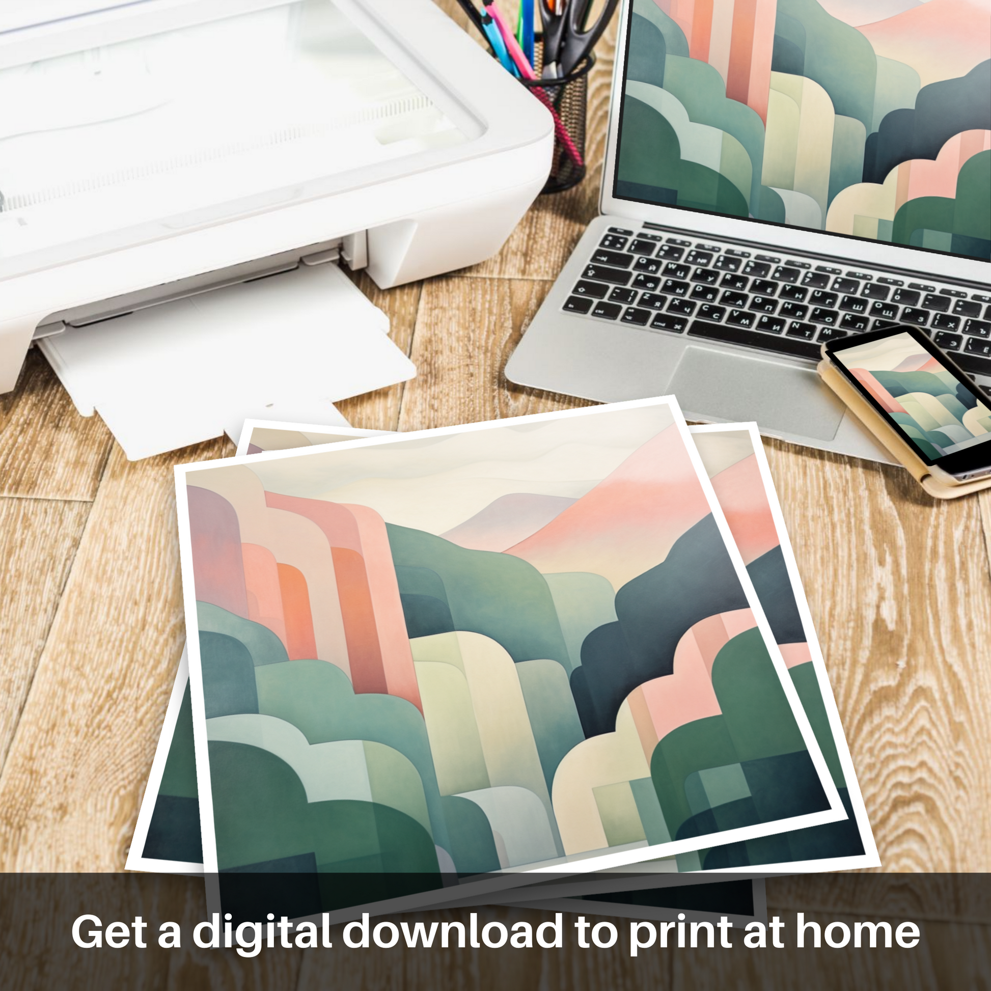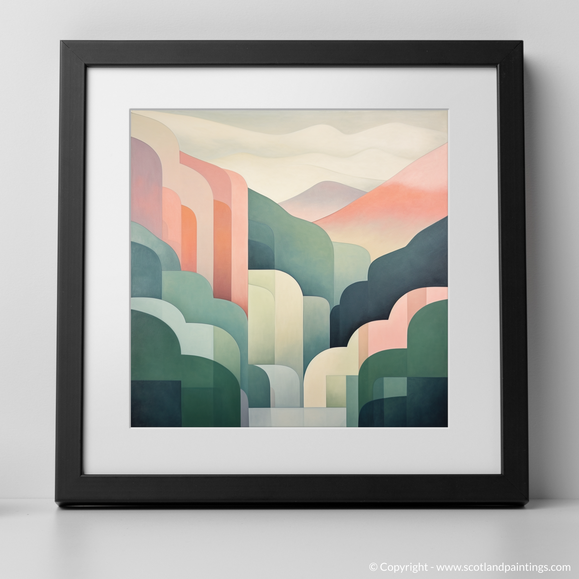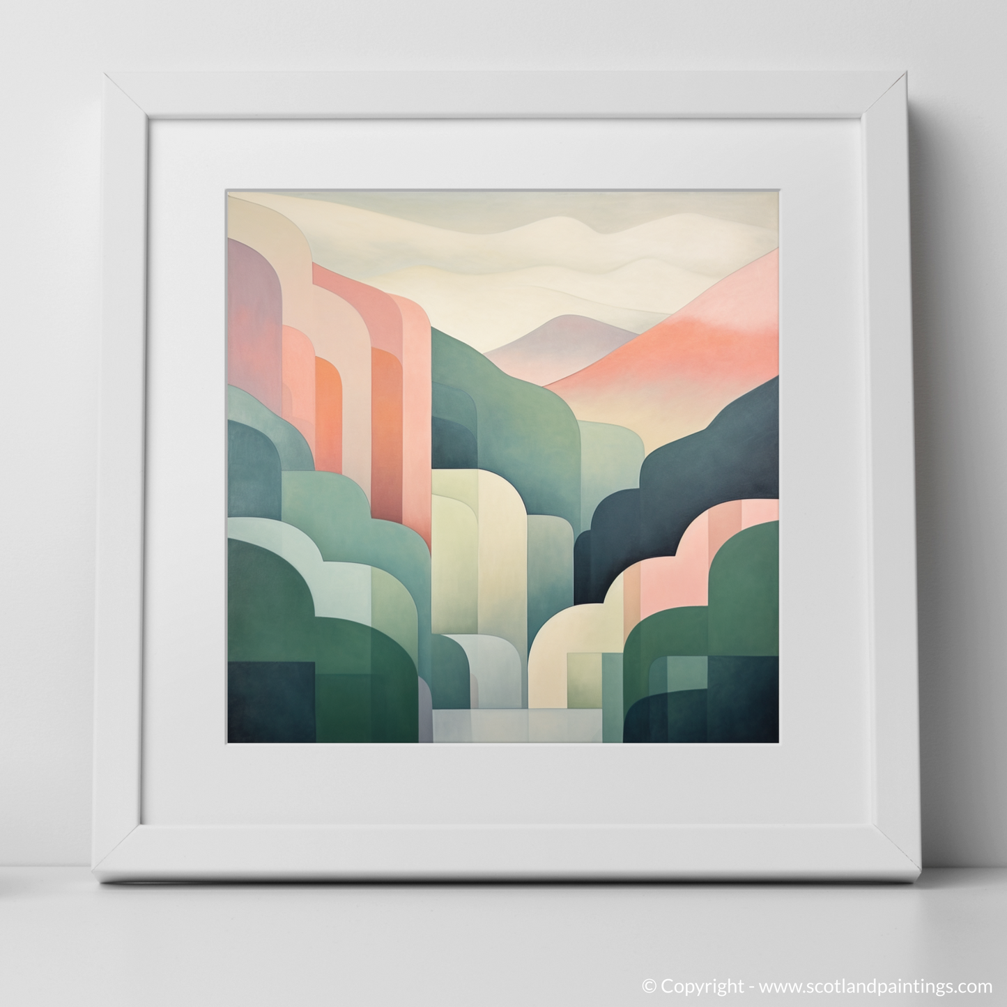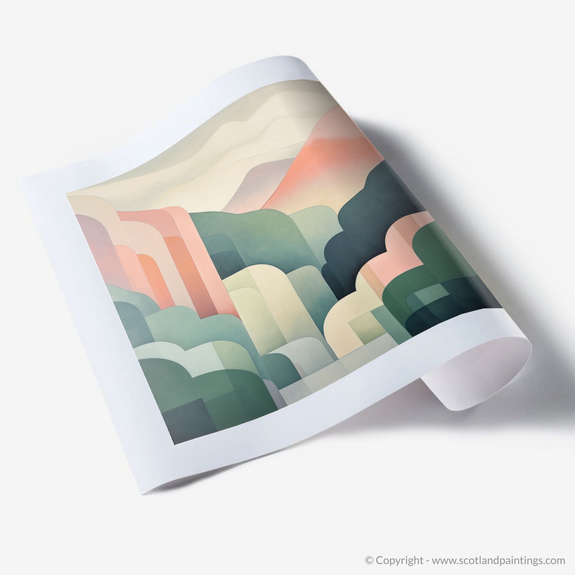 Evoke the serene beauty of Scottish landscapes with this minimalistic print, a study in tranquility and understated elegance. Its soothing palette of pastel hues lends each rolling hill a soft, dreamlike quality, inviting contemplation and a sense of calm. The sweeping curves abstractly embody the natural contours of a glen, embracing simplicity and capturing the essence of the landscape with a gentle touch of modernity.