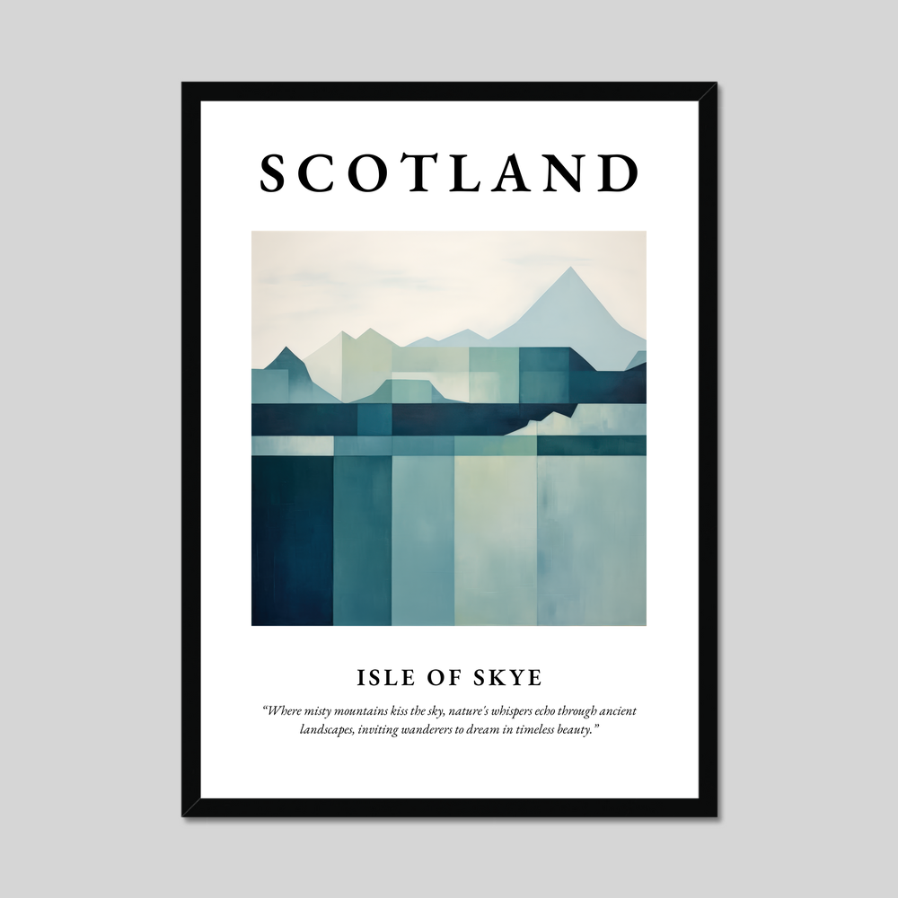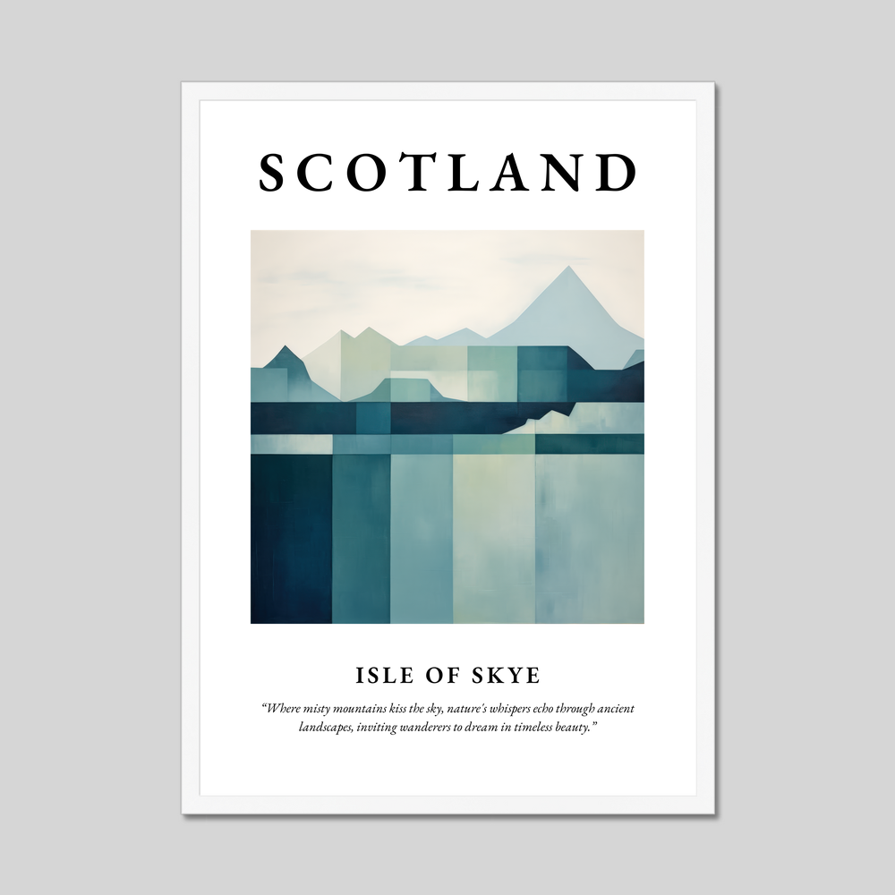 The Isle of Skye is a realm of sublime landscapes where rugged cliffs meet sweeping waters, a place of folklore and majesty that has inspired countless souls. Known for its dramatic vistas and ethereal beauty, the Isle carries a serene yet powerful presence that resonates with all who visit. The minimalist artwork on this poster captures its essence perfectly, inviting you to bring a piece of Skye’s mystique into your home.