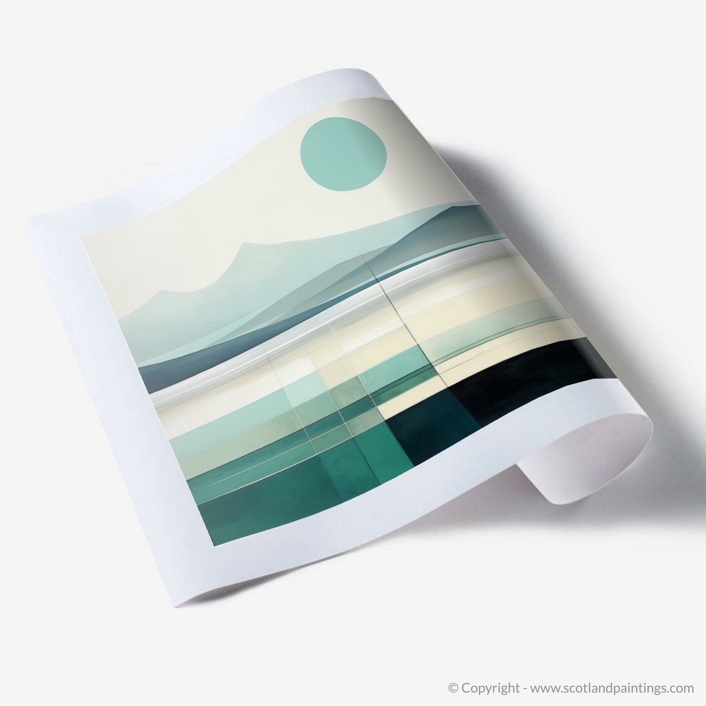 An epitome of modern design, this piece plays with geometric purity, layering semi-transparent blocks which subtly hint at the textures of sand and sea. The print embodies calmness, its linear simplicity offering a sense of order and balance—a soothing counterpart to the bustle of contemporary life. Its depictions of shadow and light whisper stories of the shifting Scottish coastline, engaging with the viewer in an intimate dialogue that resonates beyond the visual realm.