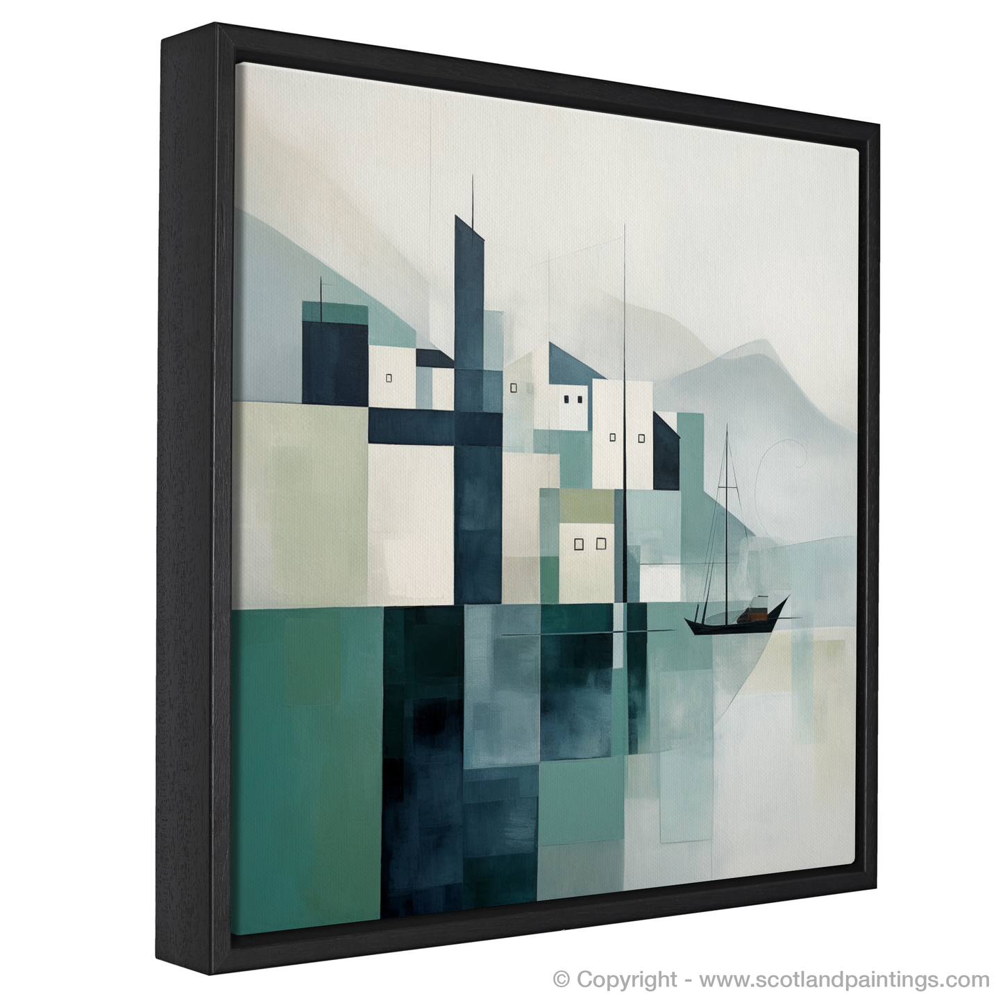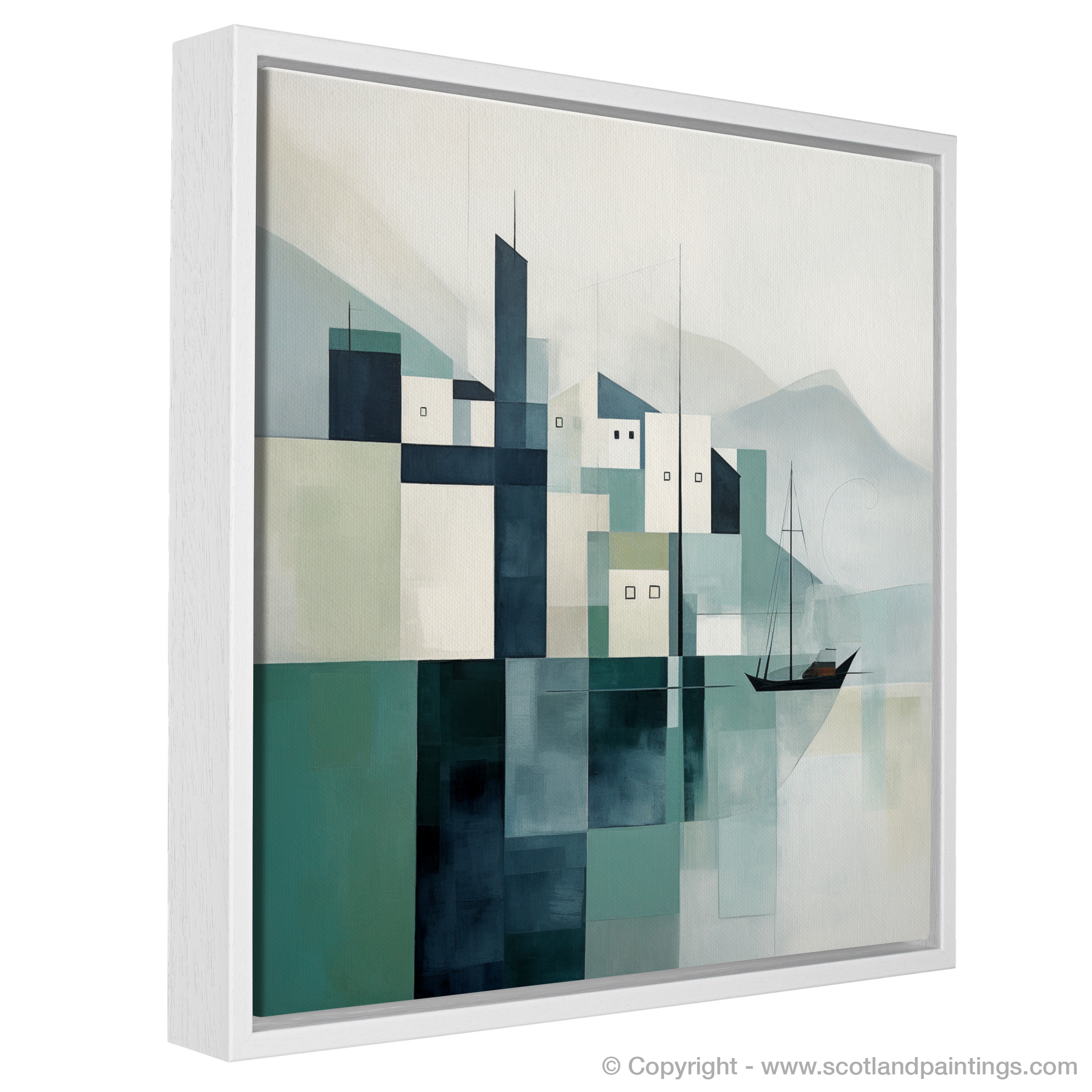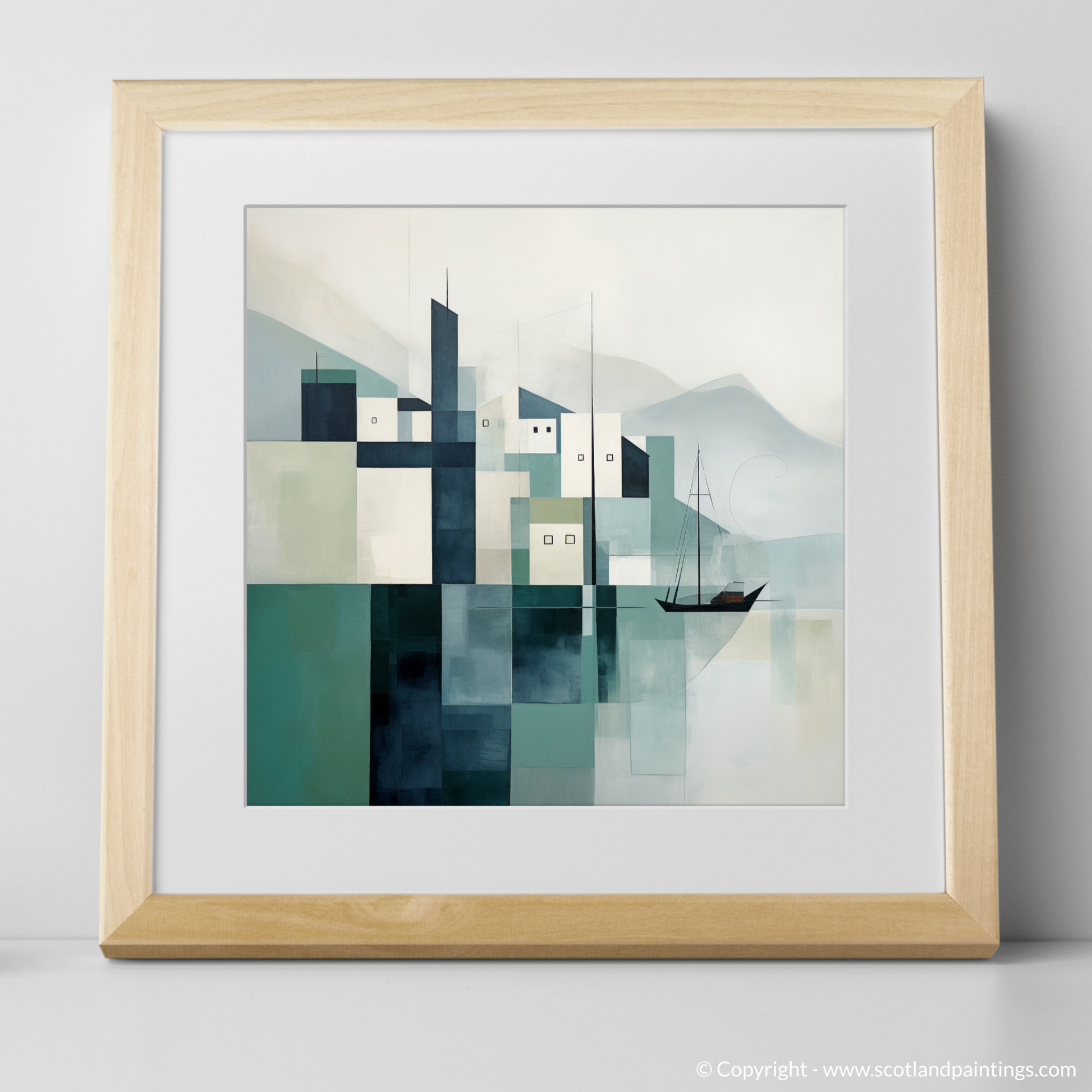 Immerse yourself in the tranquil essence of Portree Harbour captured through the lens of Minimalism in this evocative print. A symphony of muted colours unfolds across the canvas, where geometric abstraction meets serene seascapes. The artwork paints a picture of stillness and calm, setting a peaceful tone with its cool palette of blues and greens, subtly interrupted by swathes of creamy whites and soft greys.