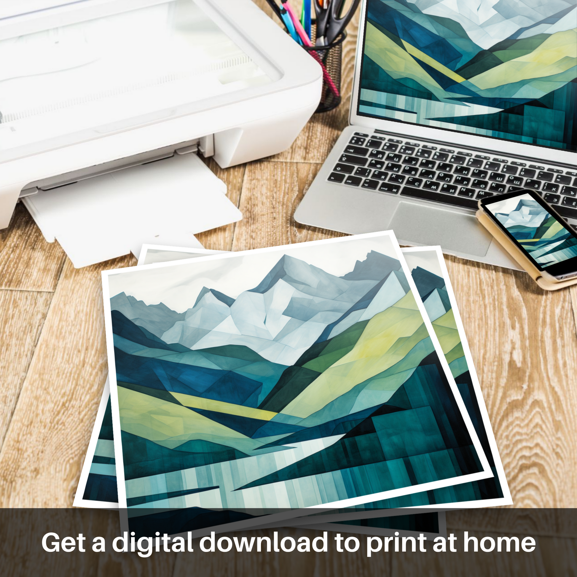 Embrace the serene simplicity of our exclusive print, a harmonious blend of geometric abstraction and the untamed beauty of the Scottish Highlands. Drawing the essence of Glen Coe into a symphony of shapes and subtly layered colours, this piece encapsulates both tranquillity and dynamism within its deceptively straightforward composition.