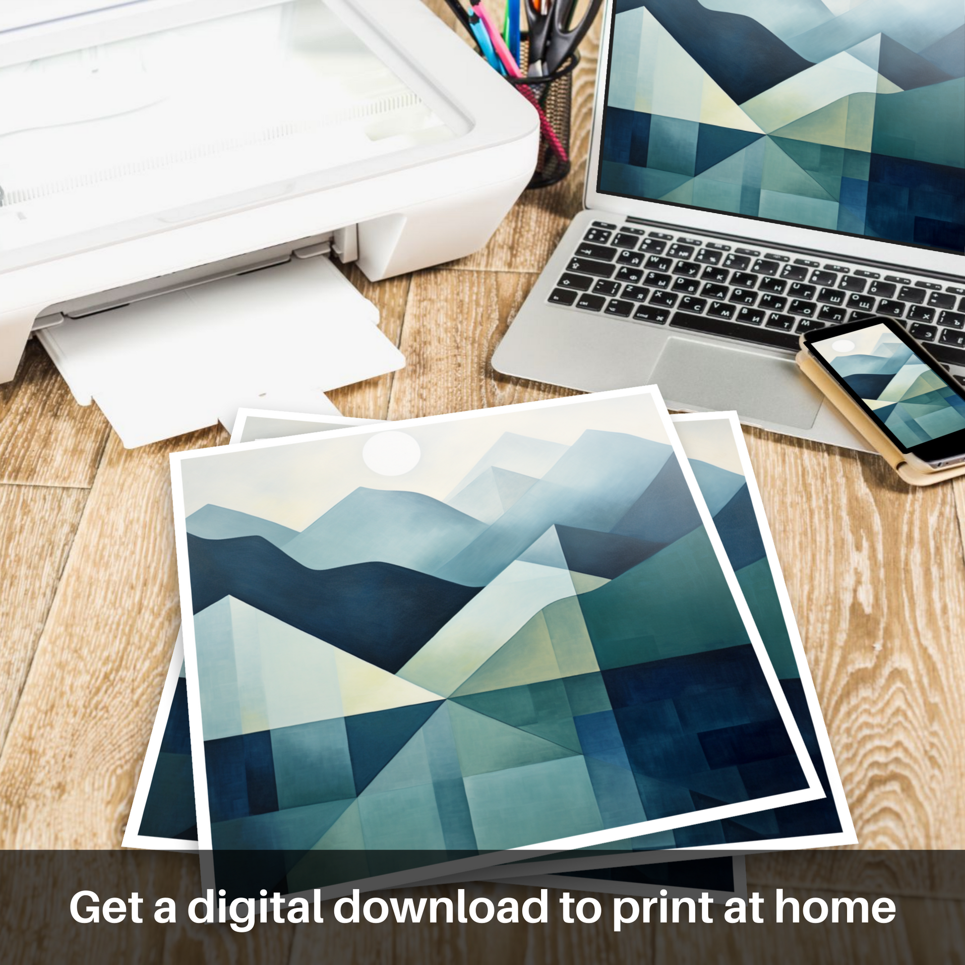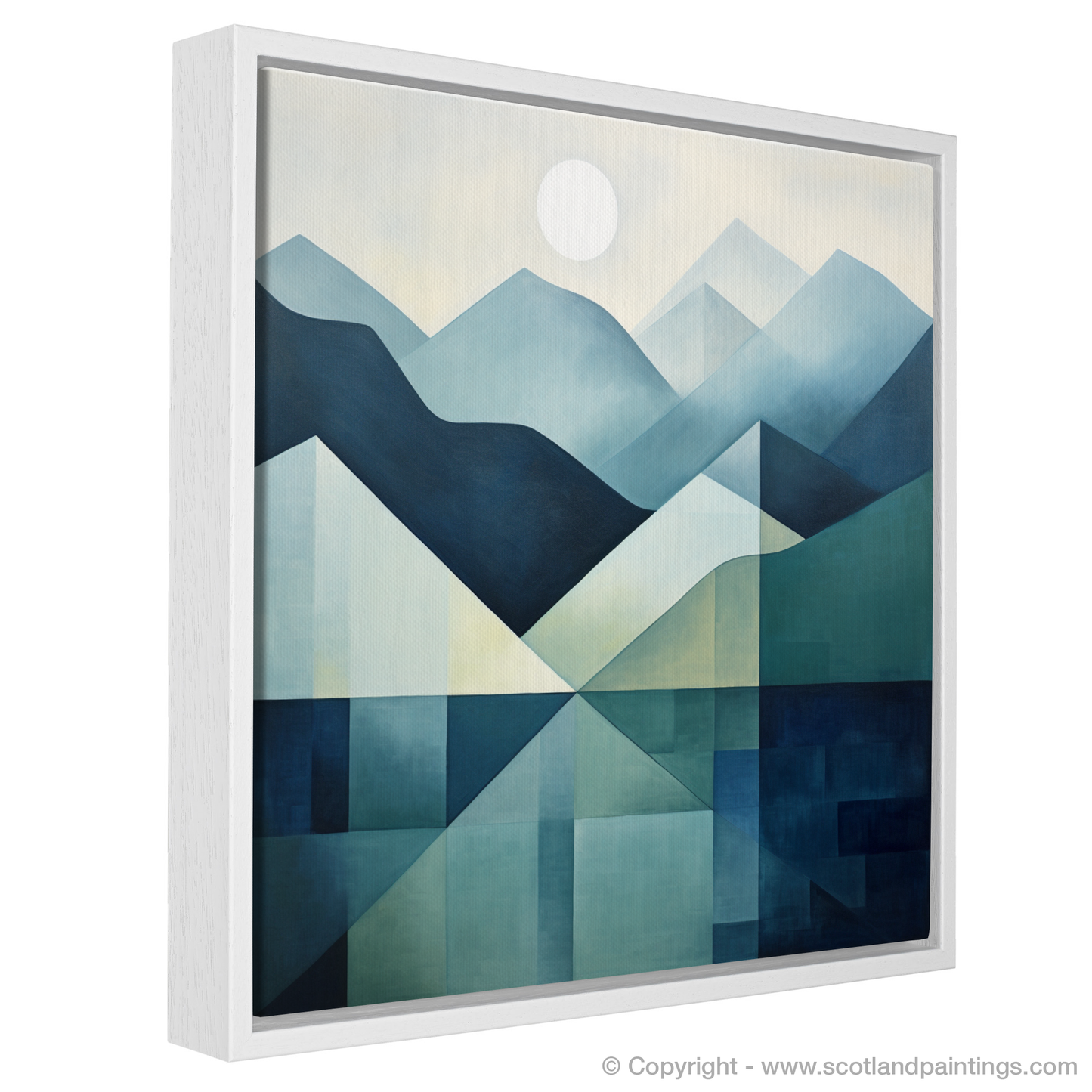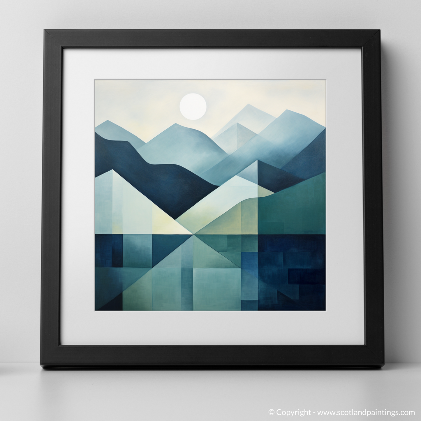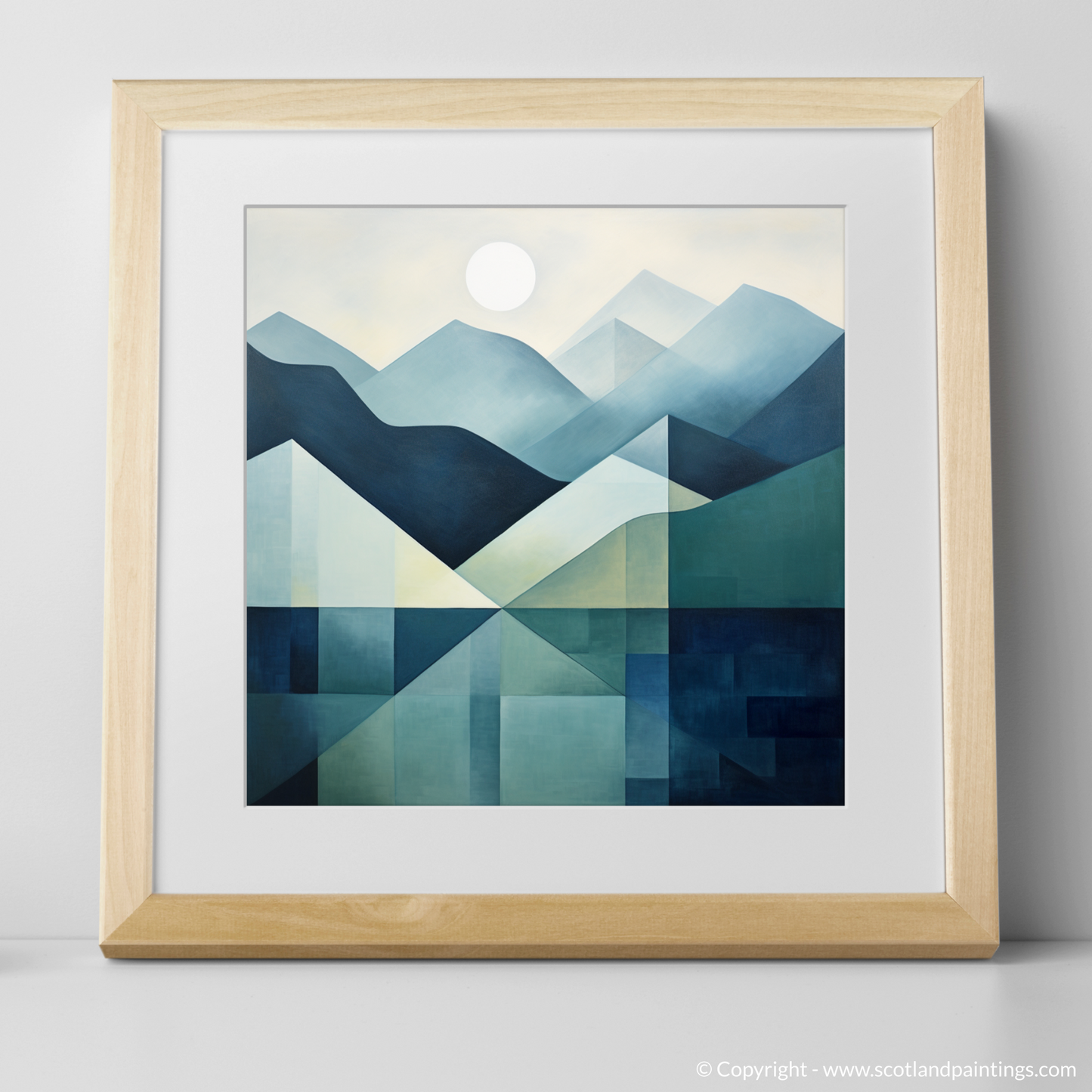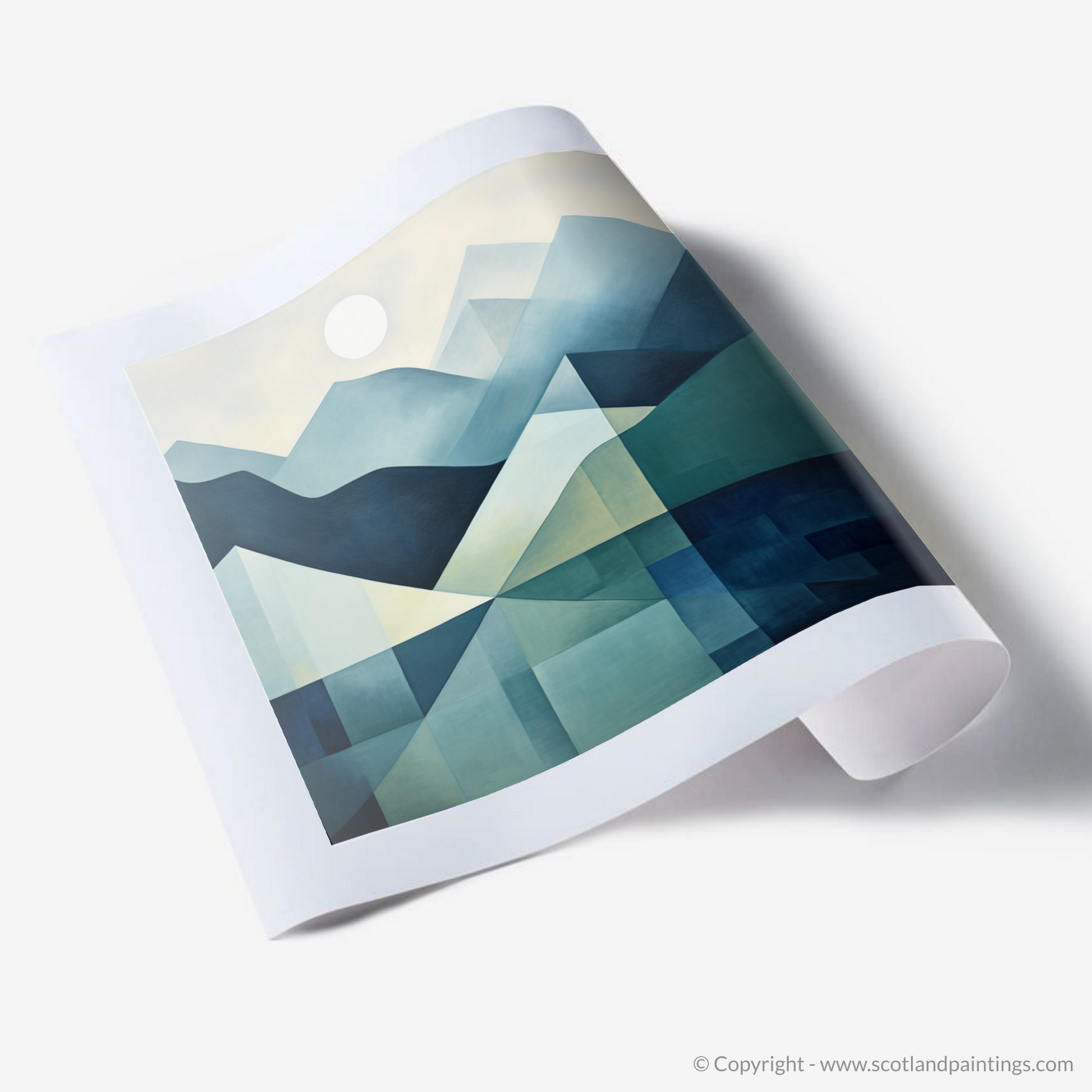 Embrace the serene simplicity of Glen Nevis, distilled into a captivating minimalist interpretation. This print features an abstract representation of the iconic Scottish highlands, where geometric shapes and a cool-toned palette converge to evoke the tranquil and majestic beauty of the landscape.