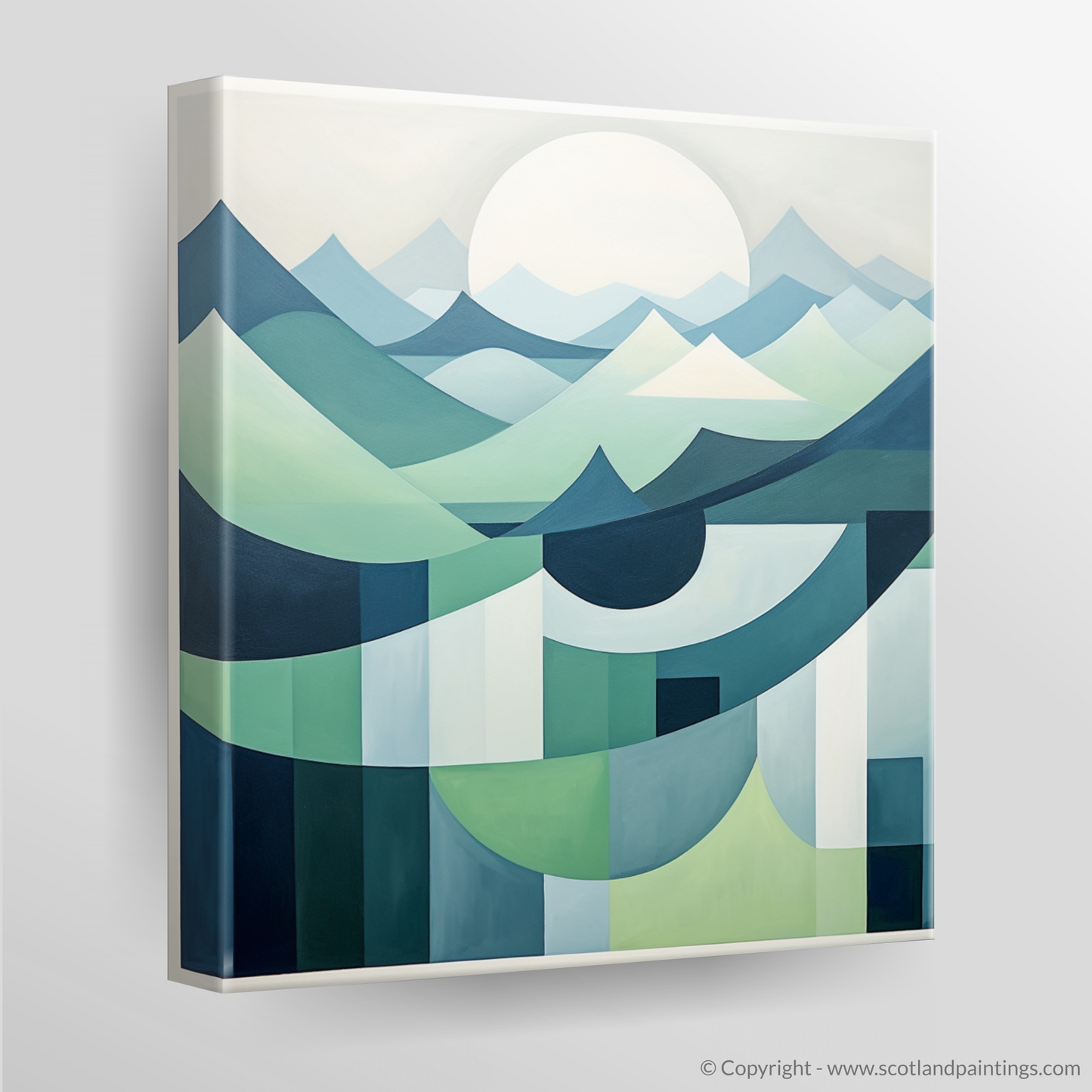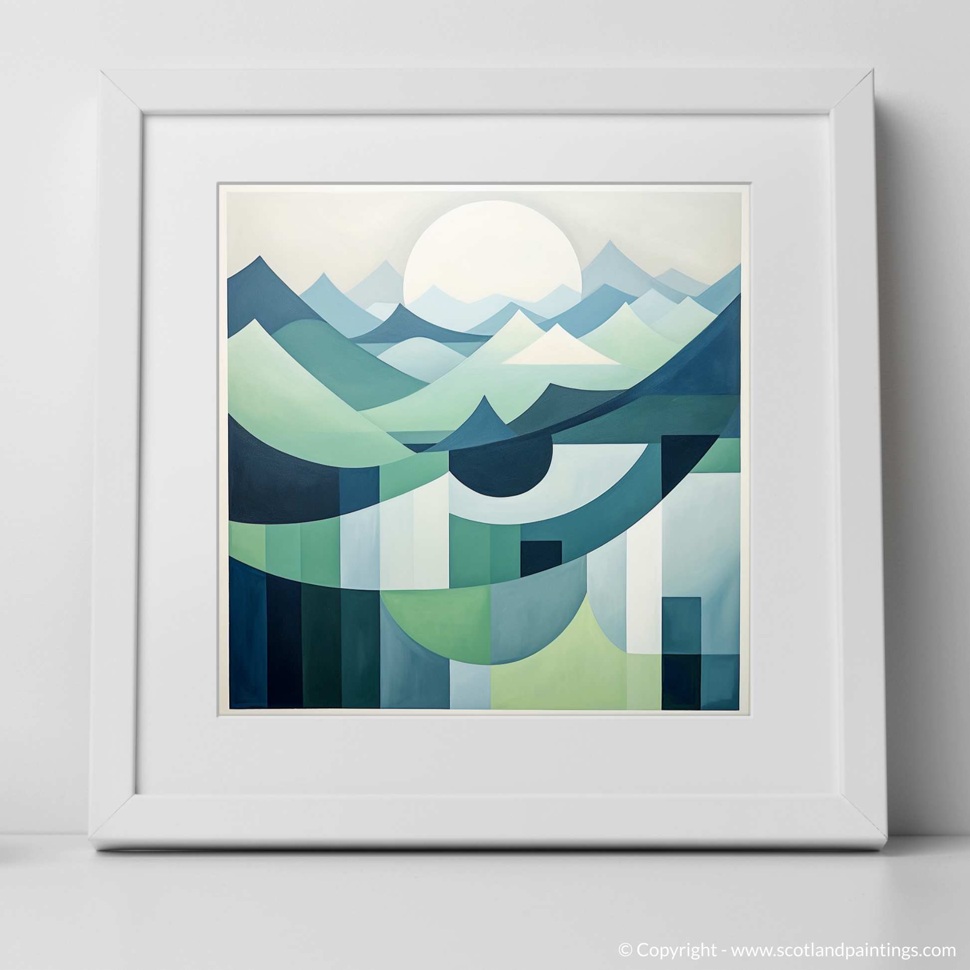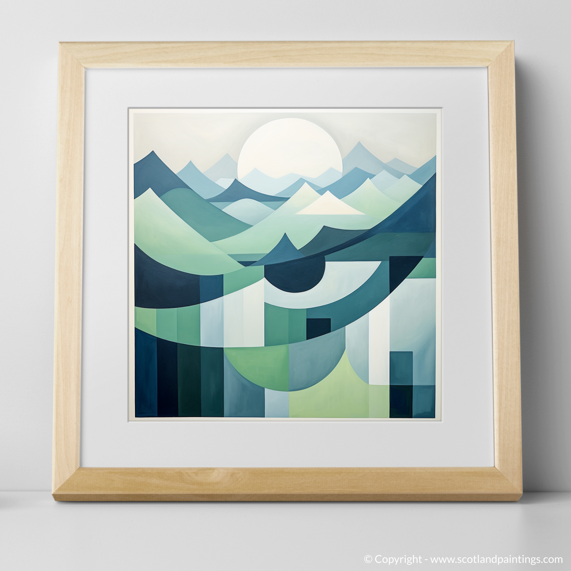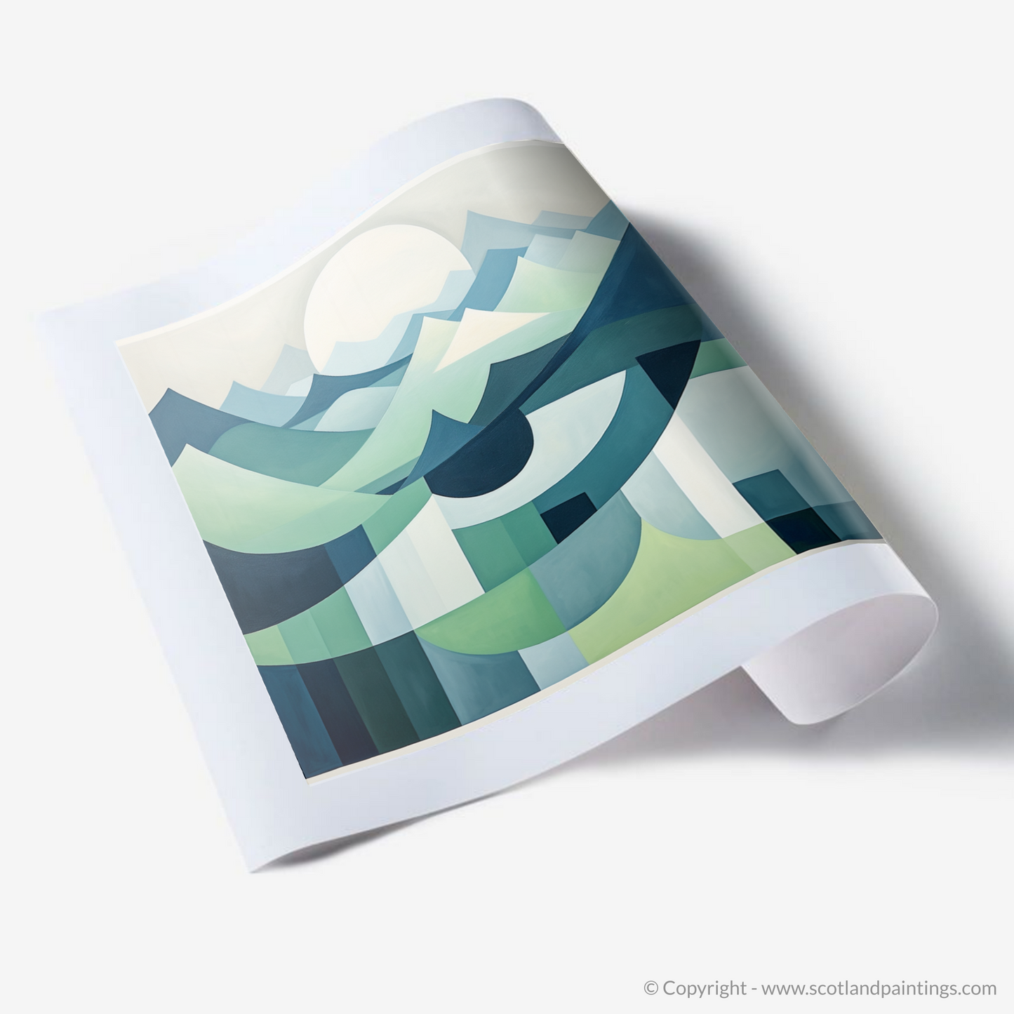 The composition expertly reduces the grandeur of Glen Coe to its purest forms, presenting a rhythmic succession of stylised peaks and valleys that lead the eye gently across the canvas. Each shape is thoughtfully placed, contributing to an overall sense of balance and poise. The subtle gradations of colour amidst the different elements not only suggest depth but also mirror the varied tones one would find in the natural environment.