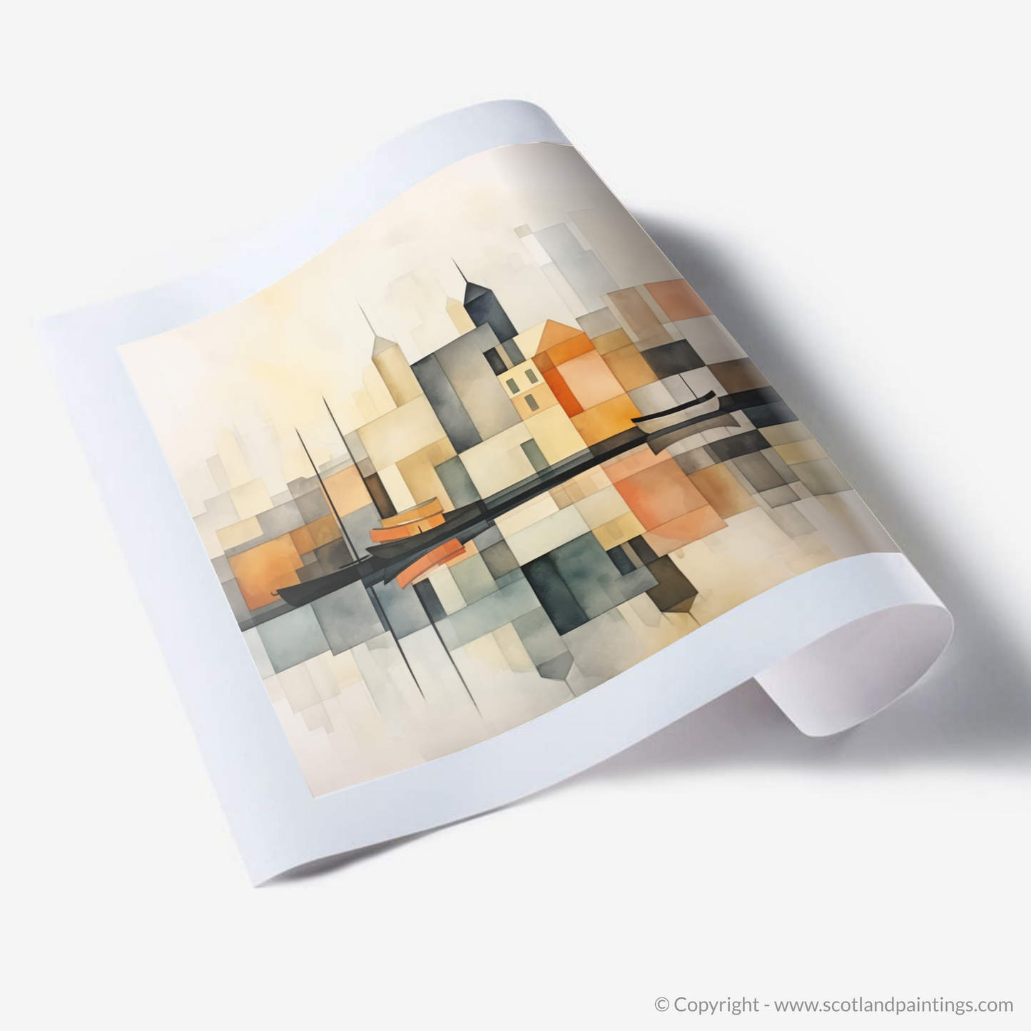 The composition balances the stark lines of modernity with the soft, blending wash of watercolours, creating a print that has both the calmness of a seaside retreat and the crispness of a contemporary gallery piece. As part of the 'Modern & Minimal' collection, this print offers a versatile aesthetic that complements any interior, be it a chic urban dwelling or a cozy coastal home, fostering a sense of peaceful reflection reminiscent of a leisurely stroll along the quay.