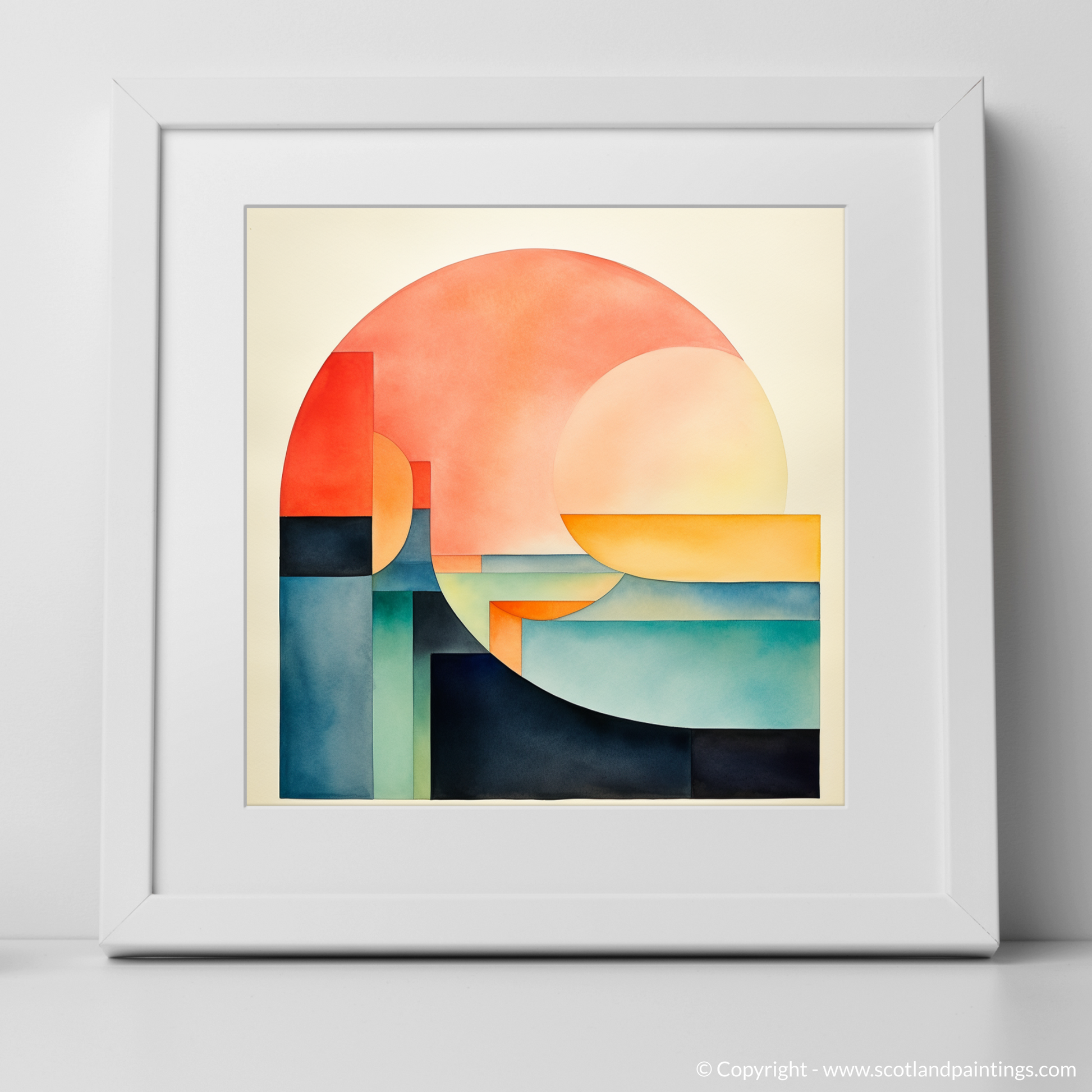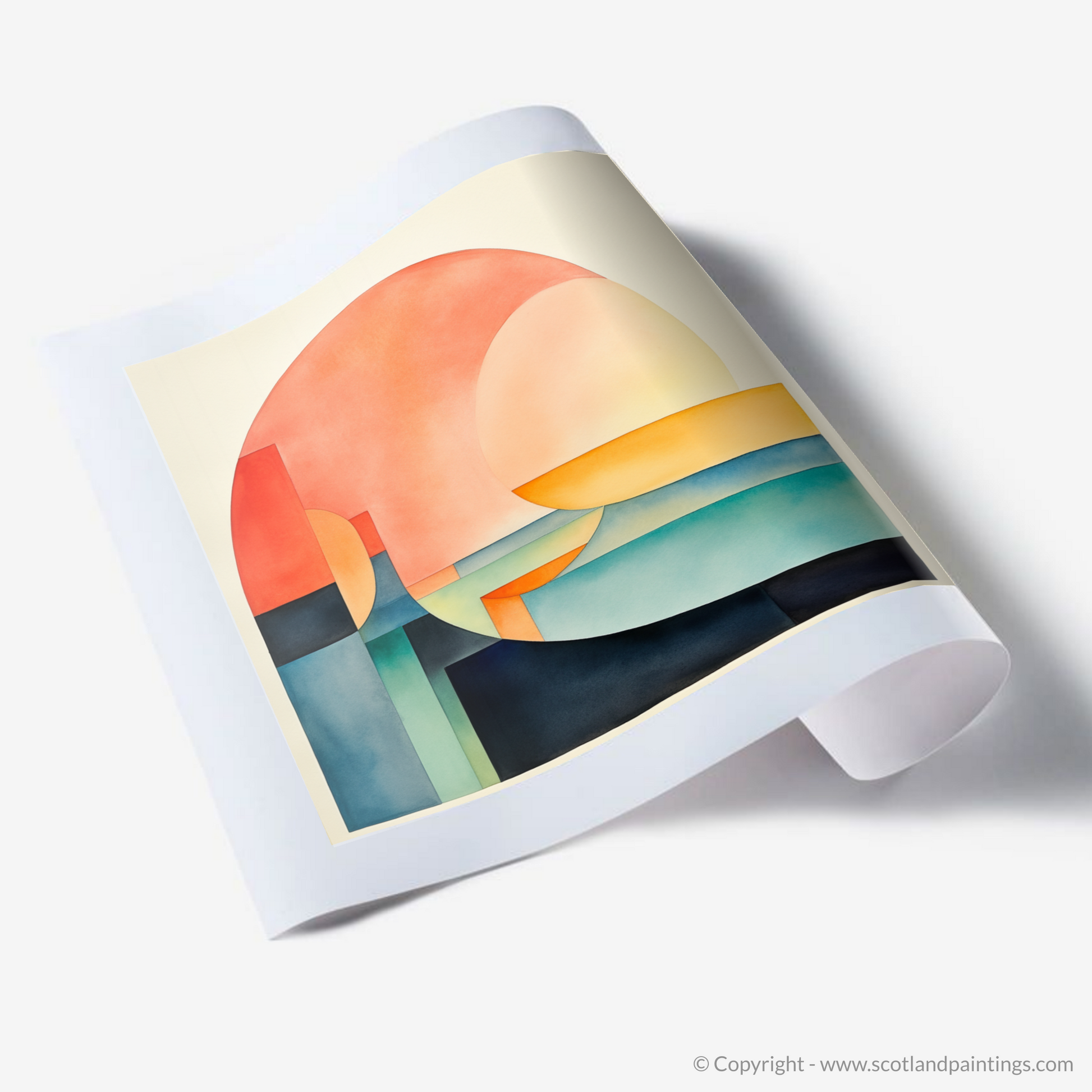 Immerse yourself in the serene simplicity of this captivating print, where the essence of Loch Ness is distilled into pure, harmonious forms and soothing colours. Evoking the enigmatic beauty of Scotland's most famous loch, this piece invites contemplation through its use of bold geometry and a restrained colour palette.