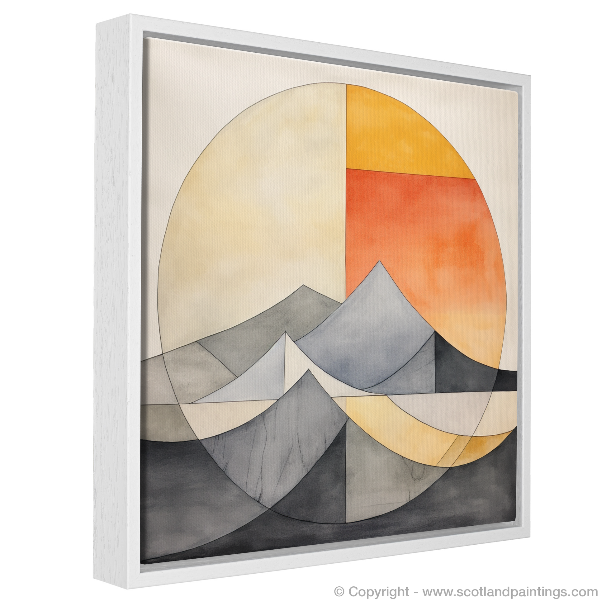 Each hue in this print interacts delicately with adjacent colours, displaying gradients that provide depth and a soft textural quality akin to watercolour. The clear delineation of shapes alongside the colour's gentle variation creates a rhythmic contrast that is both modern and serene. The minimalist approach distils the natural beauty of the Scottish landscape into a symphony of simple lines and blocks of colour, allowing for a personal and imaginative engagement with the highlands.