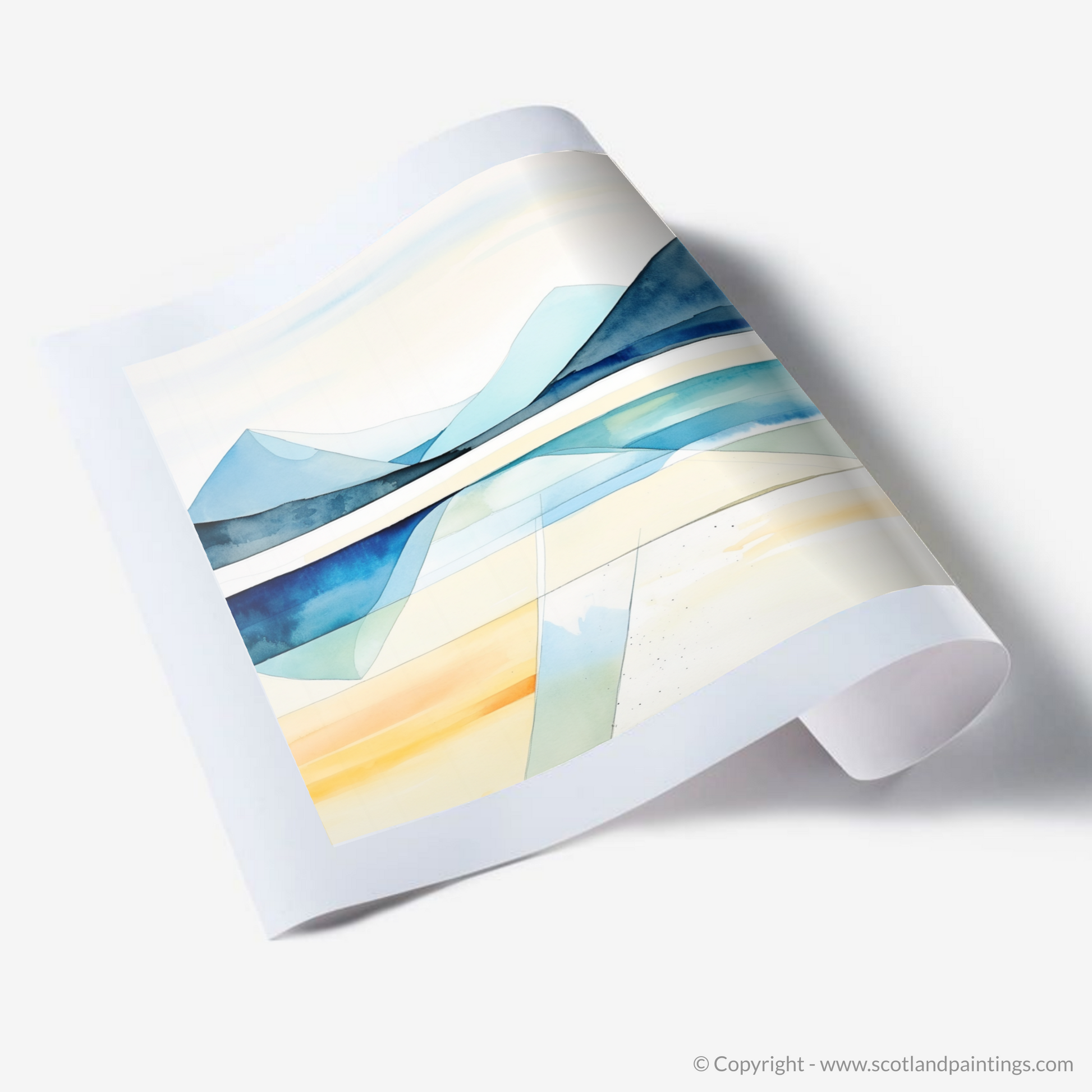 Capturing the serene majesty of Luskentyre Sands, this exquisite print offers an artistic embodiment of tranquillity and minimalist beauty. Through a harmonious palette of azure blues, deep navy, and soft golden hues, each stroke revels in simplicity while evoking the vast, open landscapes of the Isle of Harris.