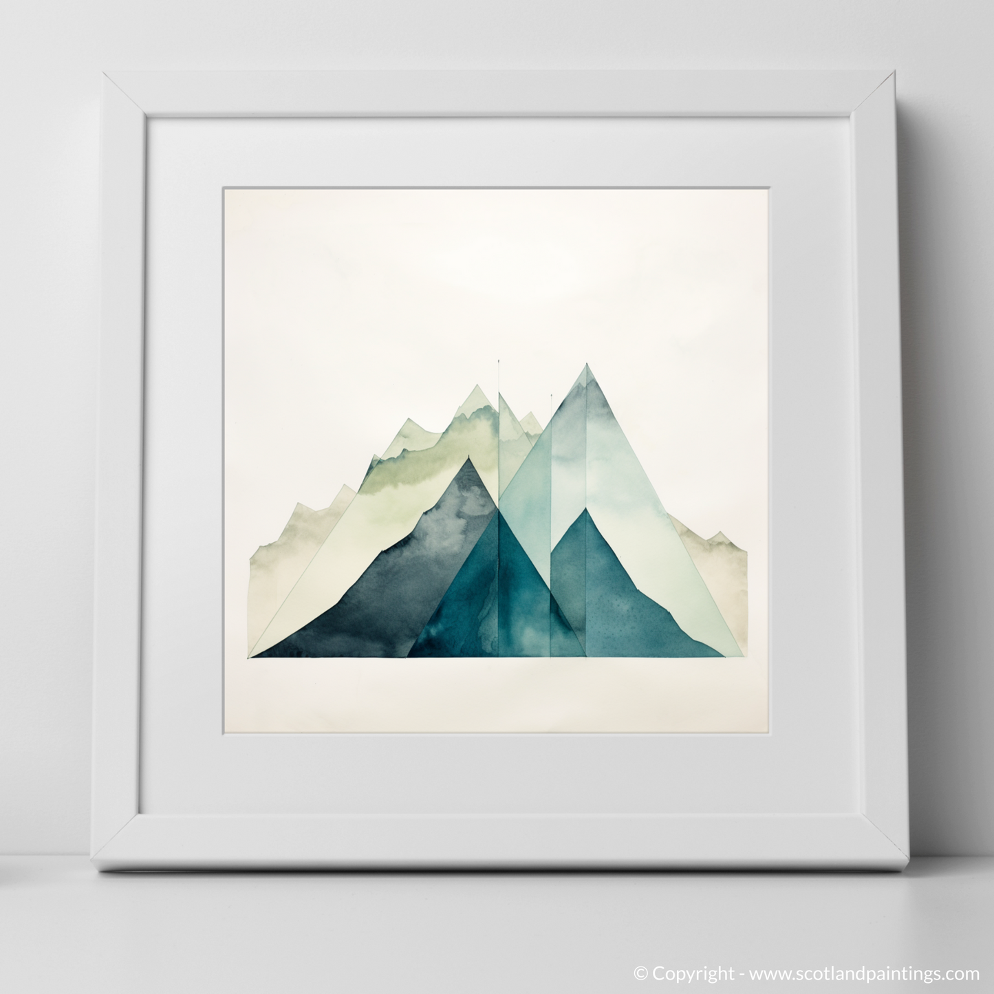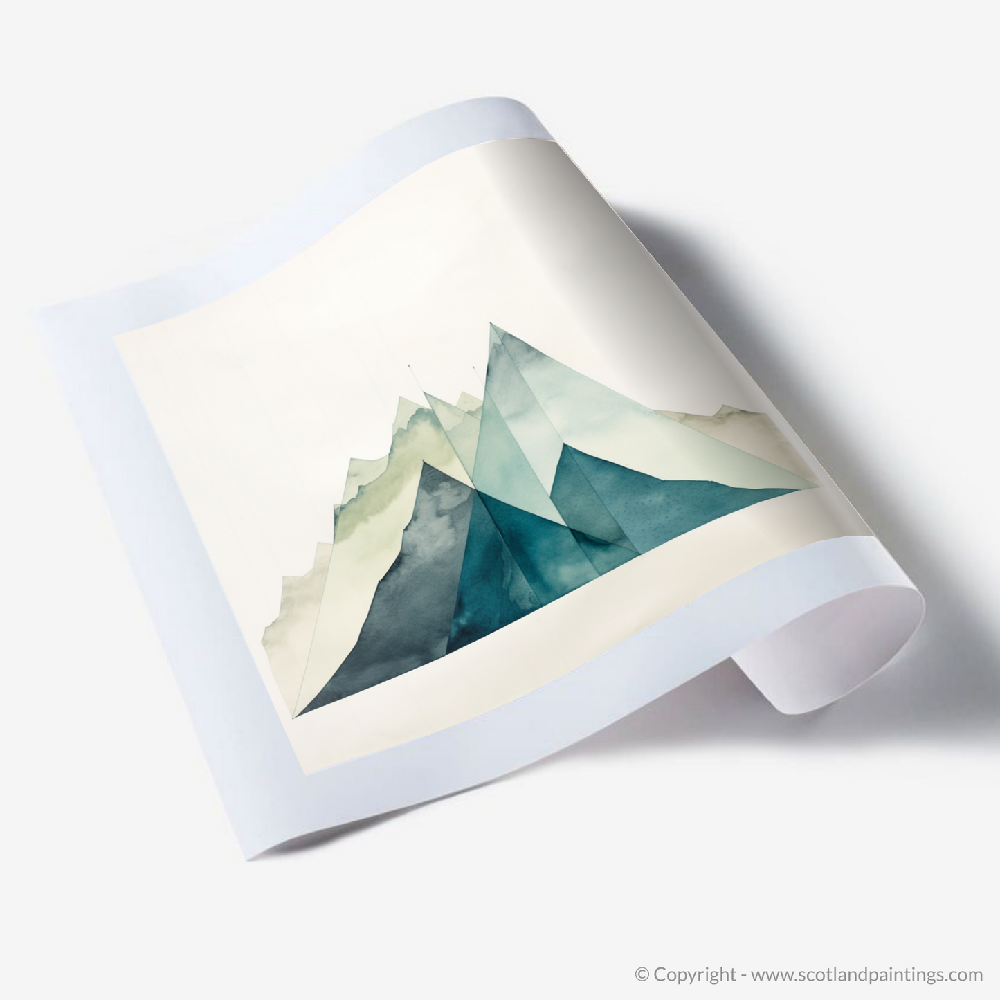 Amidst the serene canvas of our Modern & Minimal collection, this evocative print captures the essence of a Scottish mountain's majesty through a minimalist lens. The interplay of geometric shapes and a subdued palette evokes the timeless beauty and raw simplicity of highland topography. Clean lines converge into peaks and valleys, each tinted with a harmonious blend of cool blues and gentle greens, giving rise to a tranquil landscape that belies the ruggedness of its real-world counterpart.