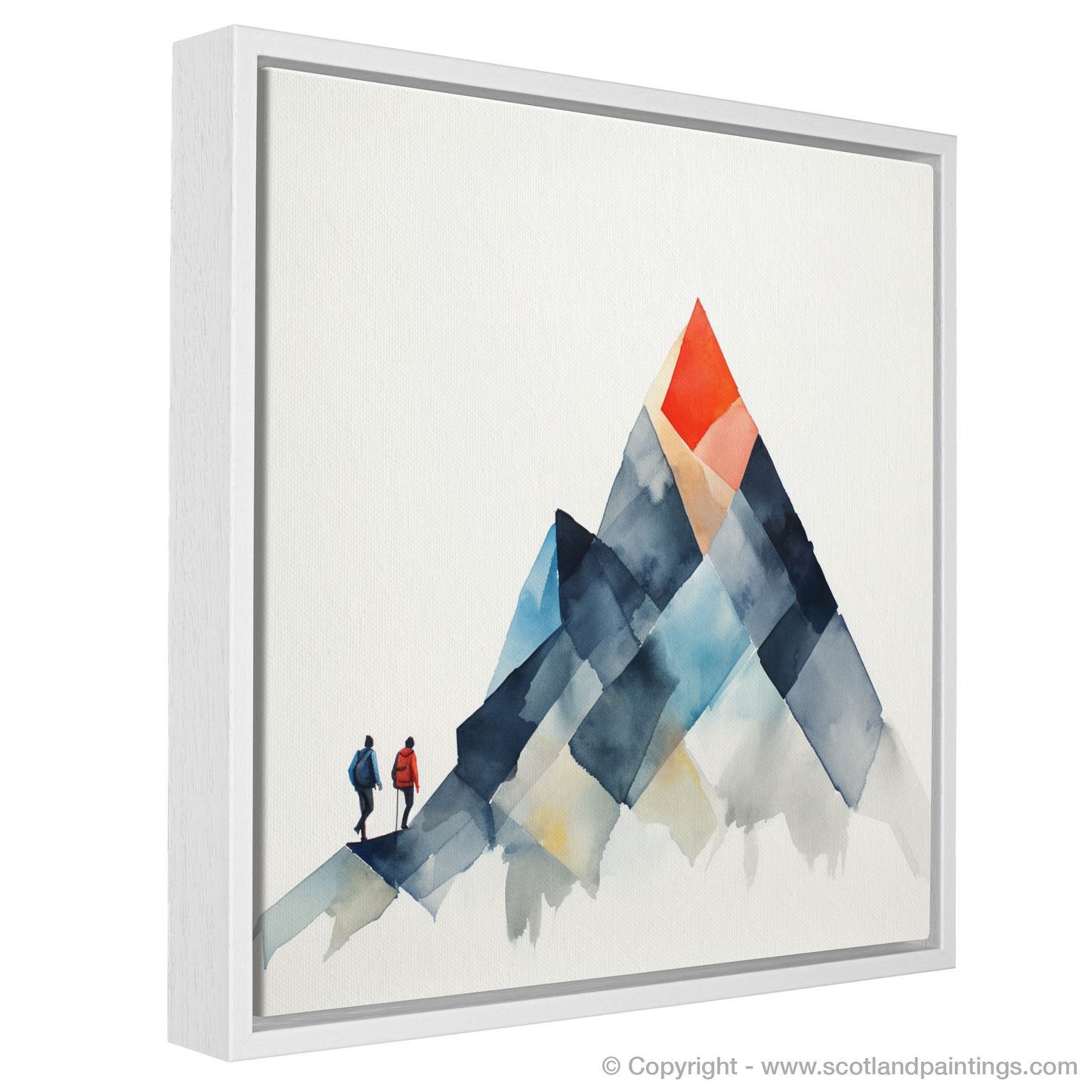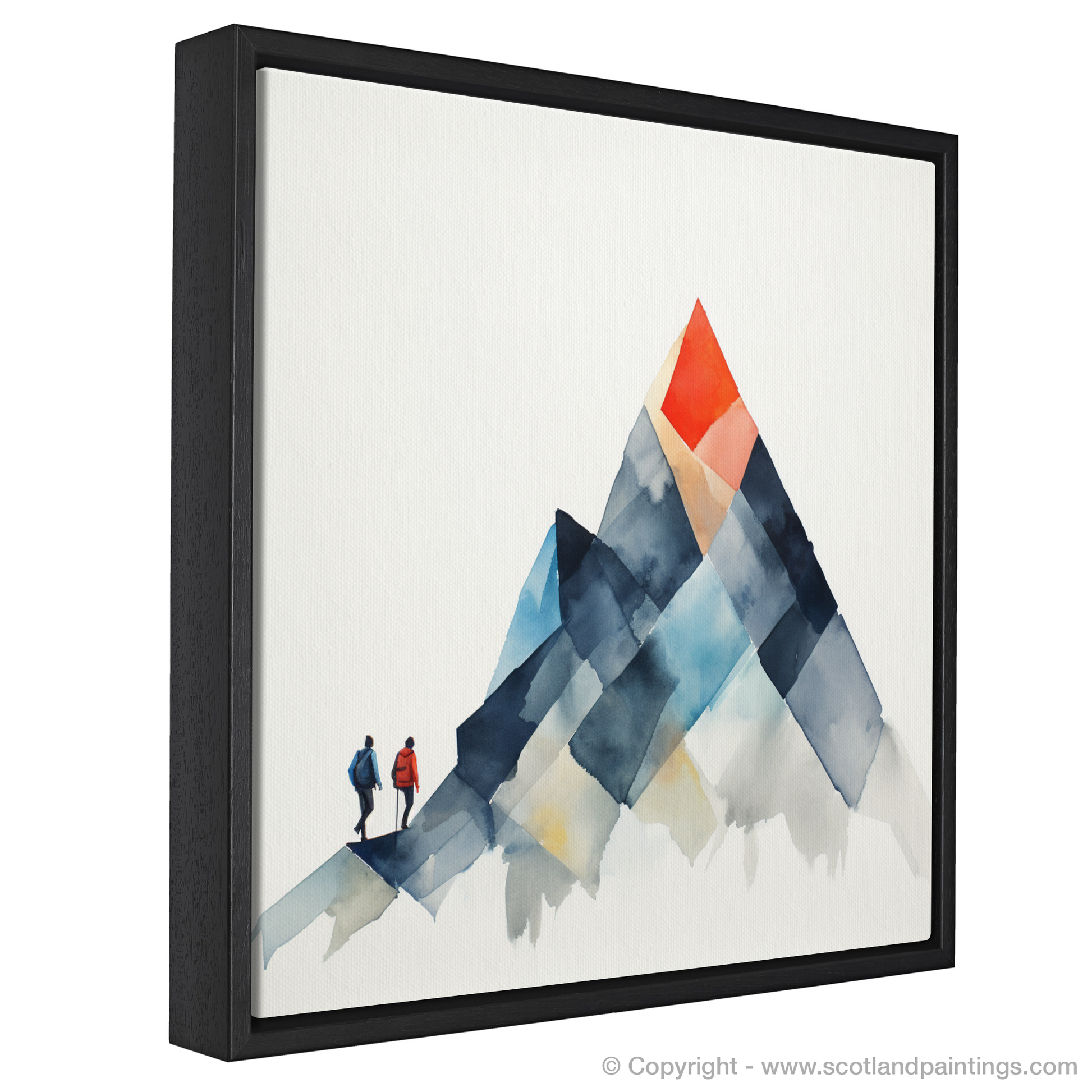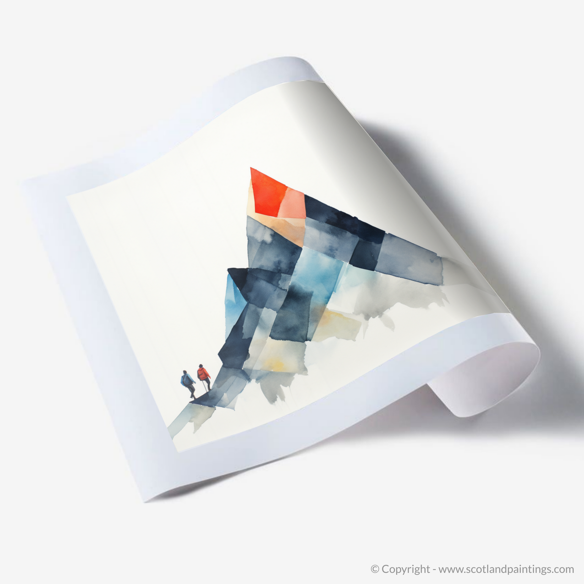 Embrace the essence of serenity and the raw beauty of the natural world with our evocative minimalist print. This piece captures the silent majesty of Glencoe's rugged terrain through a symphony of geometric abstraction, using a strikingly simple colour palette to convey the enormity and grandeur of the landscape. Cool shades of blues and greys intertwine, forming sharp, angular shapes that replicate the formidable mountains, while a pop of warm red at the summit captures the fleeting kiss of the sun's last rays.