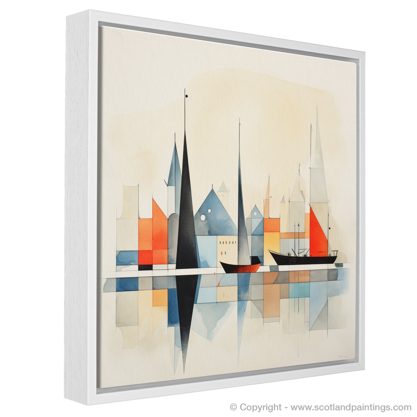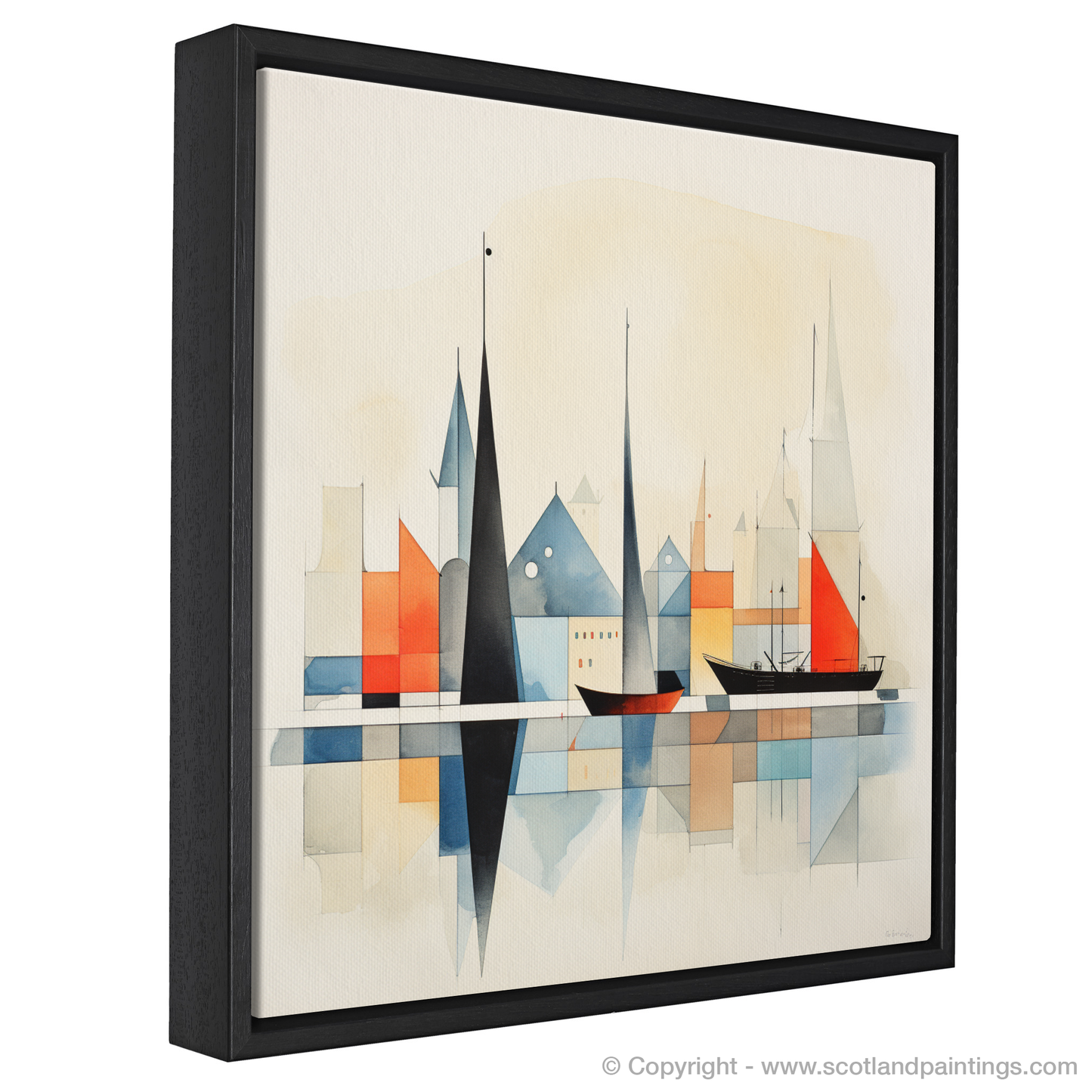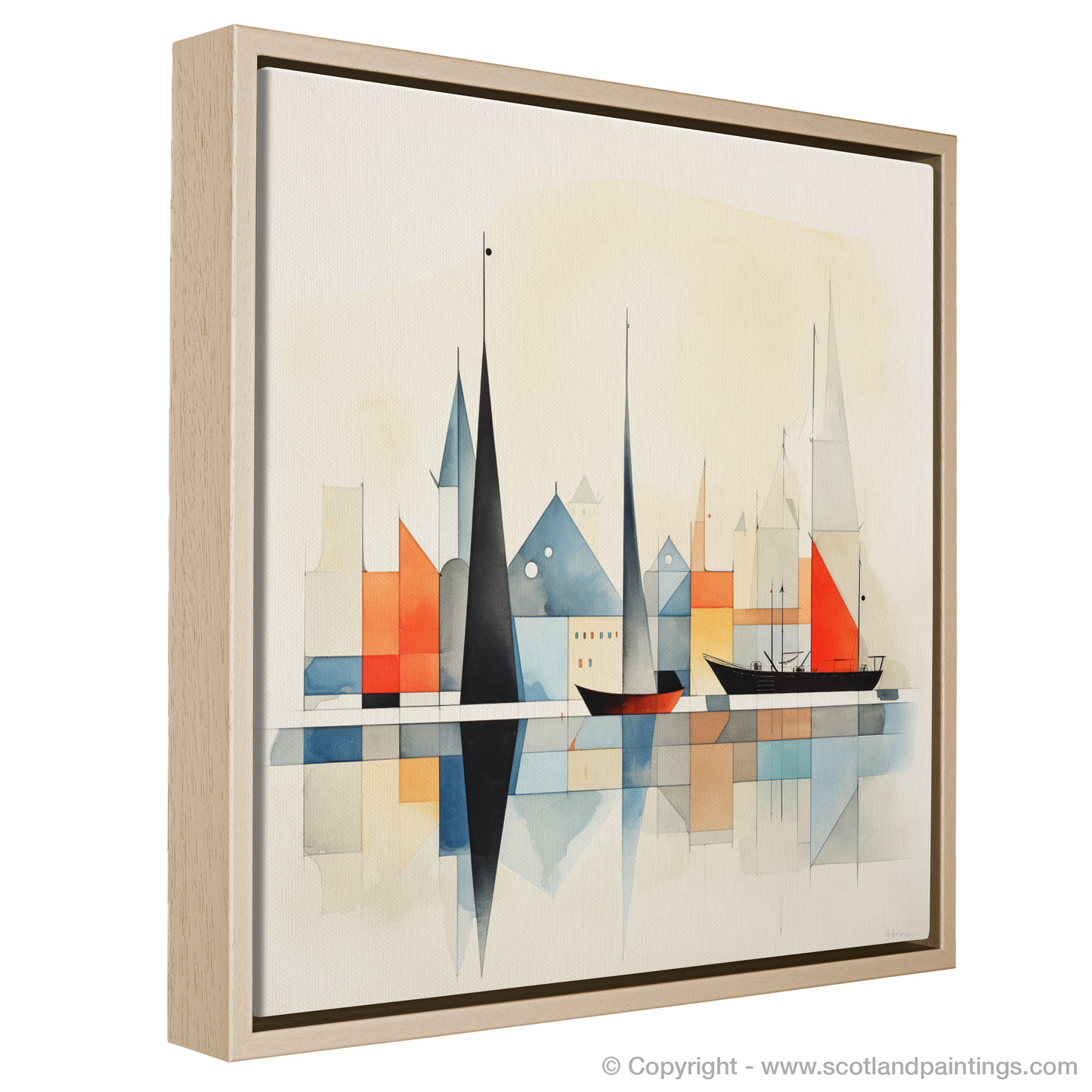 Embracing a harmonious palette, shades of earthy terracotta, muted blues, ochres, and cool greys coalesce, evoking the natural colours one would find along the rugged coast and historic stonework of Kirkwall. Splashes of more vivid orange and red breathe life into the scene, mirroring the vibrant energy of harbour life.