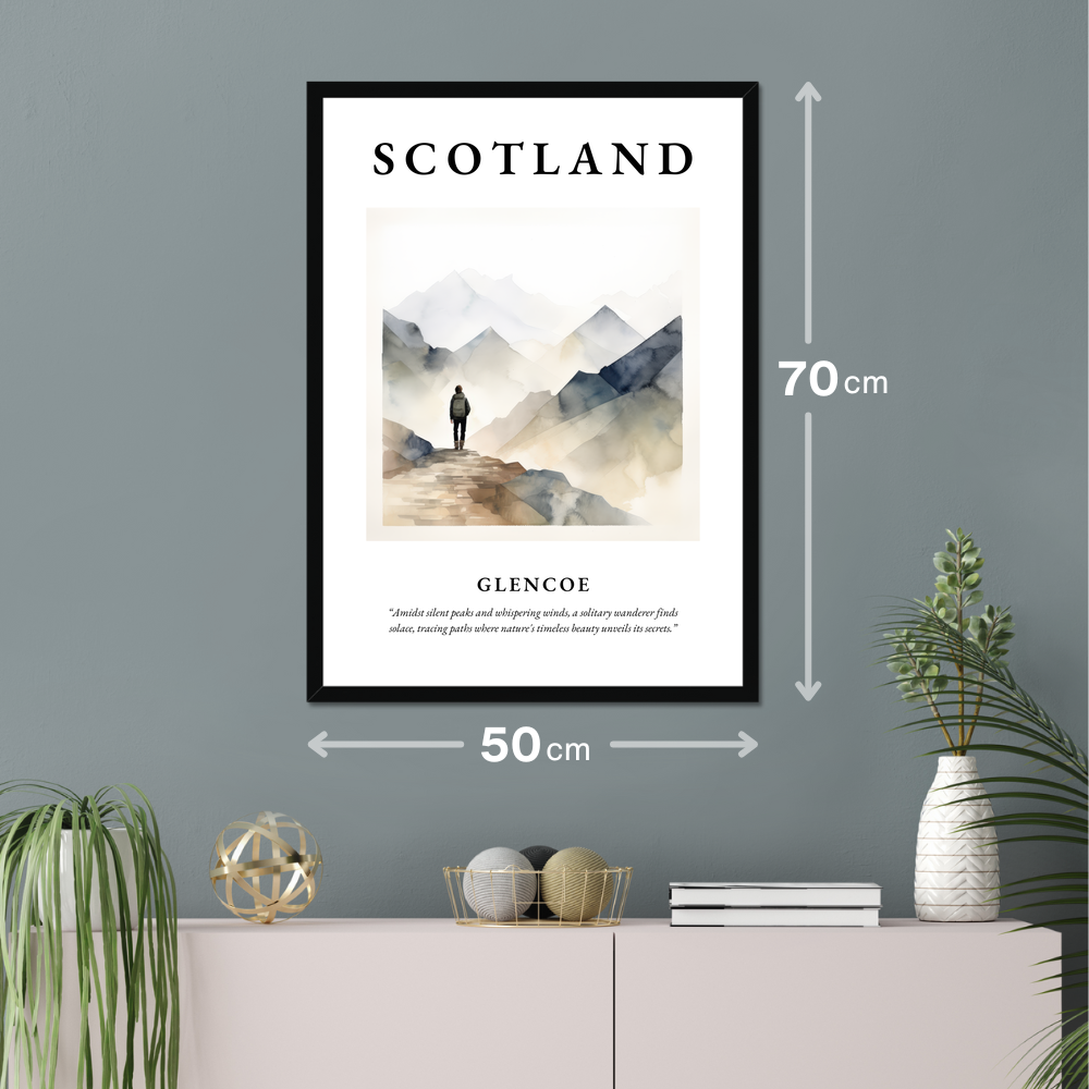 Experience the serene majesty of Scotland with our captivating framed poster print, designed to transport you to the breathtaking landscapes of Glencoe. This striking 50cm x 70cm poster, part of our "Modern & Minimal" collection, is crafted for those who cherish the unique blend of minimalistic art and the timeless allure of Scotland's rugged terrain.