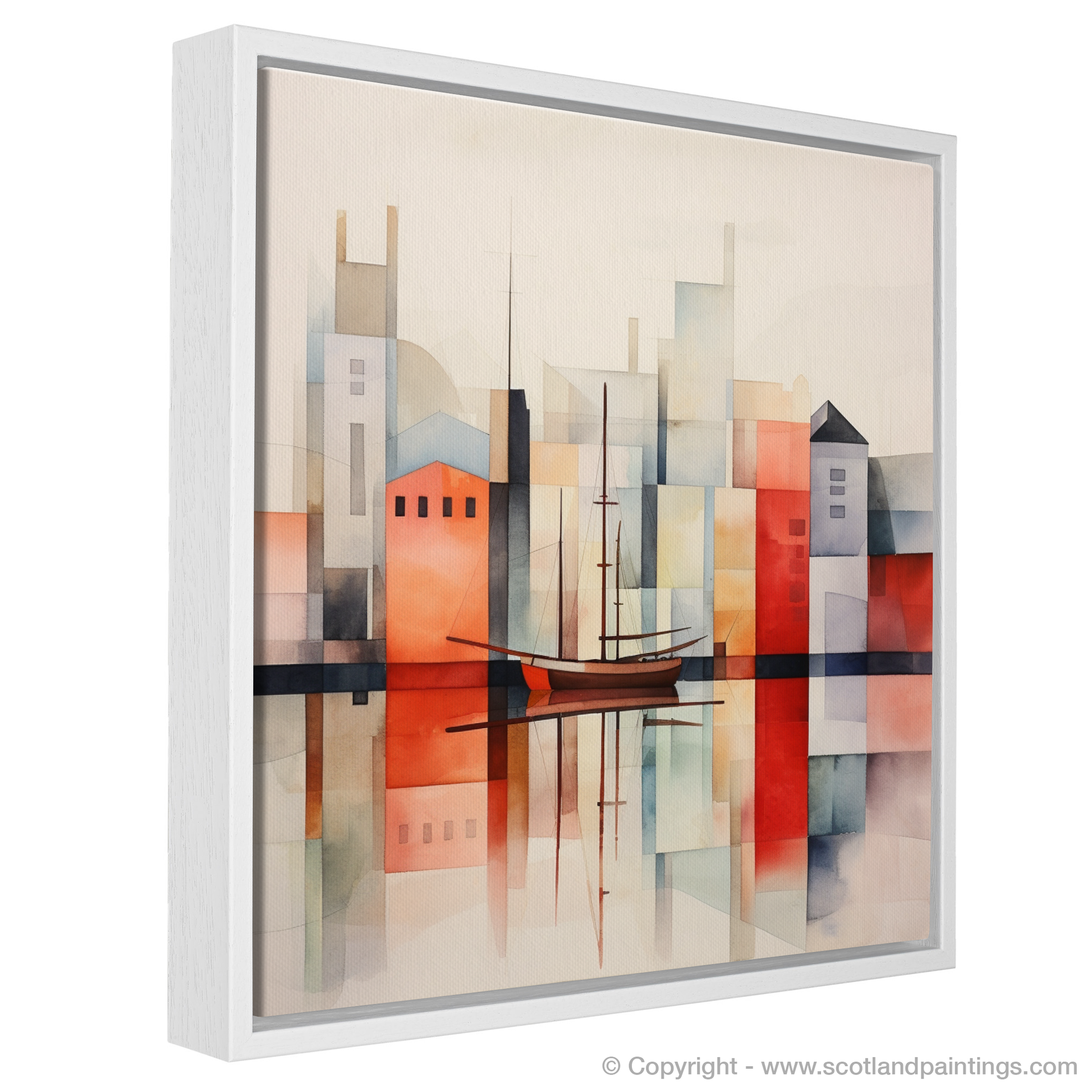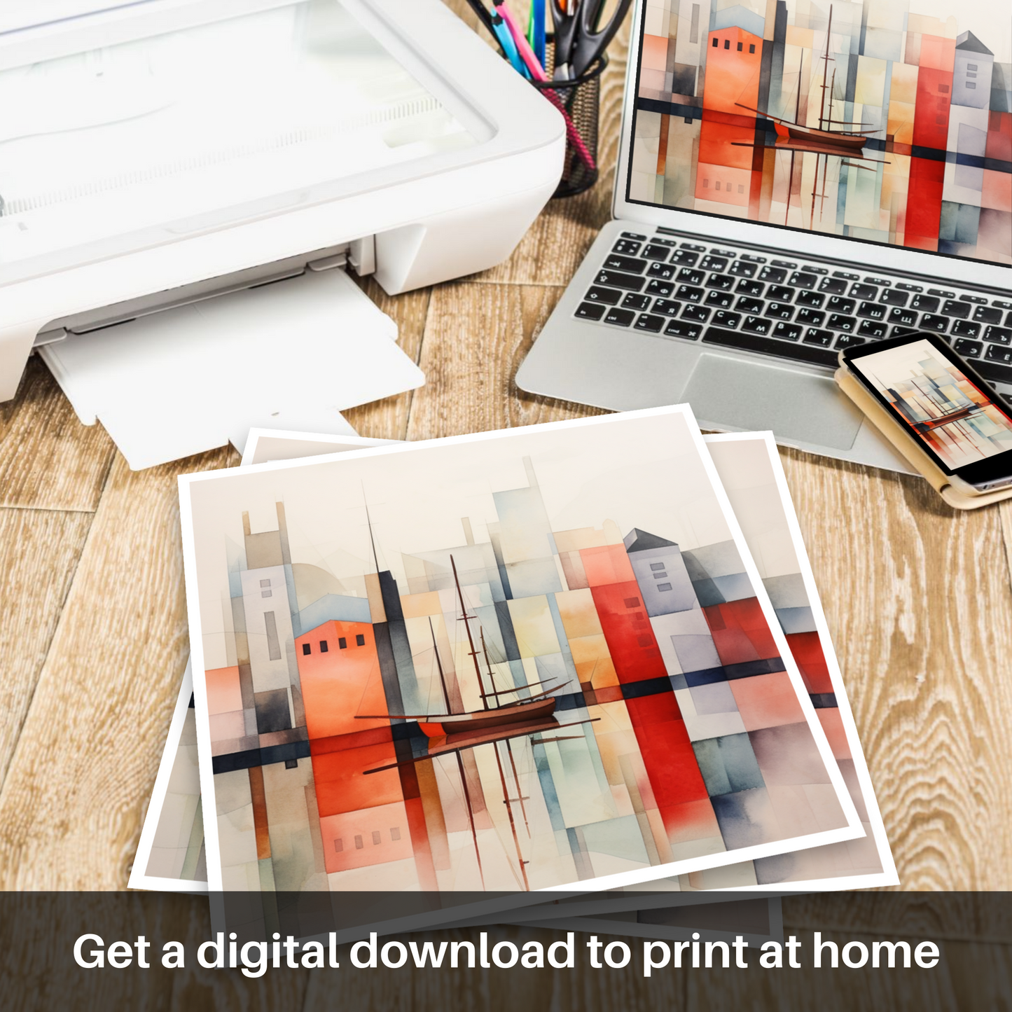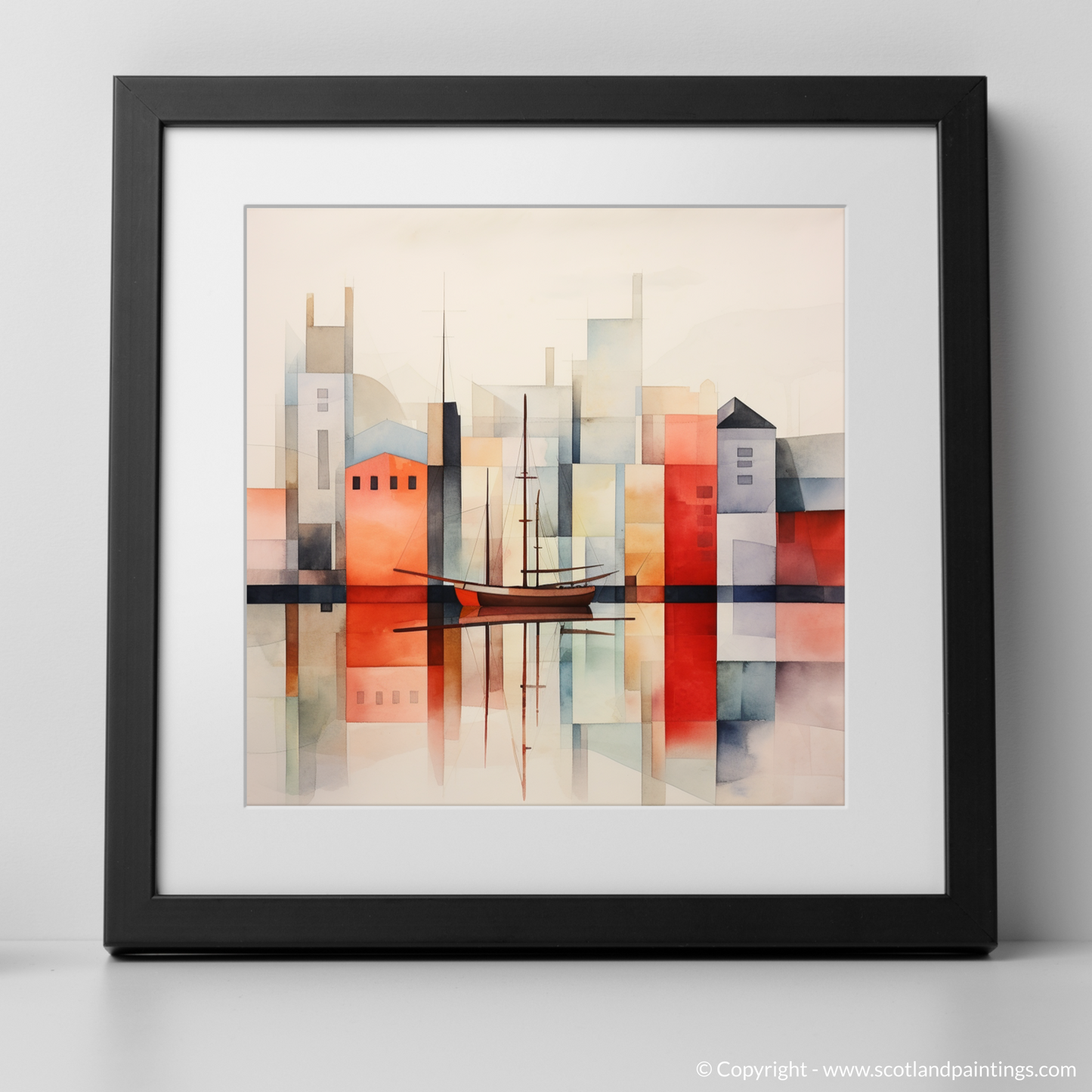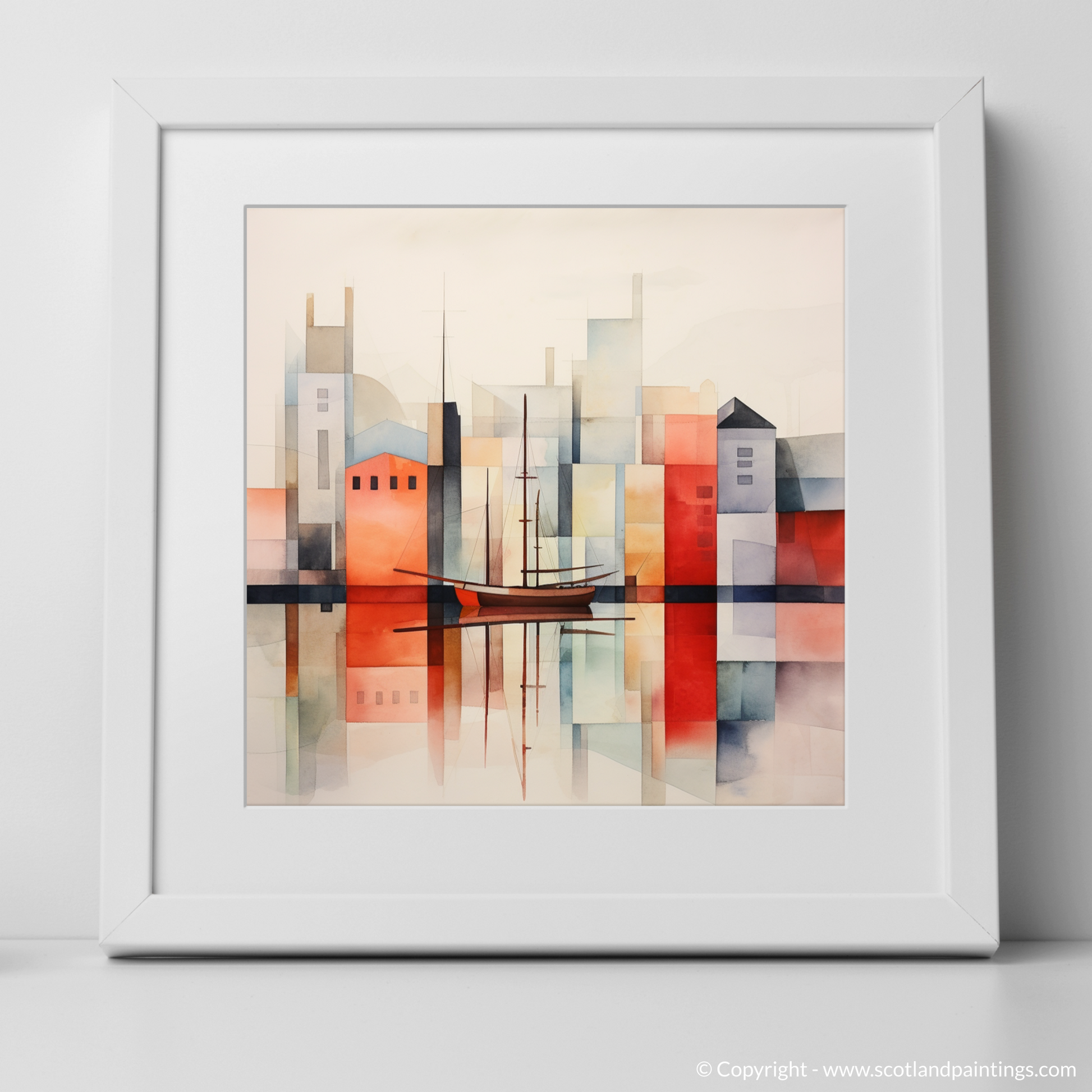 Immerse yourself in the serene beauty of the harbour with our evocative print. The scene captures the essence of Stornoway Harbour through a minimalist lens, inviting a sense of calm and contemplation. Distilled to its purest form, the artwork presents a harmonious blend of simple geometric forms and a refined colour palette, reflecting the tranquillity one might find by the water's edge.