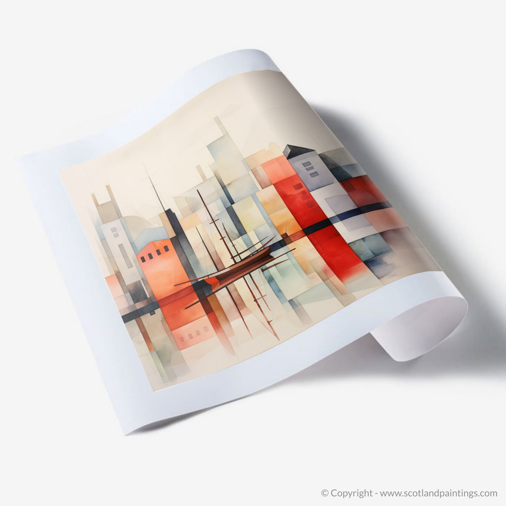Lines intersect and shapes layer to create a sense of depth and perspective, drawing the viewer into this distilled vision of Stornoway. Each segment and shade merges into a delicate play of light and shadow, evoking the interplay between the built environment and the natural beauty of the sea, offering a moment of peaceful reflection.