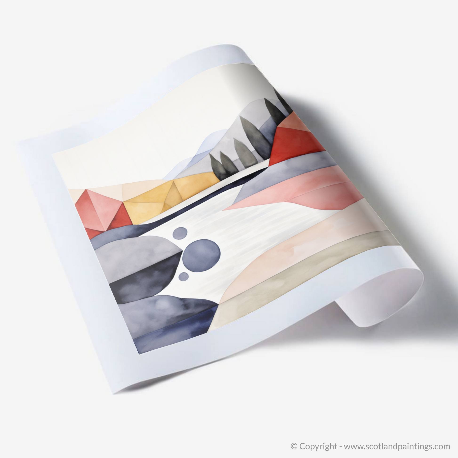 Capturing the serene essence of the majestic River Spey, this exquisite print presents its inspiration through a minimalist lens. With an elegant interplay of geometric shapes and a soft, muted palette, the work invites contemplative thoughts and a sense of calm. The natural landscape is abstracted into a harmonious composition of triangles, rectangles, and curving forms, portraying hills, water, and forestry with a stylised simplicity.