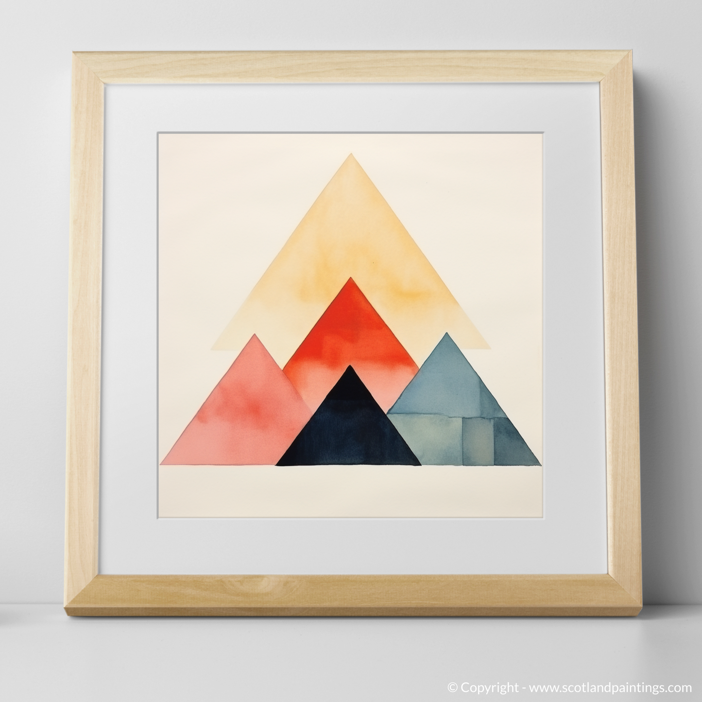 Immerse yourself in the serenity of the Scottish highlands with this evocative minimalist print, capturing the essence of Càrn Mòr Dearg's majestic silhouette. Embracing the ethos of less is more, this print employs a harmonious blend of geometric shapes and a soothing colour palette to represent the natural grandeur of this famed mountain.