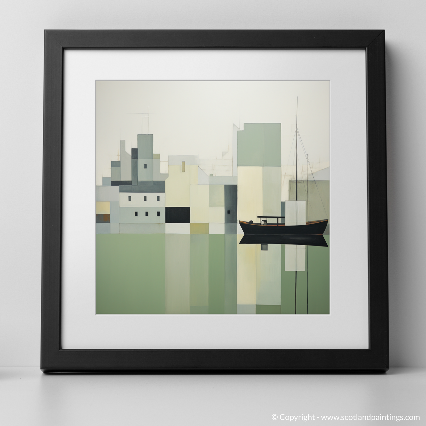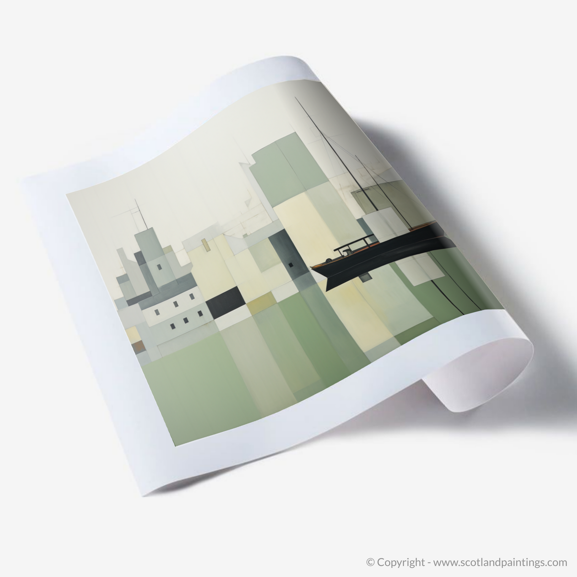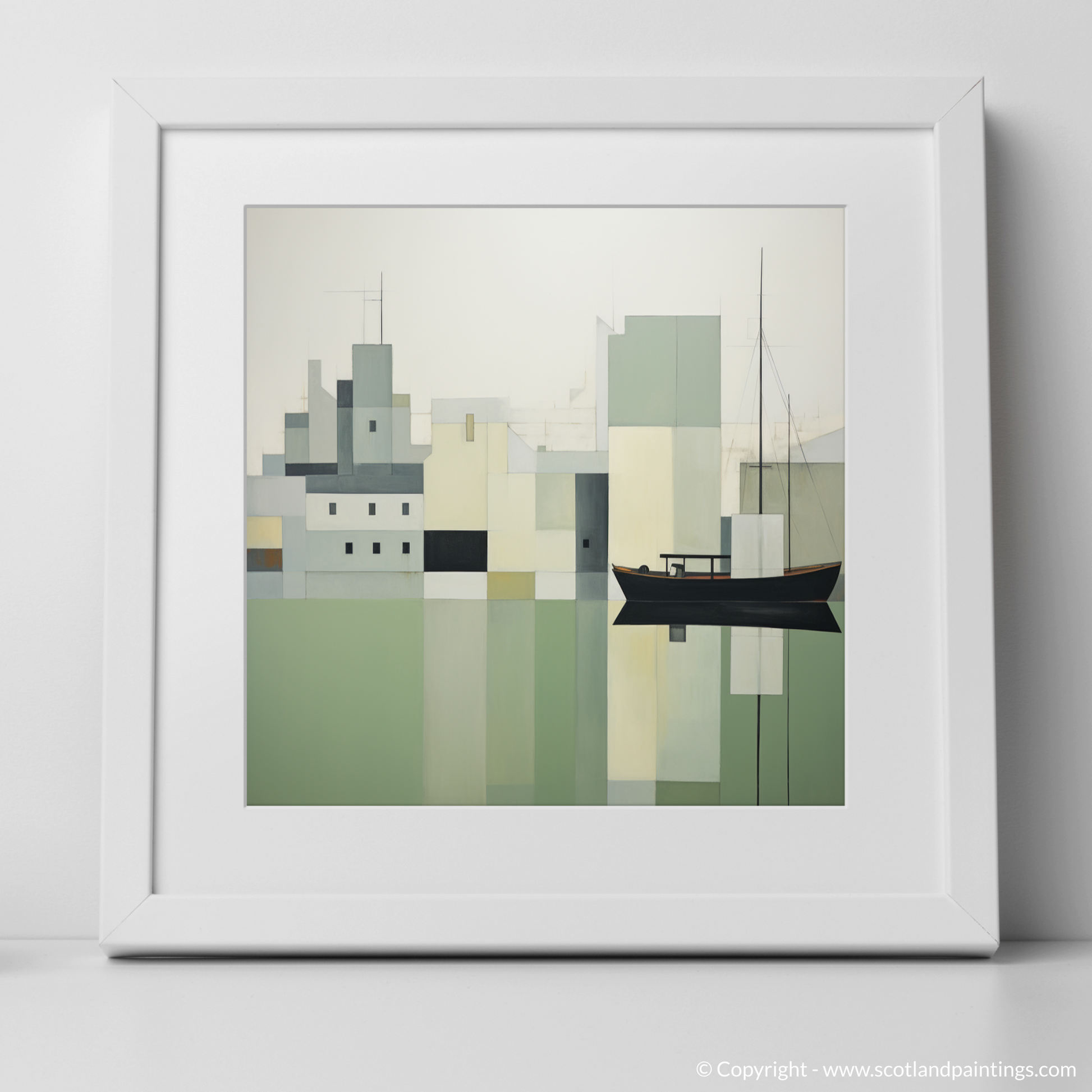 Capturing the essence of calmness and simplicity, this evocative print reflects the tranquil atmosphere of Lerwick Harbour through the lens of Minimalism. The composition is steeped in soothing blocks of muted greens, creams, and grays, artfully juxtaposed to form the serene backdrop of harbour buildings. Their geometric flatness, devoid of intricate detail, invites contemplation and echoes the serenity that the harbour naturally exudes.