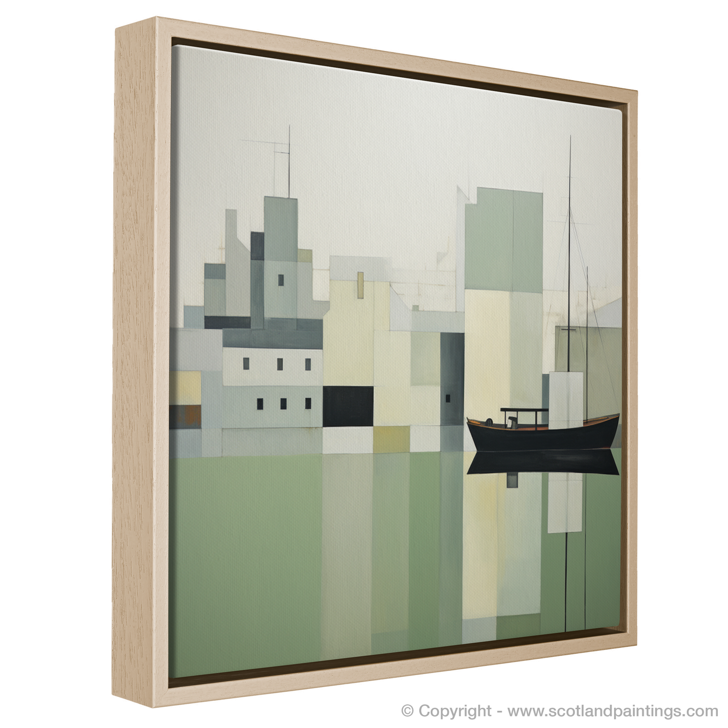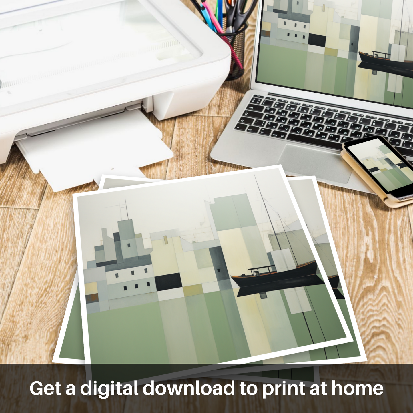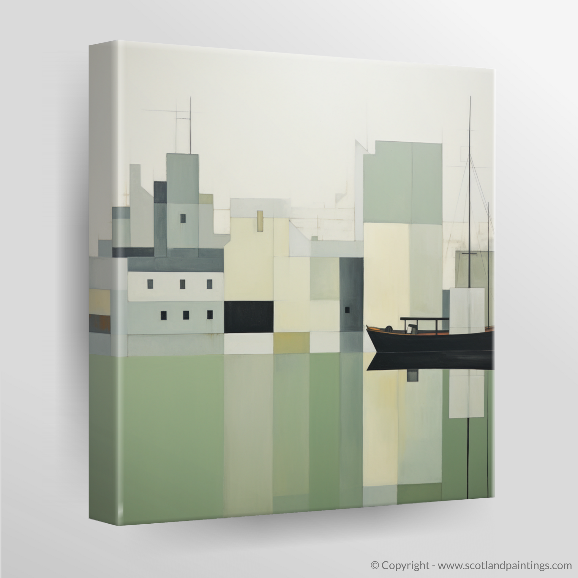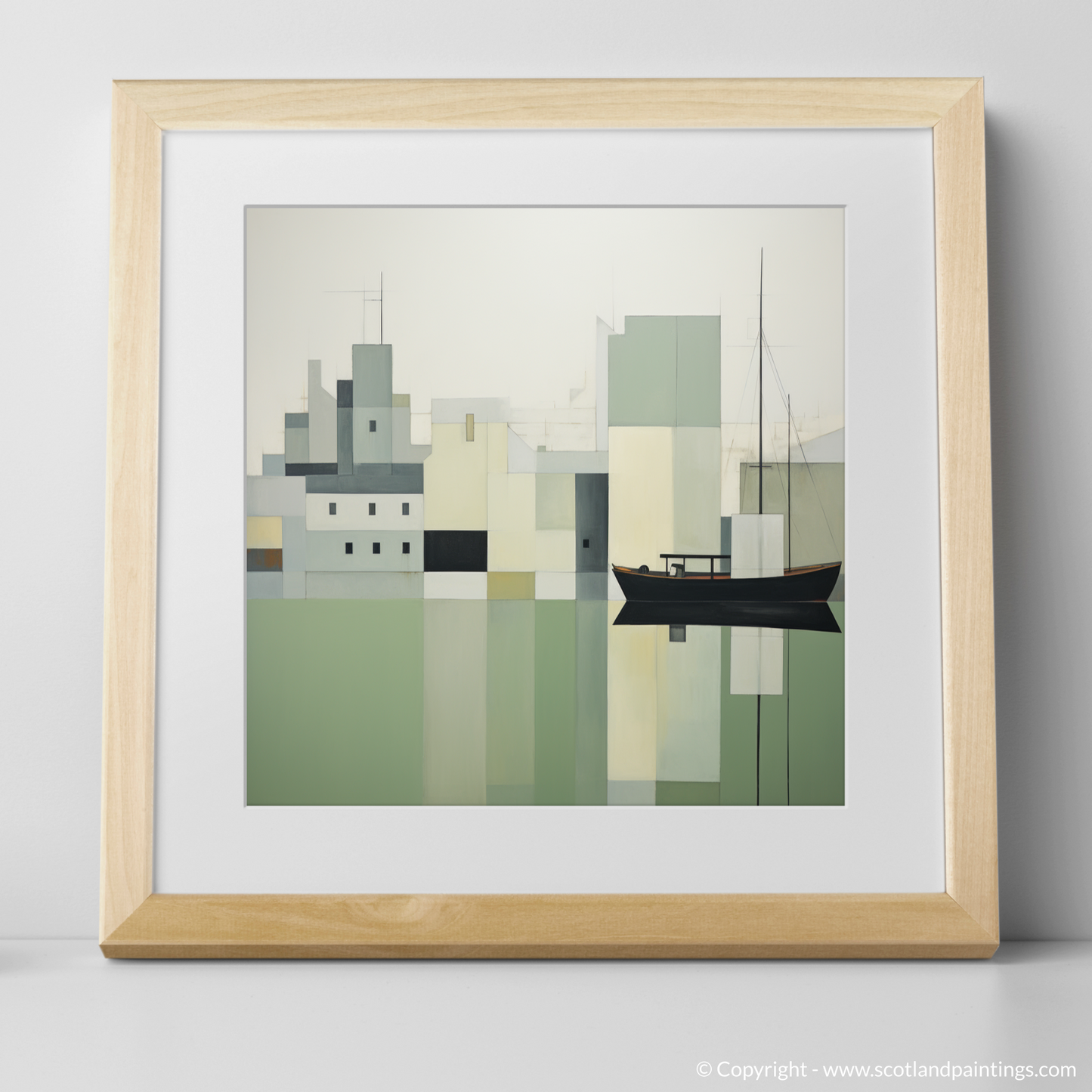 Capturing the essence of calmness and simplicity, this evocative print reflects the tranquil atmosphere of Lerwick Harbour through the lens of Minimalism. The composition is steeped in soothing blocks of muted greens, creams, and grays, artfully juxtaposed to form the serene backdrop of harbour buildings. Their geometric flatness, devoid of intricate detail, invites contemplation and echoes the serenity that the harbour naturally exudes.