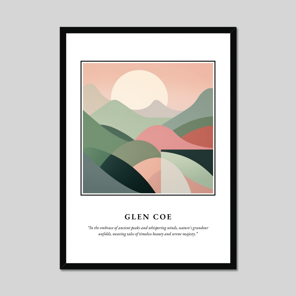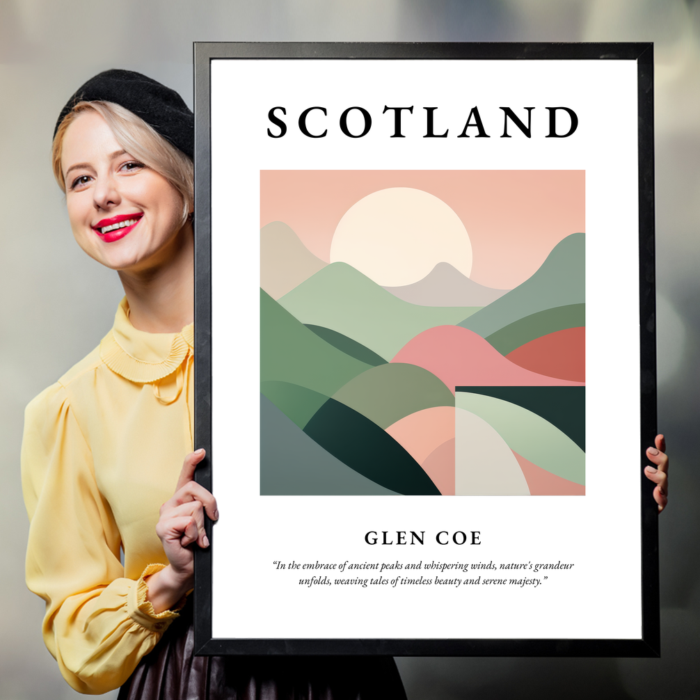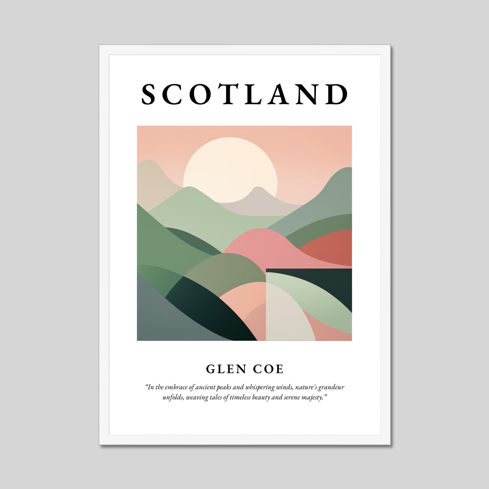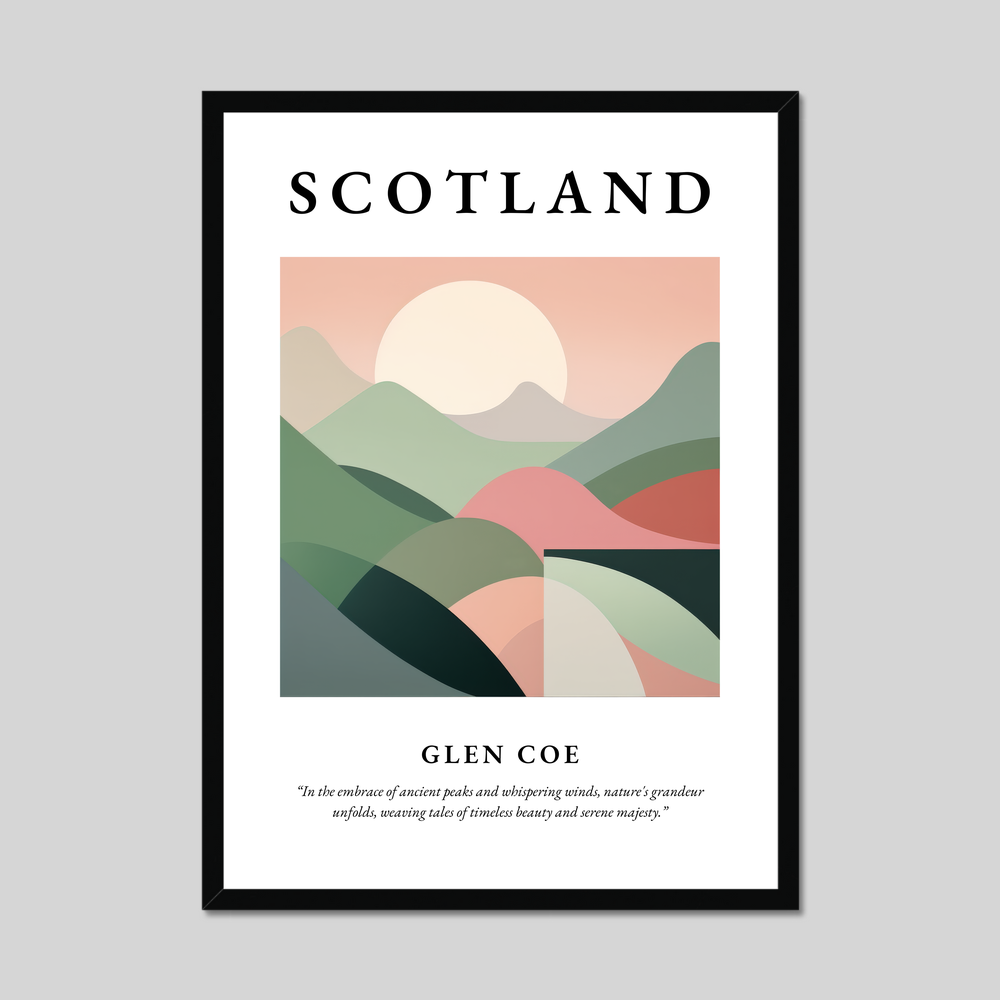 Whether you have walked its rugged paths, admire its compelling history, or simply find solace in its untouched beauty, our Glen Coe poster print is a perfect homage to this iconic Scottish landmark. Let the whispers of its winds and the grandeur of its peaks fill your space with a sense of timeless elegance and wonder.