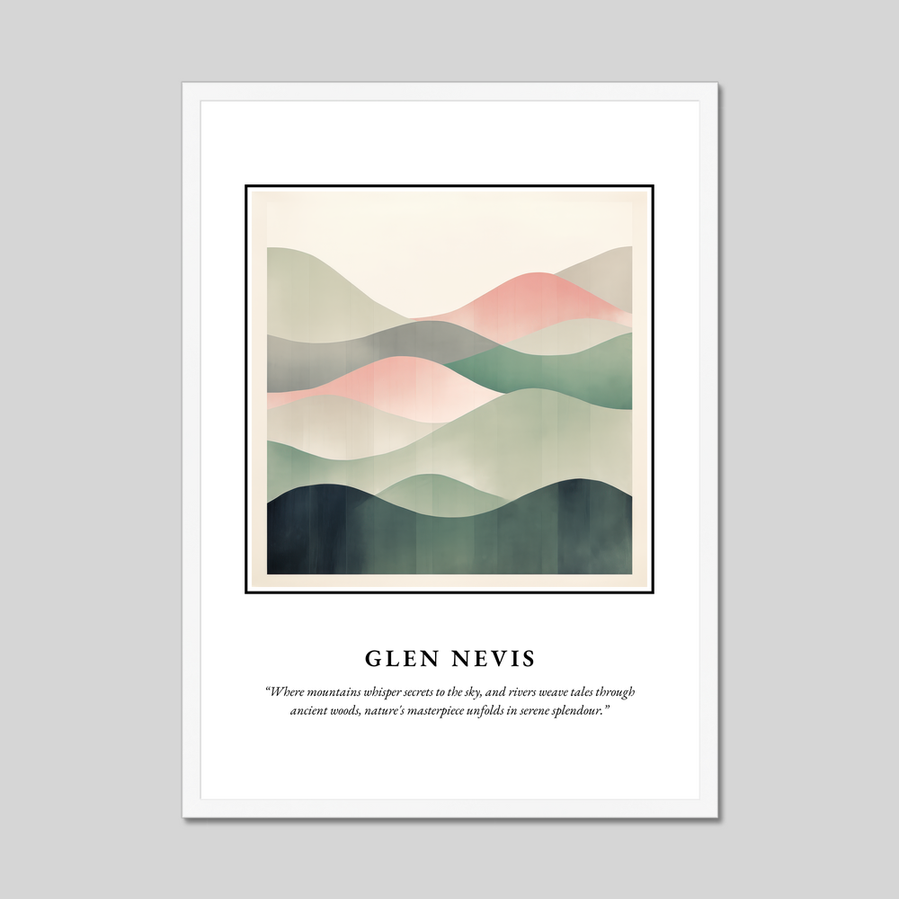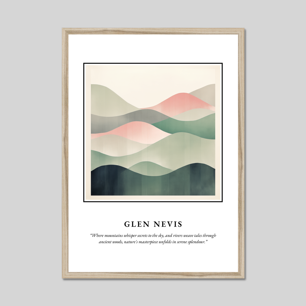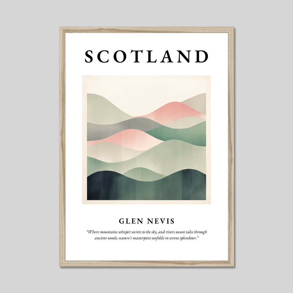 Transform your space with a captivating tribute to the serene beauty of Glen Nevis, captured in our exquisitely framed poster print. Measuring an impressive 50cm x 70cm, this large wall art piece commands attention without demanding a hefty investment. Available in sleek black, classic white, or a natural wood-effect frame, it integrates seamlessly into any decor style.