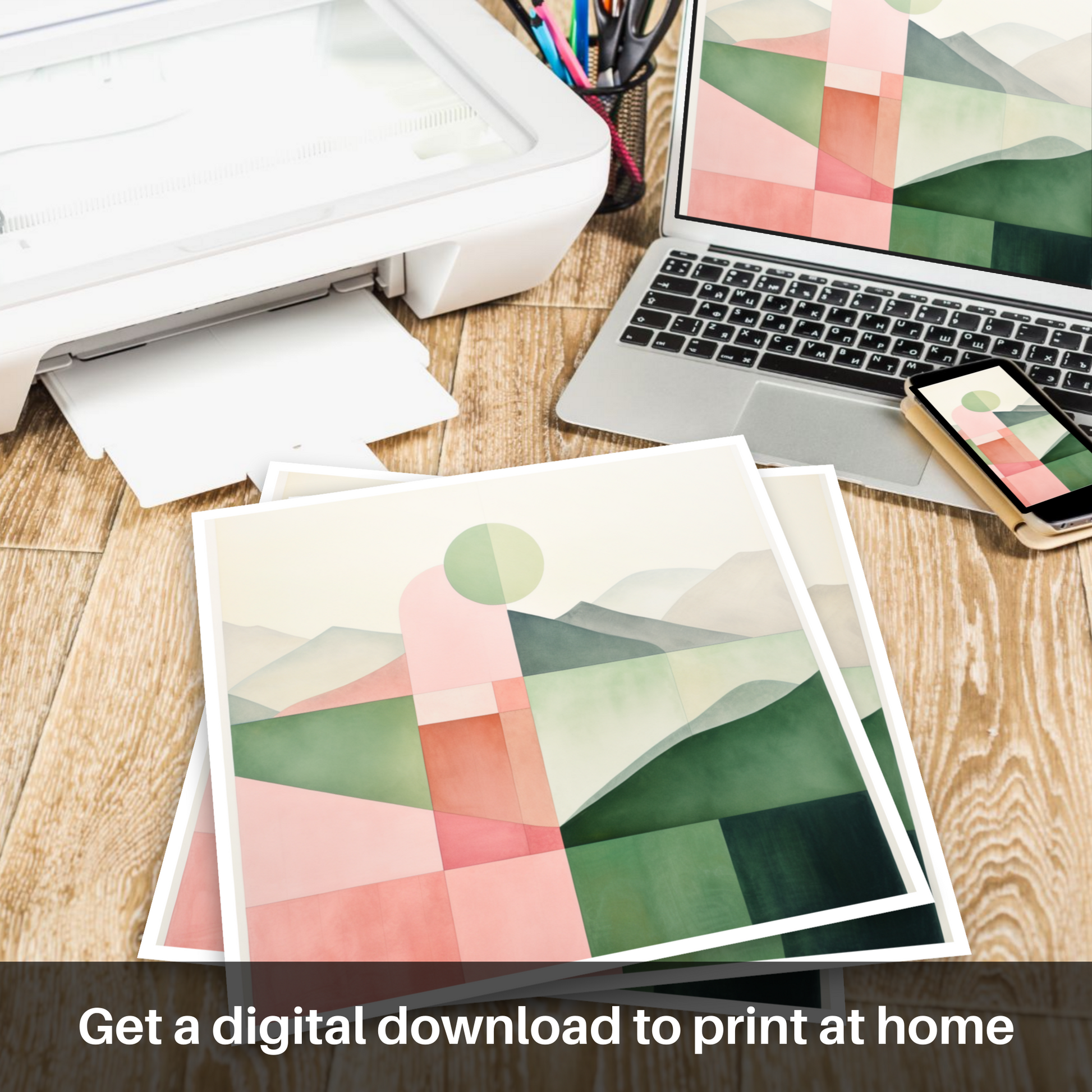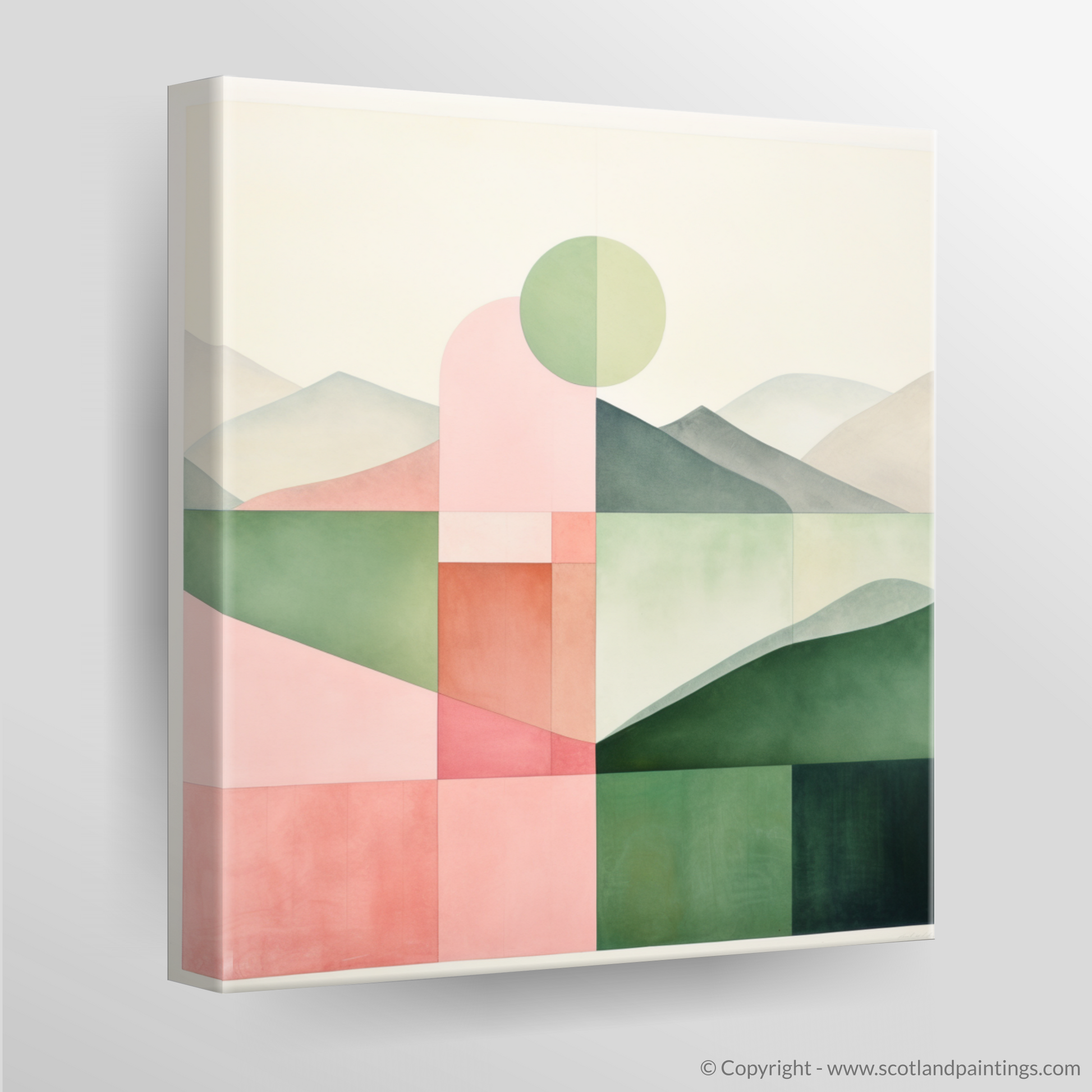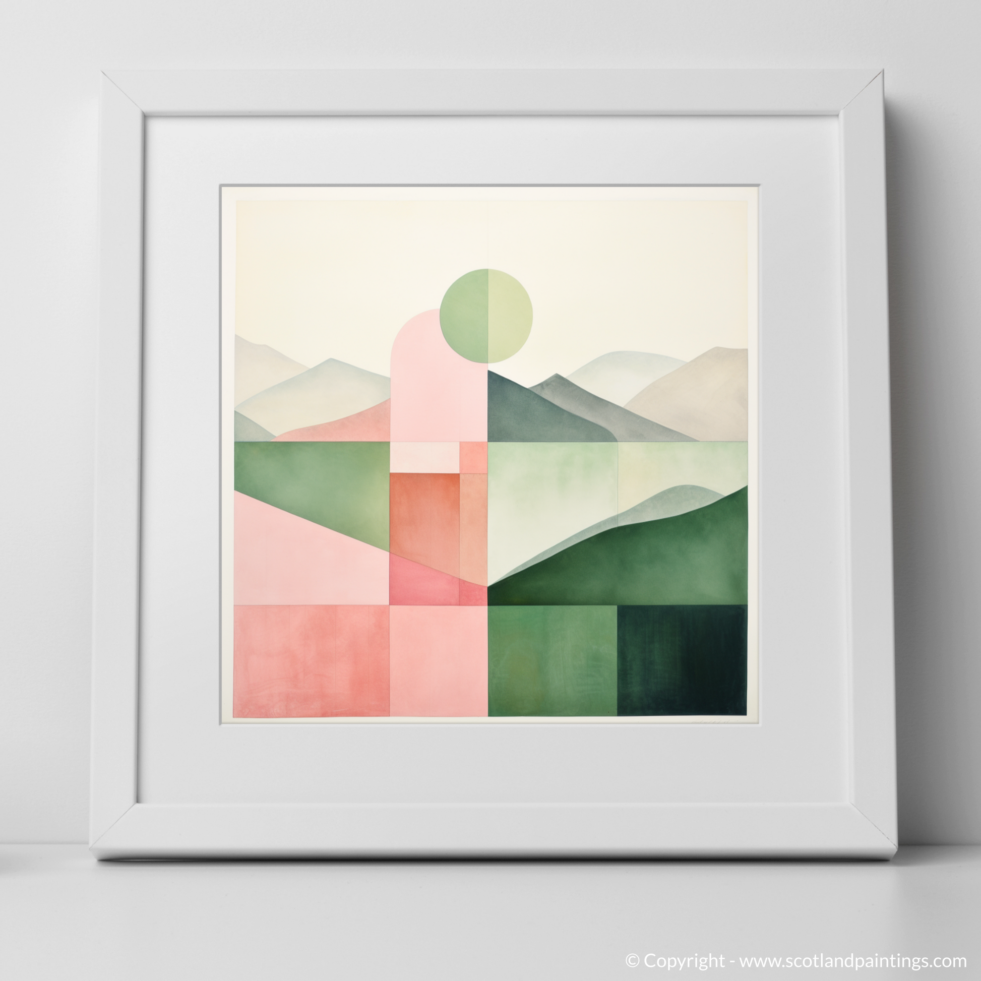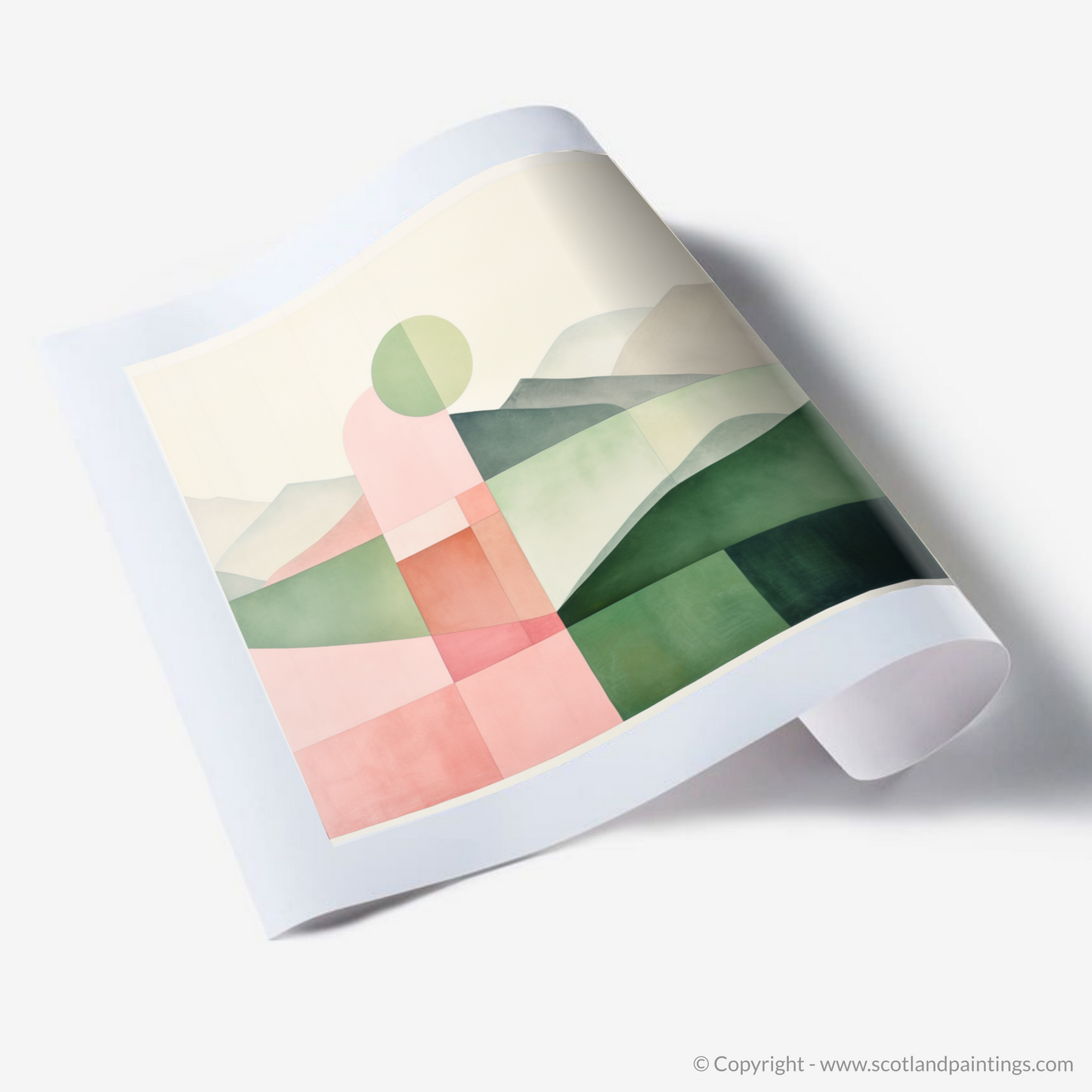 Immerse yourself in the serene simplicity of our inspired print, drawing from the rugged beauty of Glen Coe. This captivating minimalist piece evokes the essence of the Scottish Highlands with an array of harmoniously arranged geometric shapes, seamlessly blending to form an abstract landscape.