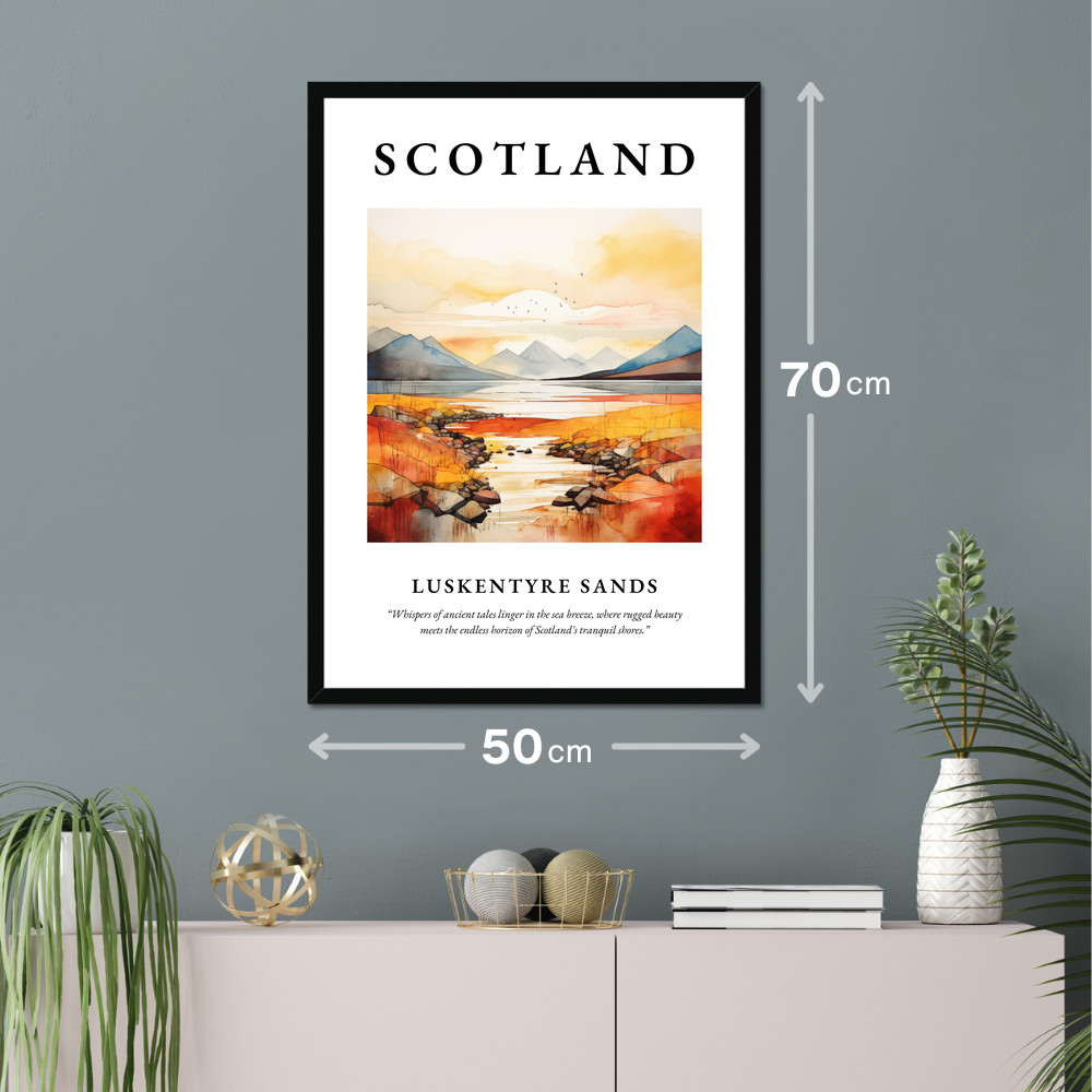Immerse yourself in the serene beauty of Scotland with our stunning 50cm x 70cm framed poster print, capturing the ethereal charm of Luskentyre Sands. This piece, part of our “Modern & Minimal” collection, elegantly combines bold typography with a delightful painting that celebrates one of Scotland’s most breathtaking landscapes. The minimalist style of the artwork draws you in with its soft hues and clean lines, evoking a sense of calm and tranquility while showcasing the rugged elegance of nature.