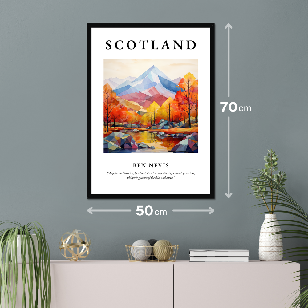Delve into the enchanting allure of Scotland with our captivating 50cm x 70cm framed poster print from the “Modern & Minimal” collection. Whether you're an art enthusiast, a traveller fondly reminiscing about a visit, or someone connected to the majestic landscapes of Scotland, this piece offers a stunning tribute to the country's iconic Ben Nevis.