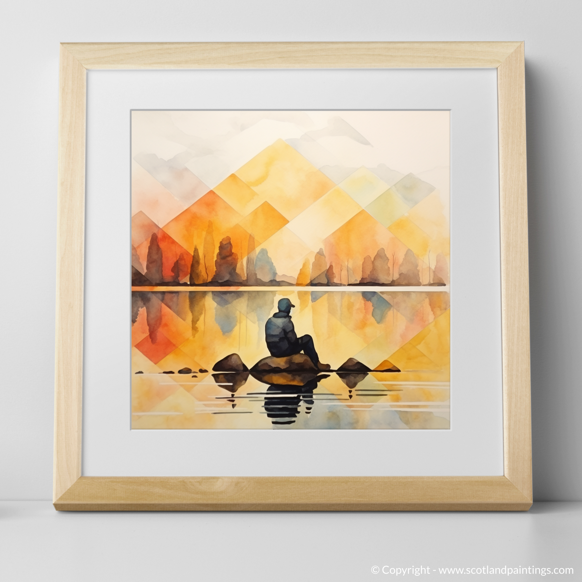 Immerse yourself in the serene splendour of Scotland's nature with this evocative print capturing the essence of a tranquil fishing moment in the sublime setting of Loch Lomond. Rendered in a minimalist style, the composition distils the scene into its purest forms and colours, inviting a sense of calm introspection.
