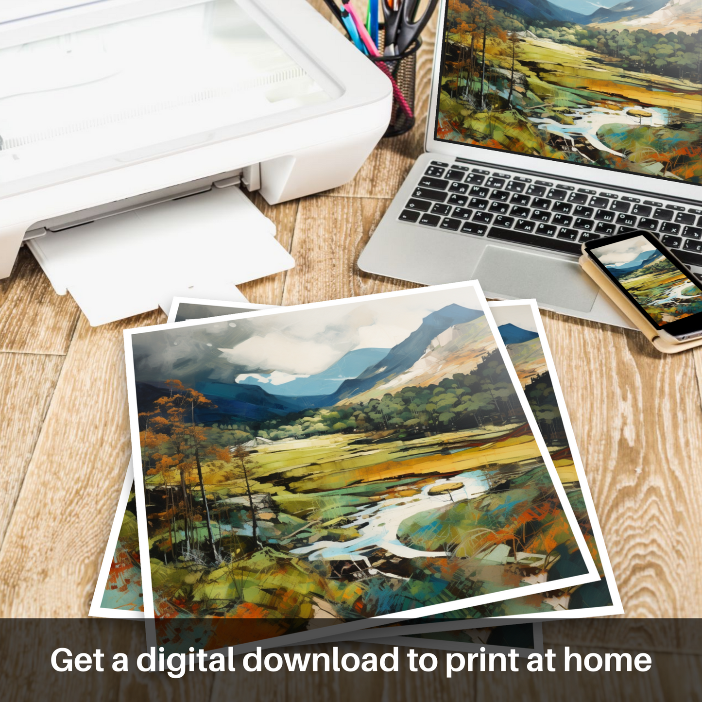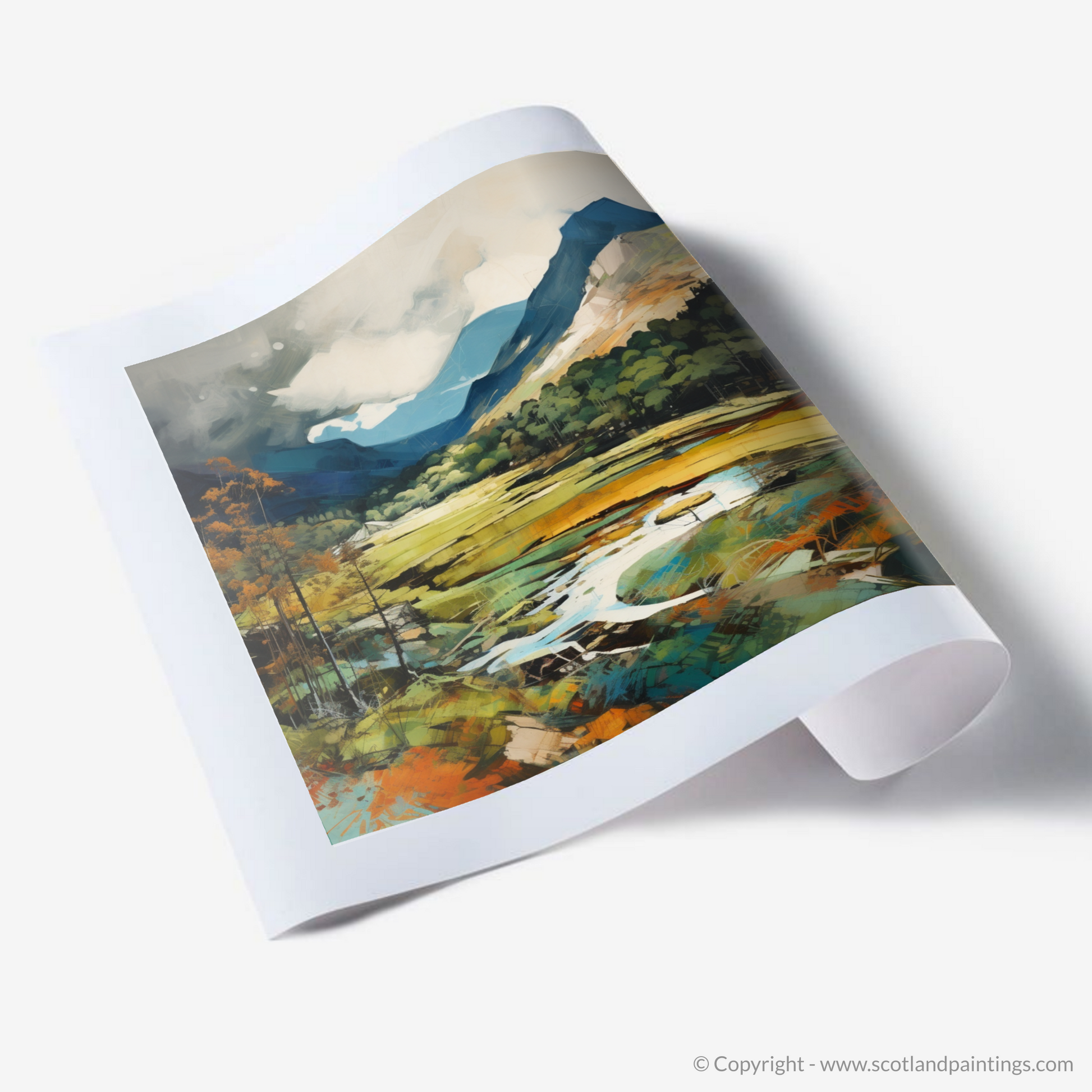 Immerse your senses in the rugged beauty of the Scottish Highlands with this evocative print, capturing the essence of Glen Affric through a cubist lens. A patchwork of geometric shapes and tumbling planes, this image skillfully melds the traditional landscape with the avant-garde, offering a fresh perspective on the natural splendour of one of Scotland's most magnificent glens.