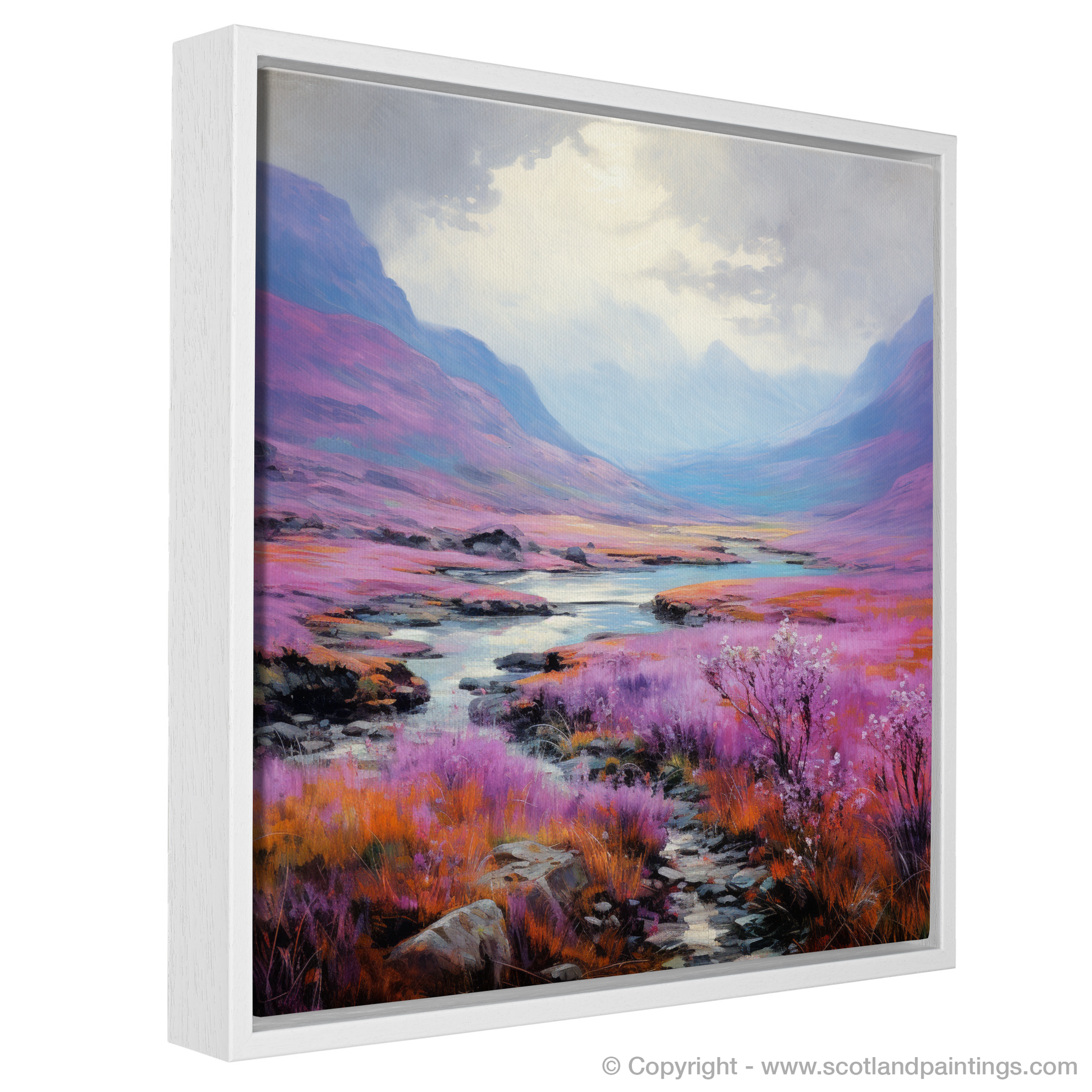 Capturing the magnificent allure of Glencoe, this evocative print imbues any space with the timeless romance of the Scottish Highlands. Swathes of captivating purple heather envelop the undulating landscape, suffusing it with a dreamlike quality that beckons the viewer to step into a world where nature's beauty reigns supreme.