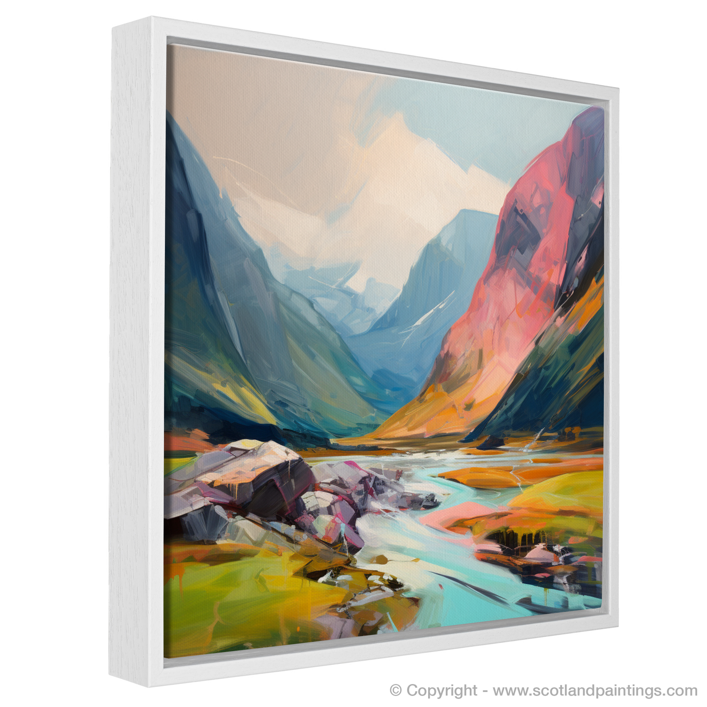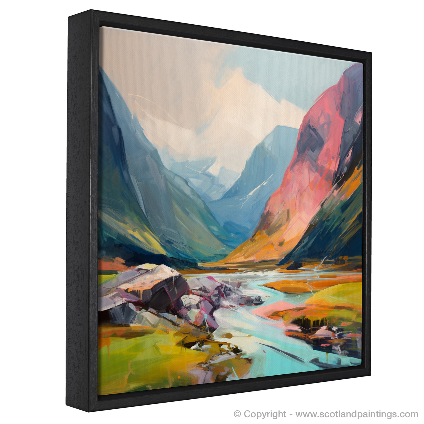 Immerse yourself in the rugged beauty of Scotland's natural splendour with this striking work of art, capturing the essence of Glen Coe. This compelling image presents a bold and contemporary interpretation of one of Scotland's most majestic landscapes, where every brushstroke conveys the powerful serenity of the Highlands.