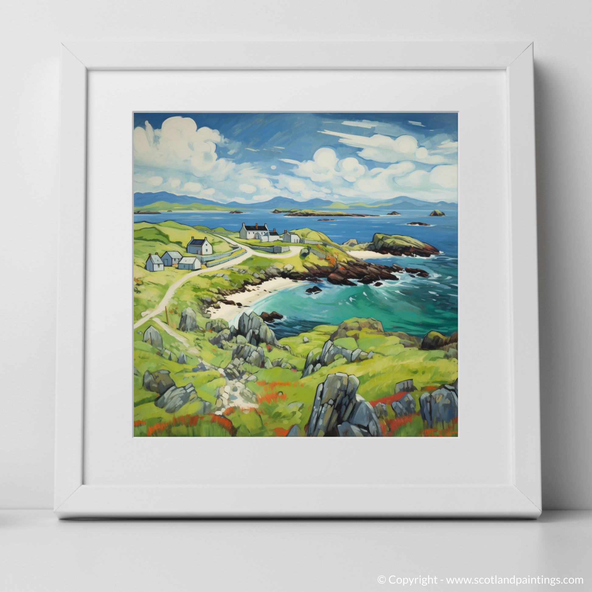 Unwind with a serene slice of Scottish charm, encapsulated in the quaint and colourful representation of the Isle of Iona. This artfully naive print brings the picturesque landscape to life through the lens of simplicity and warmth, making it a beloved inclusion in our 'Scotland Favourites' collection.
