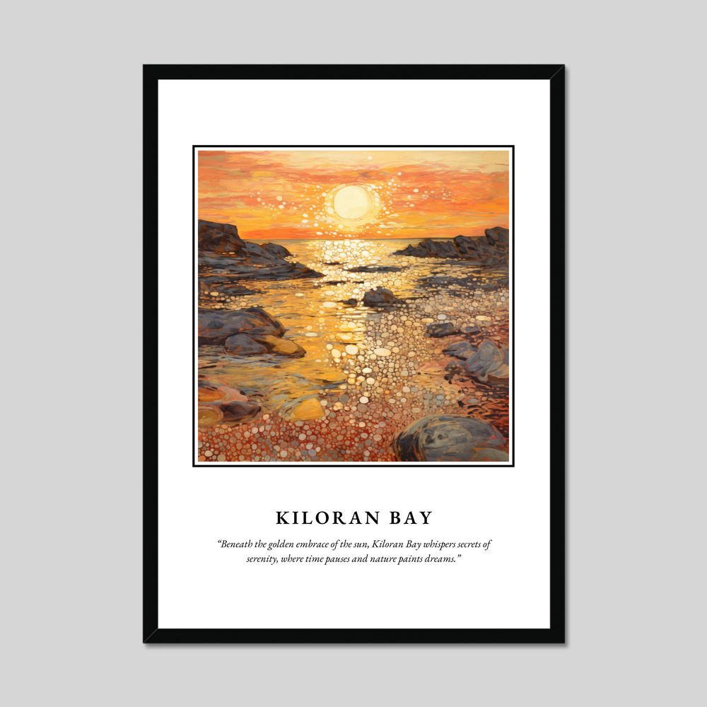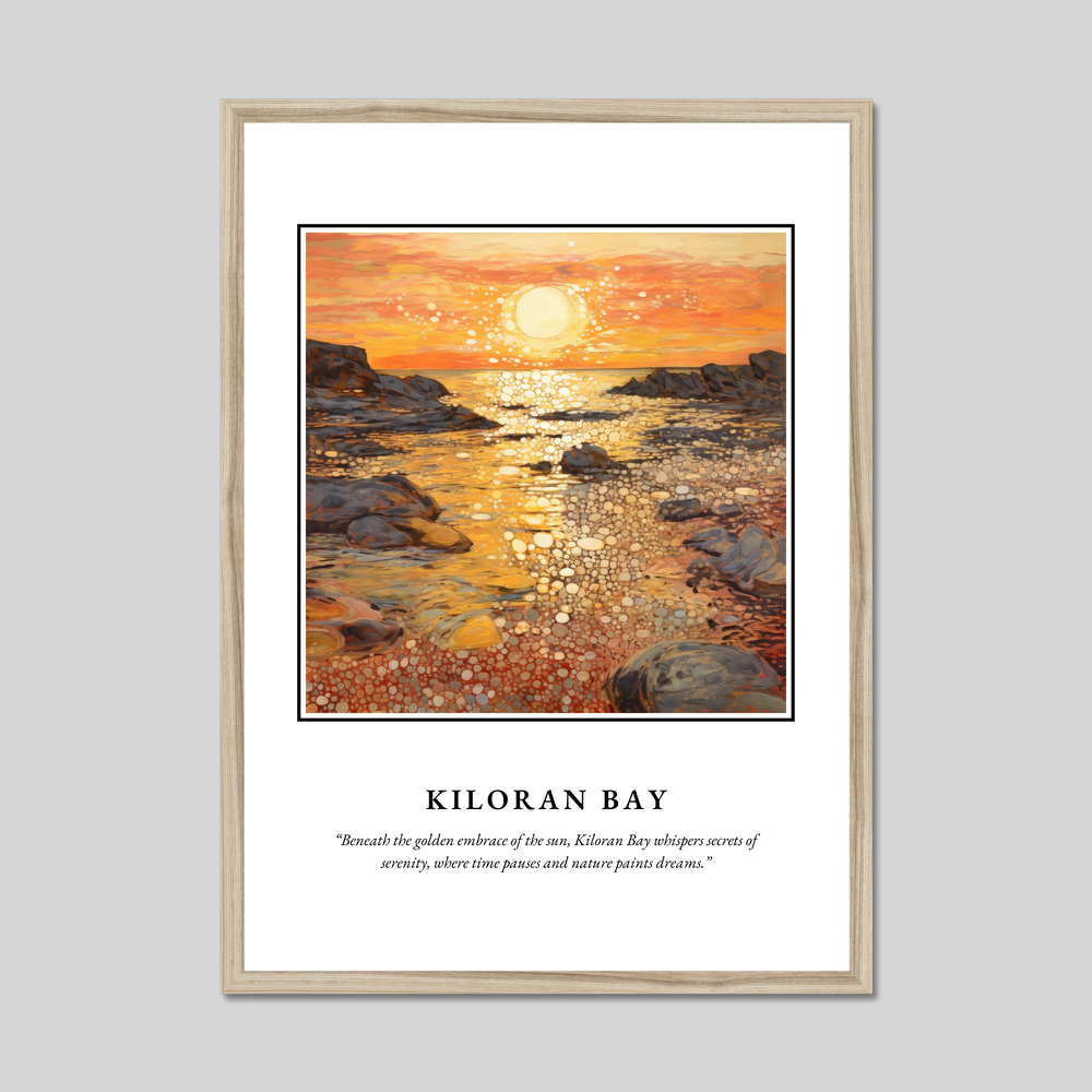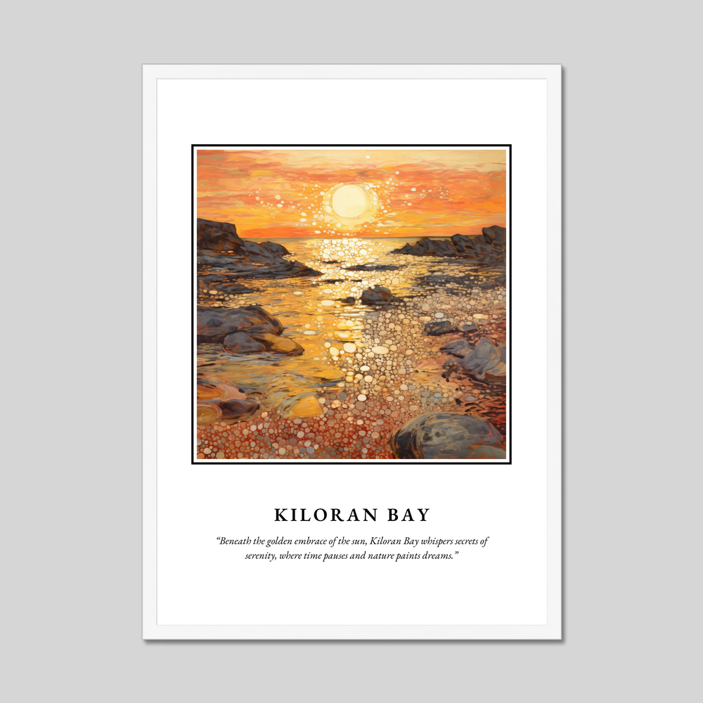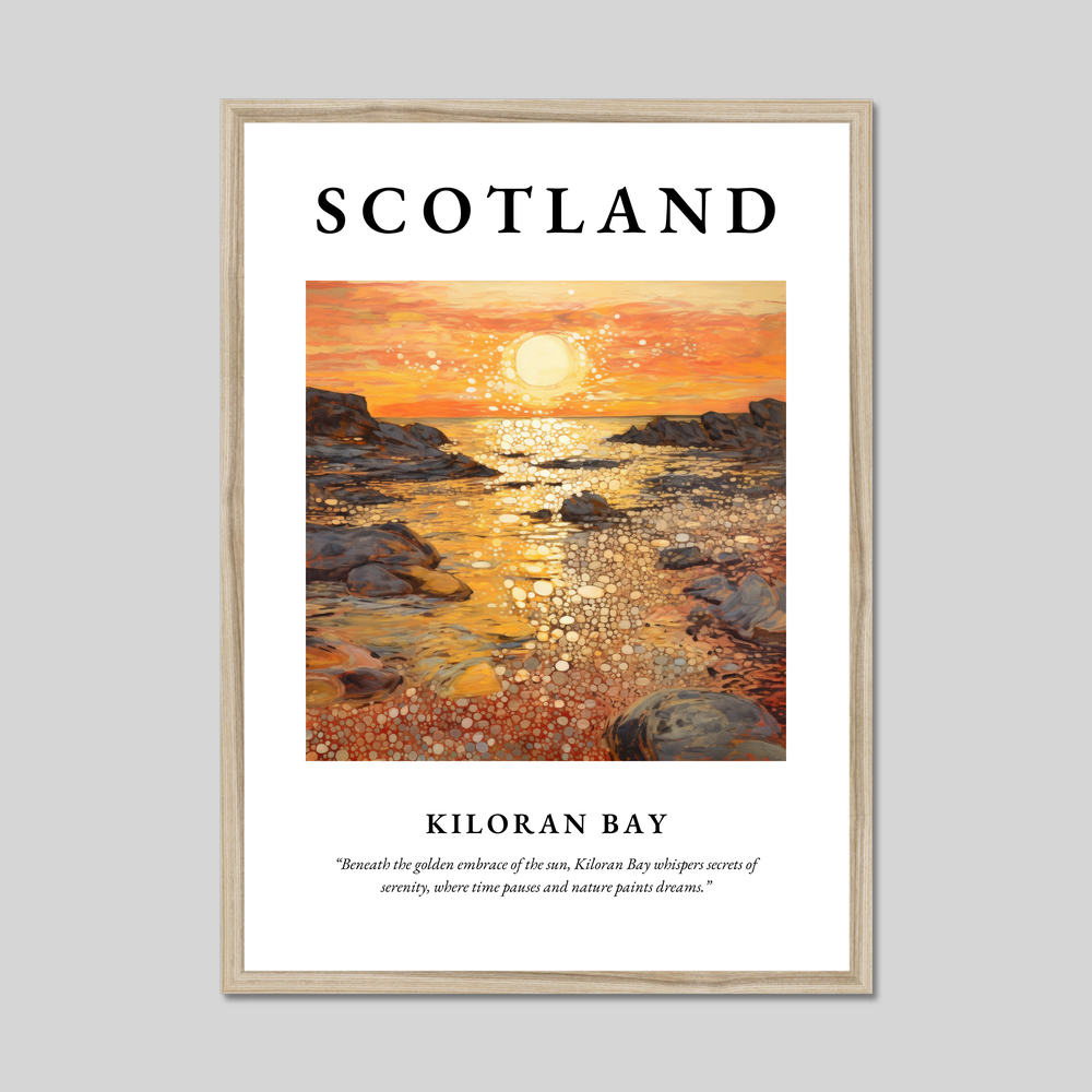Immerse yourself in the serene beauty of Scotland with our Kiloran Bay art print, masterfully capturing the enchanting essence of this spectacular location. Measuring a generous 50cm x 70cm, this poster is an affordable way to bring a substantial piece of art into your home, occupying a prominent place on any wall without overwhelming your space. The bold word "SCOTLAND" at the top proudly introduces the piece, while the scene beneath it speaks volumes.
