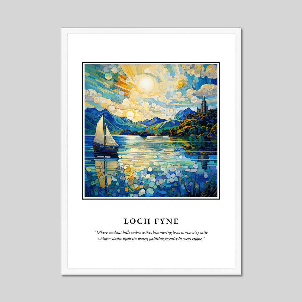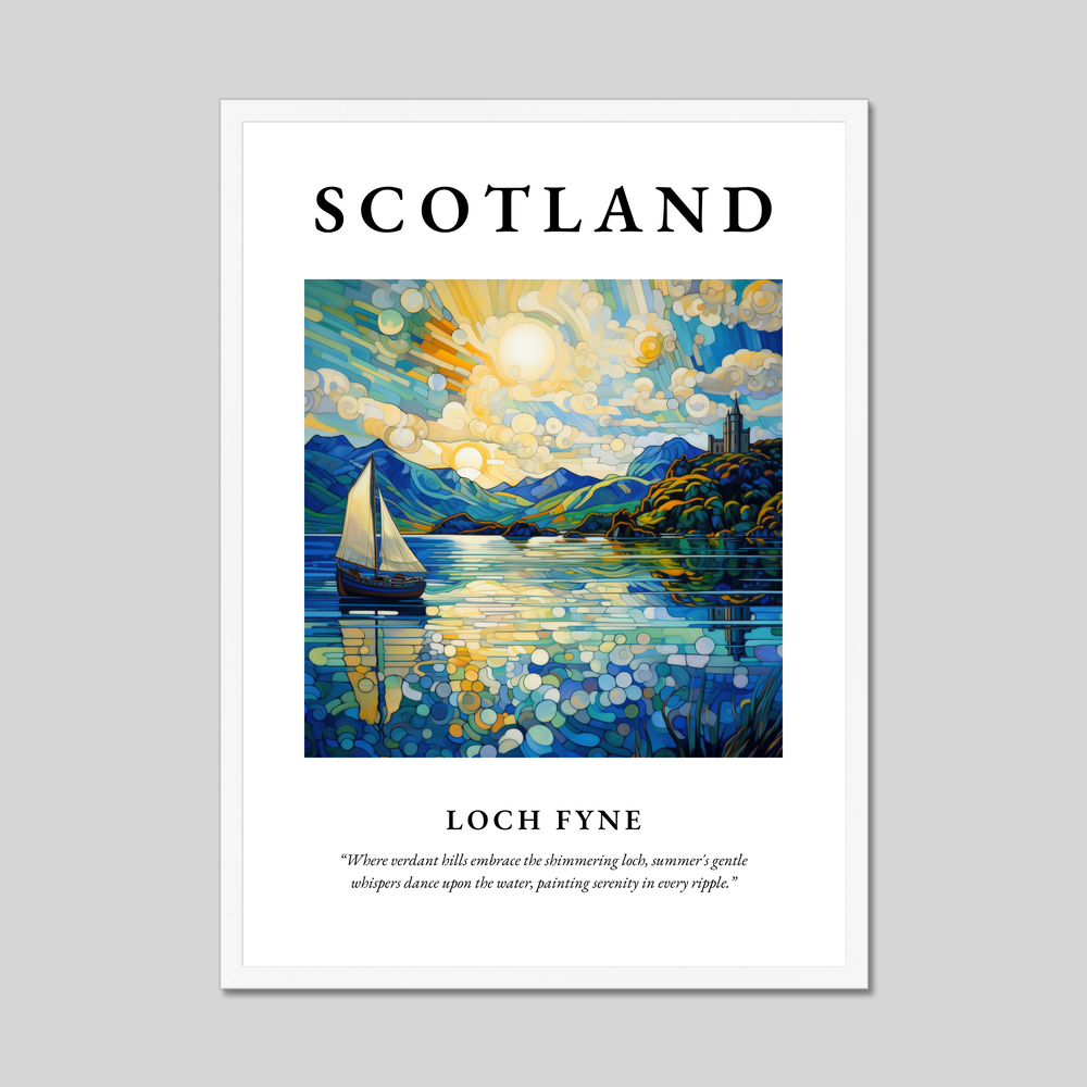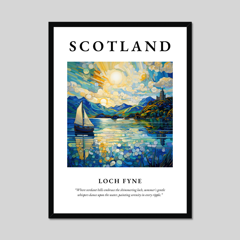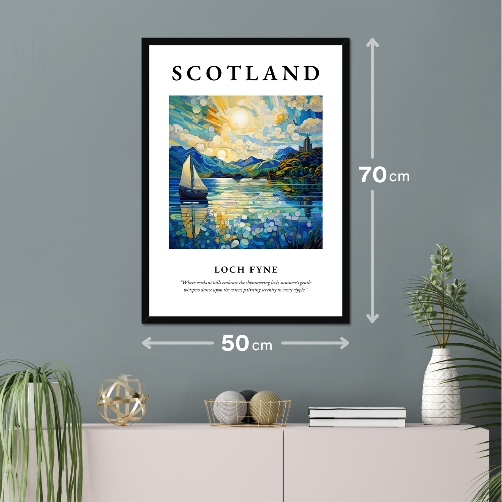 The poster serves not only as a decoration but as an invitation to escape into the serene beauty of Loch Fyne, a place where nature paints its most tranquil scenes. Whether as a gift or a personal indulgence, this framed art print is a celebration of Scotland's enduring allure.