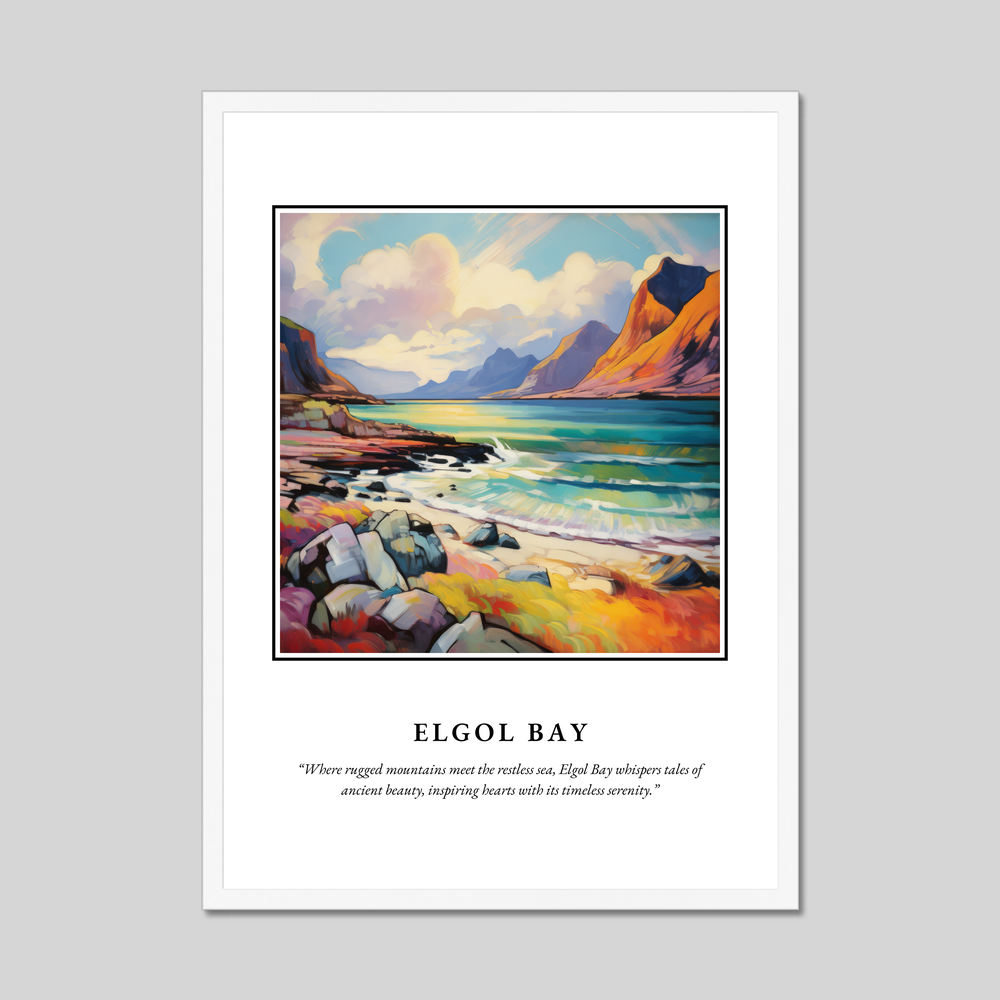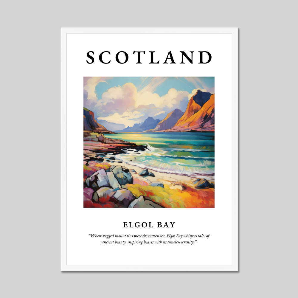 Whether you're drawn to the striking art style or have a personal connection to Elgol Bay, this poster is more than just decor. It’s a celebration of Scotland’s natural majesty, an invitation to journey through imagination to a place where every moment feels timeless and filled with wonder. Let this masterpiece be a source of inspiration and a daily reminder of the awe-inspiring beauty of the Scottish Highlands.