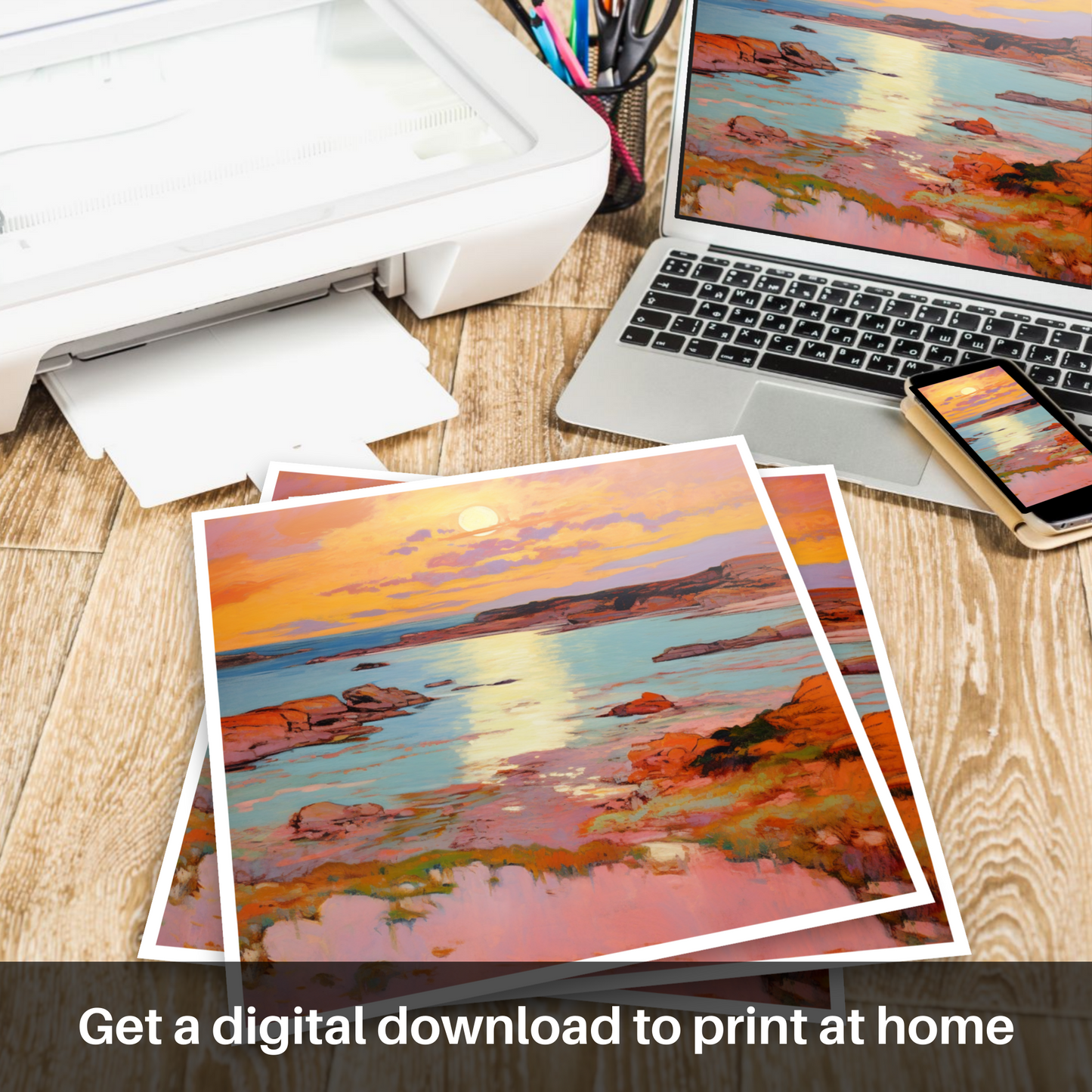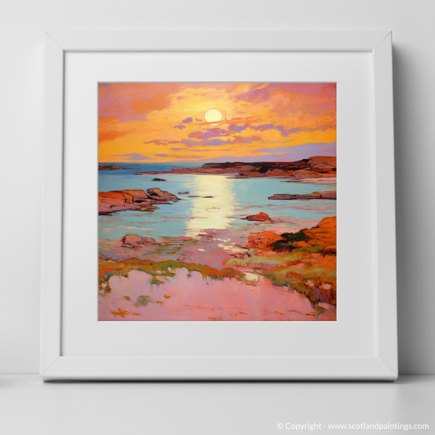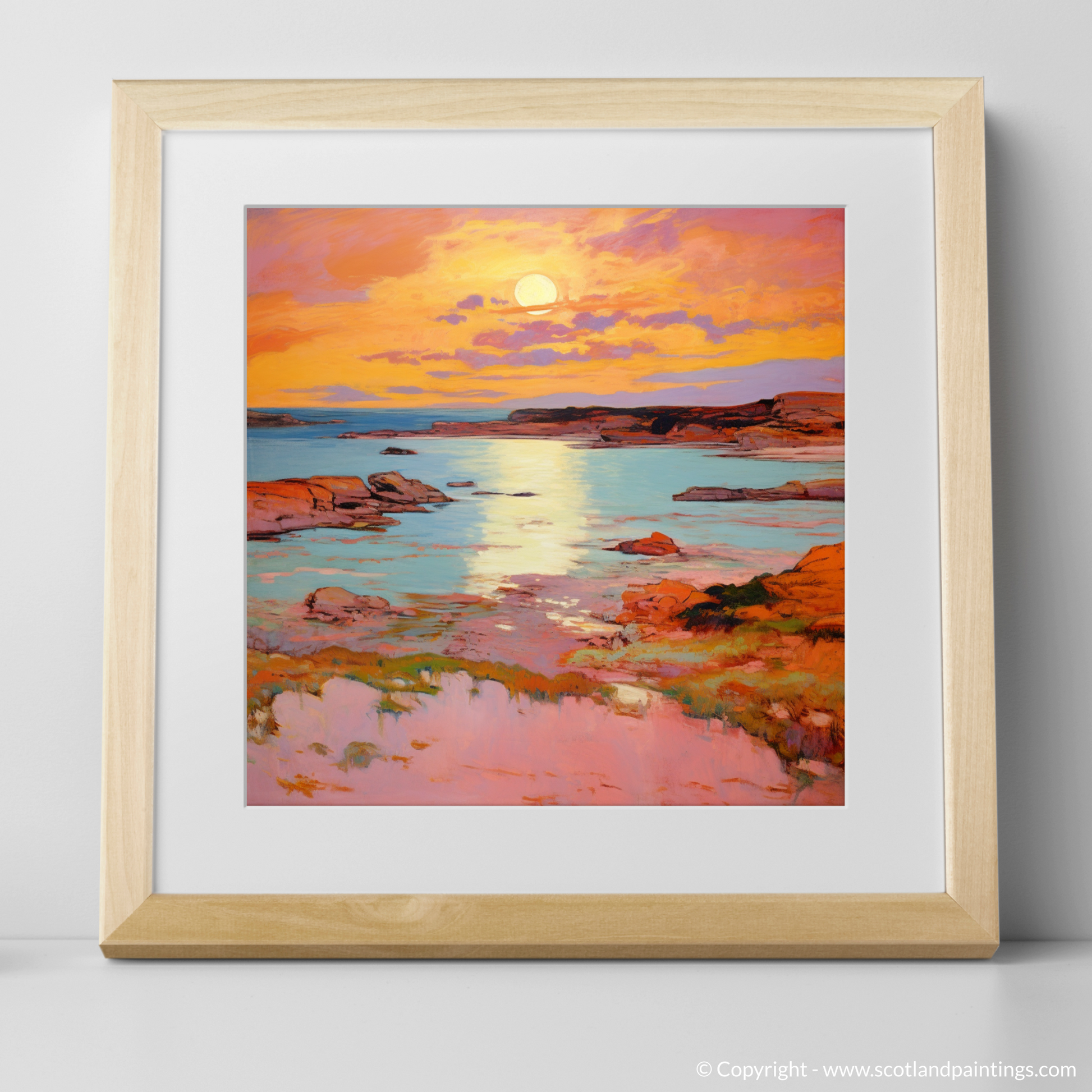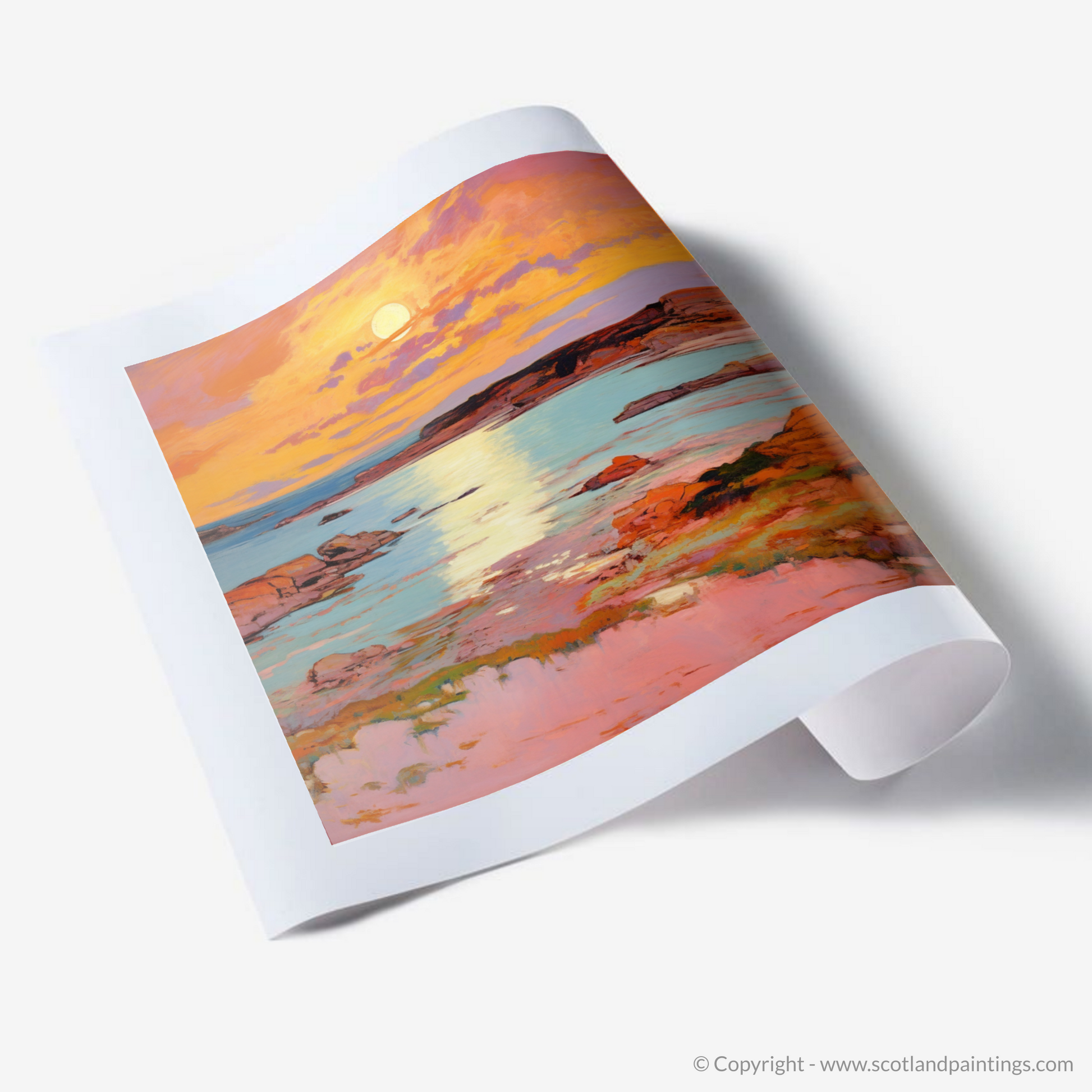 As the day gives way to a resplendent evening, the essence of Balnakeil Bay is masterfully captured at the peak of sunset. This exquisite print, a part of the 'Scottish Coves' collection, is a tribute to nature's serene magnificence and resonates with the emotive strokes of Impressionism.
