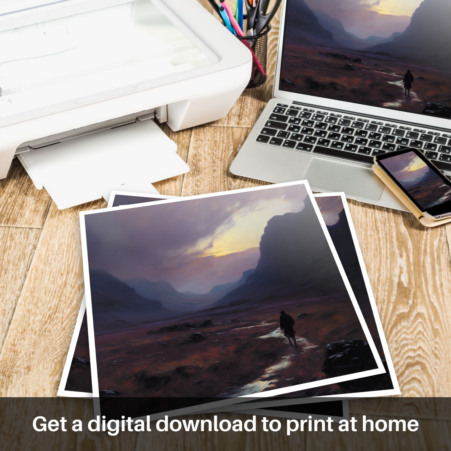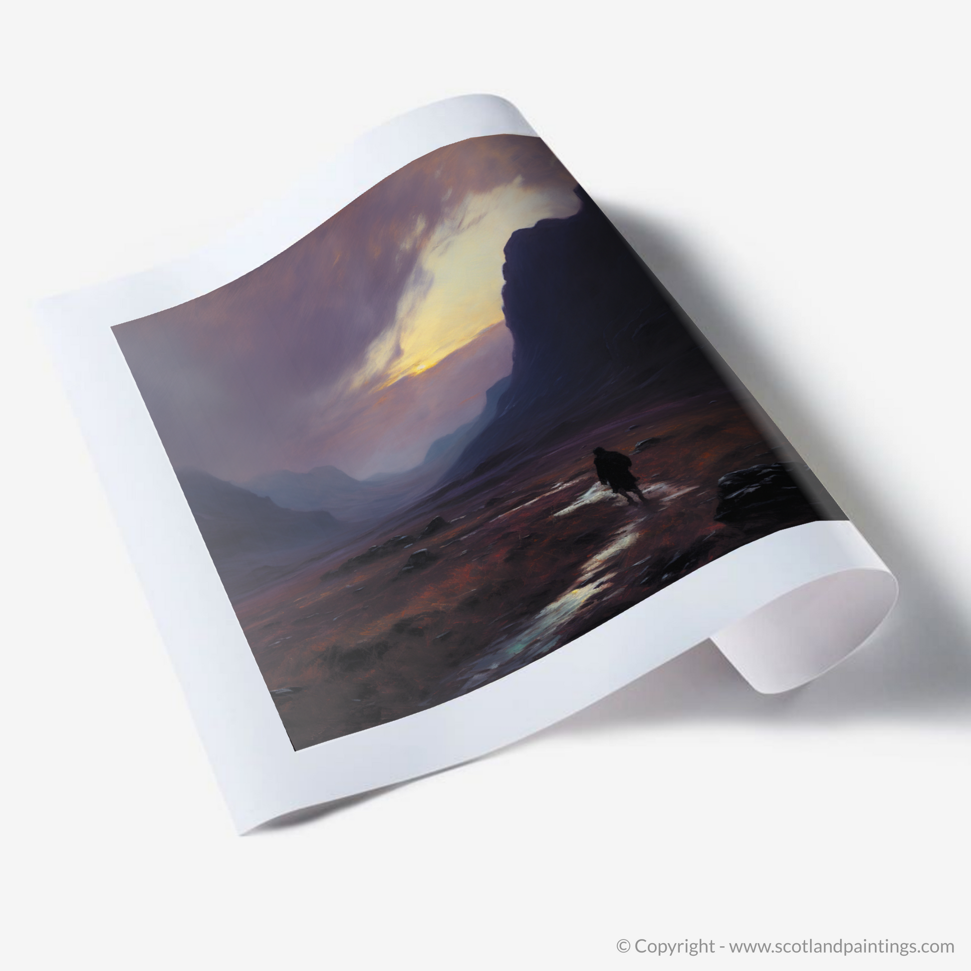 Adorning any space with this print promises not just a visual delight, but a portal to the caliginous heights of Glencoe, ablaze with the dying light of day and alive with the silent stories of solitary rambles through the Scottish wilds.