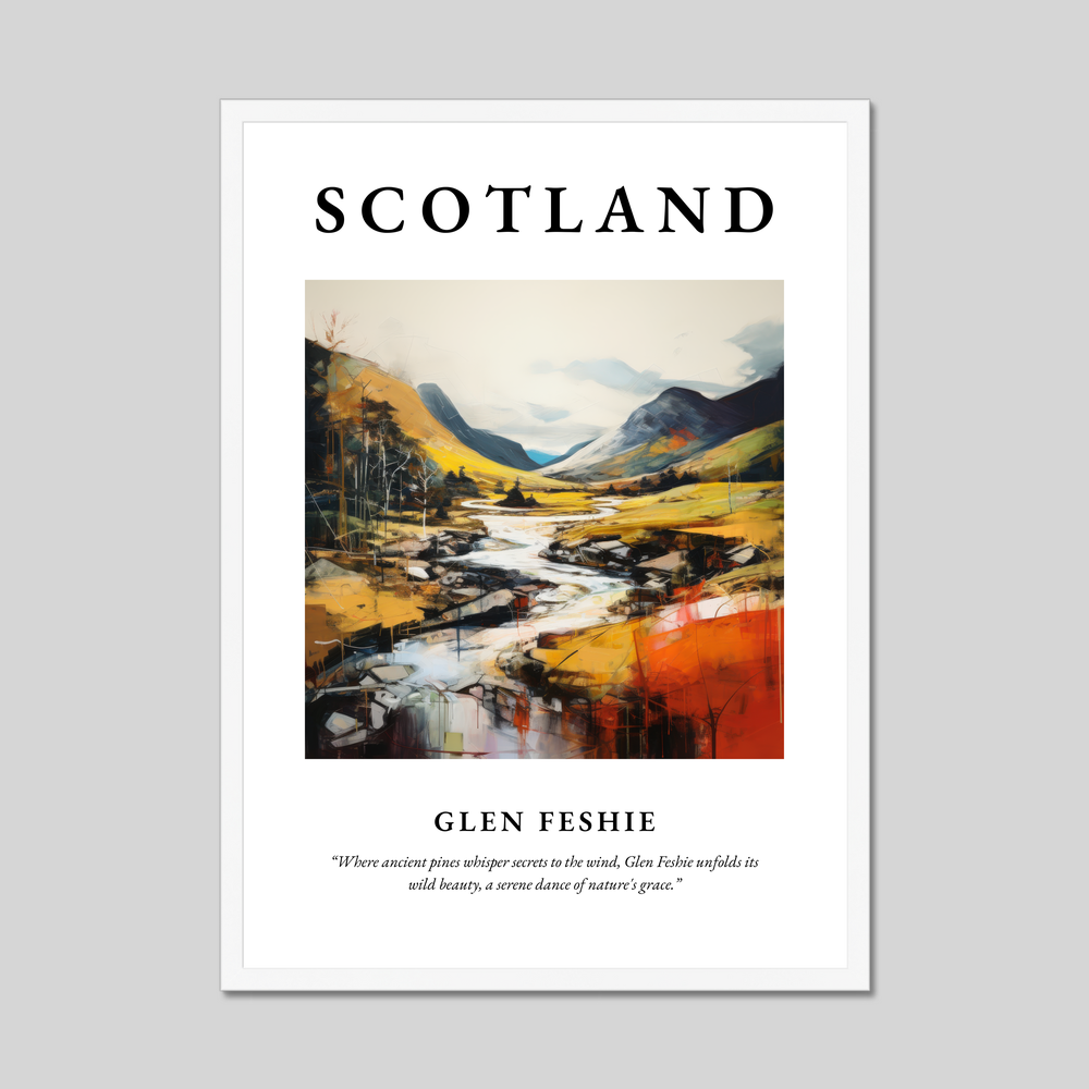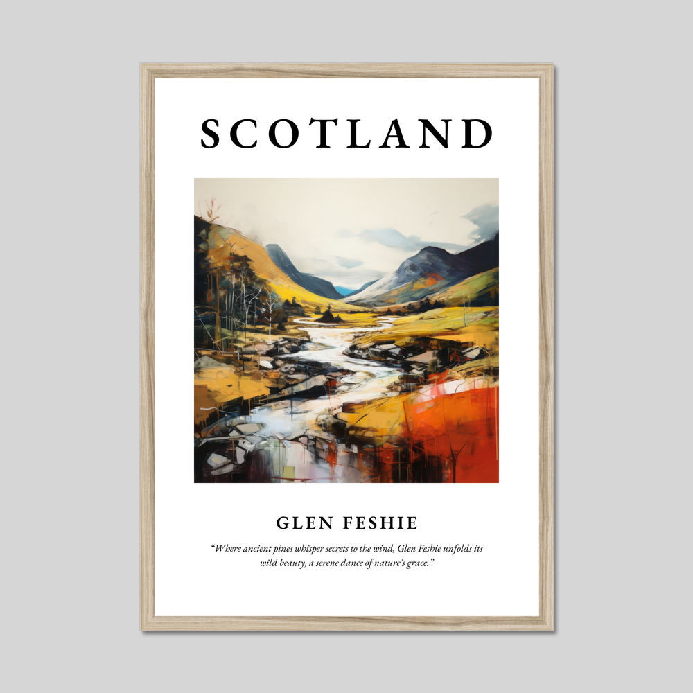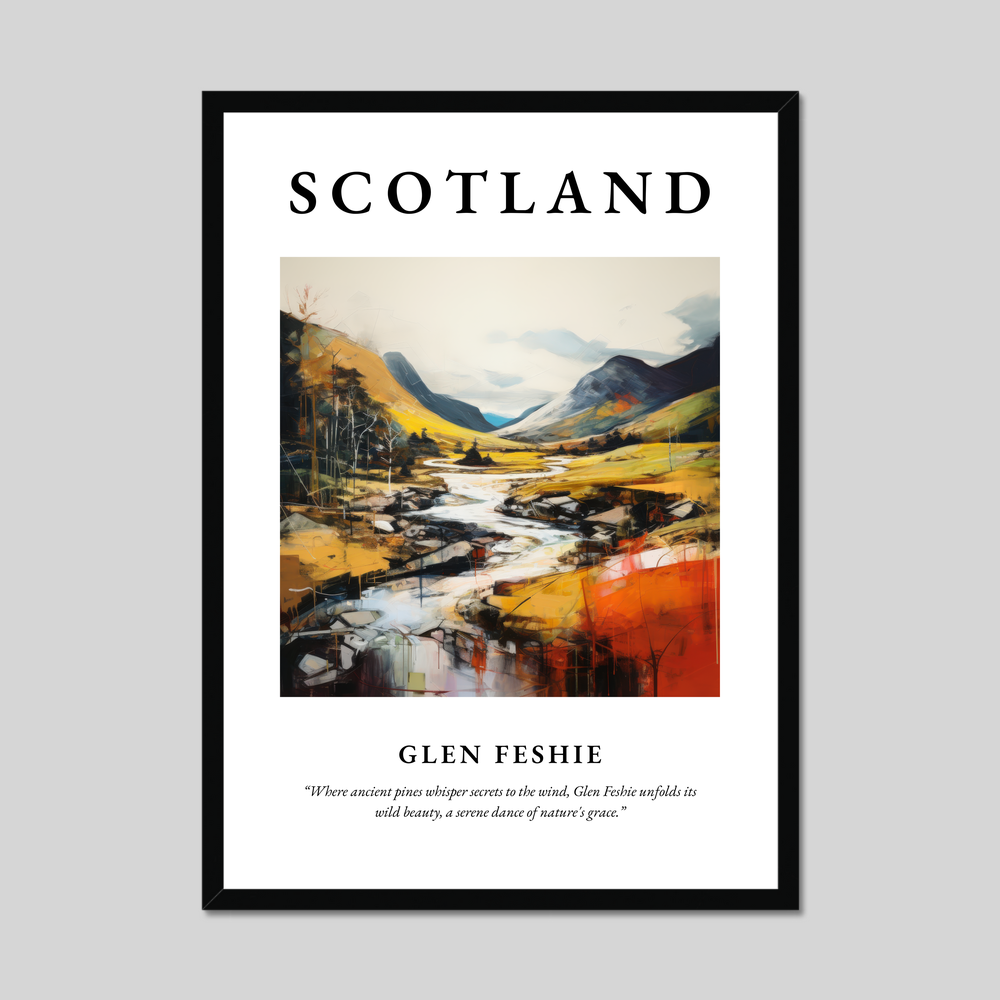 Introducing our captivating Glen Feshie framed poster print, a stunning tribute to the breath-taking landscapes of Scotland. Measuring an impressive 50cm x 70cm, this poster is designed to make a bold statement on any wall. Available in elegant black, white, or natural wood-effect frames, it effortlessly complements any decor style.