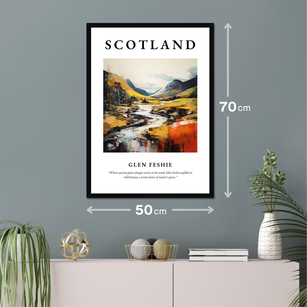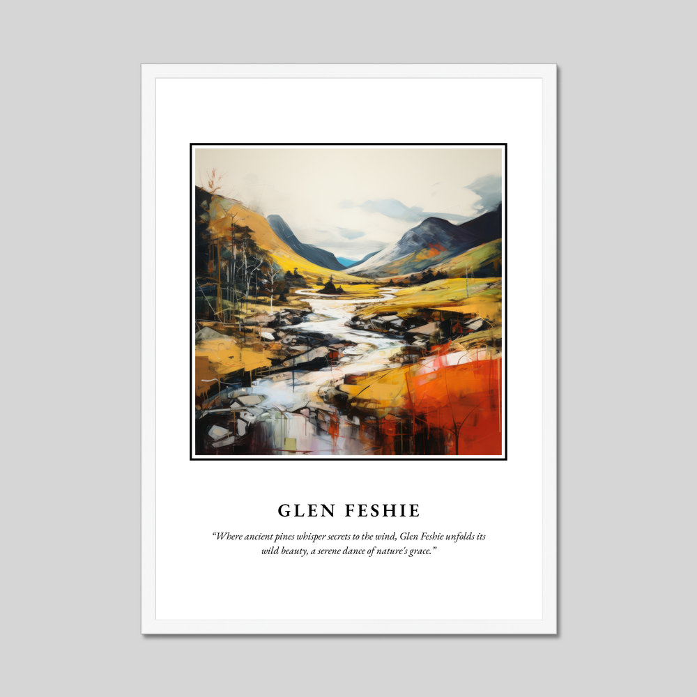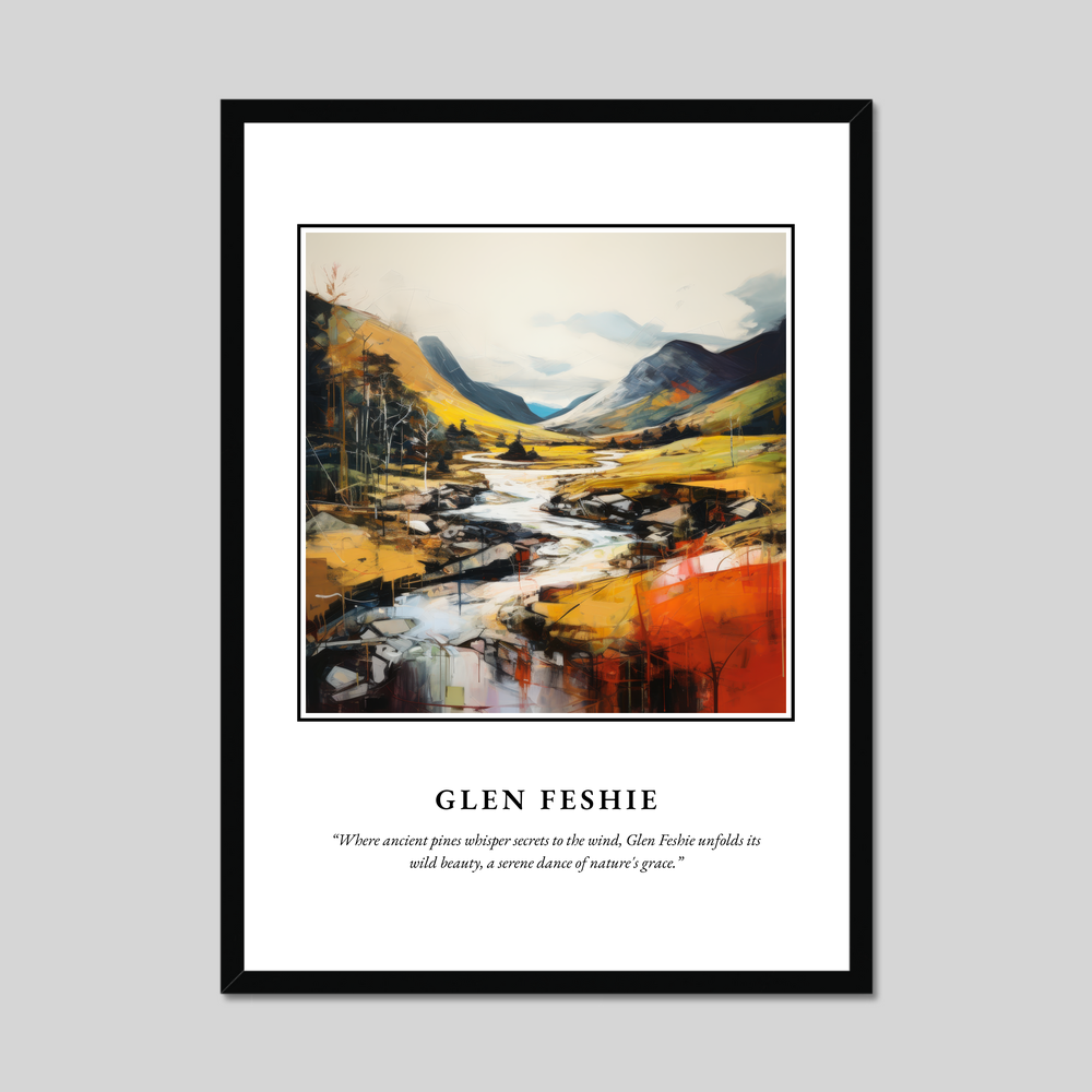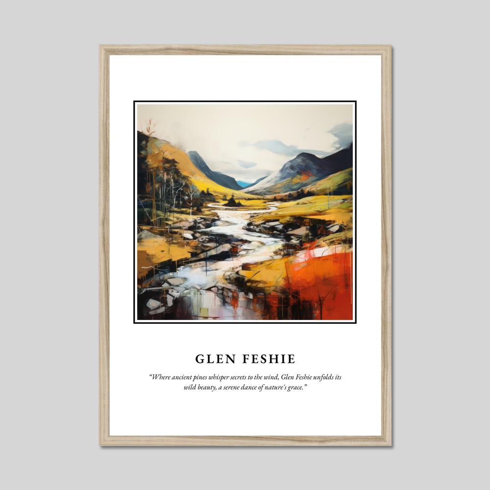 Introducing our captivating Glen Feshie framed poster print, a stunning tribute to the breath-taking landscapes of Scotland. Measuring an impressive 50cm x 70cm, this poster is designed to make a bold statement on any wall. Available in elegant black, white, or natural wood-effect frames, it effortlessly complements any decor style.