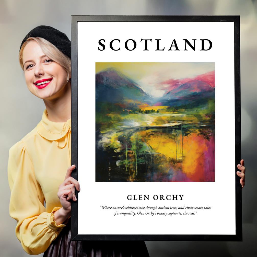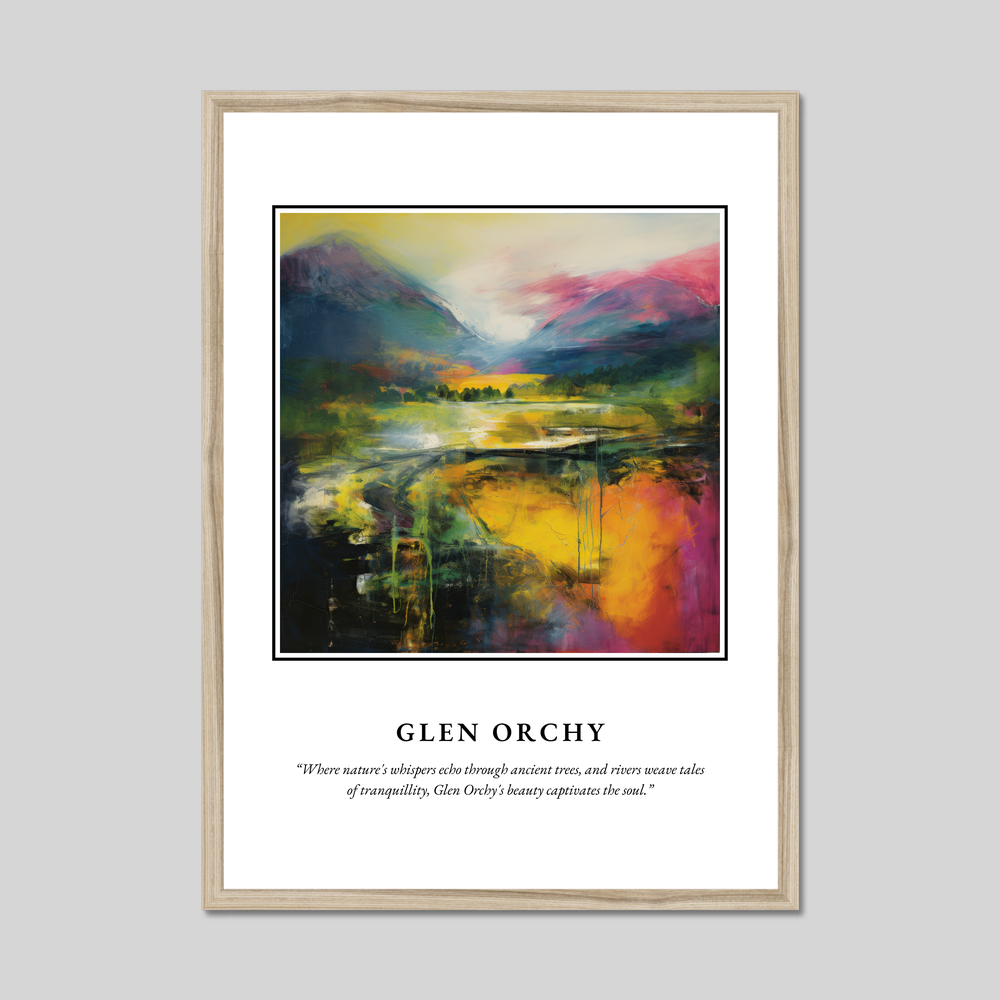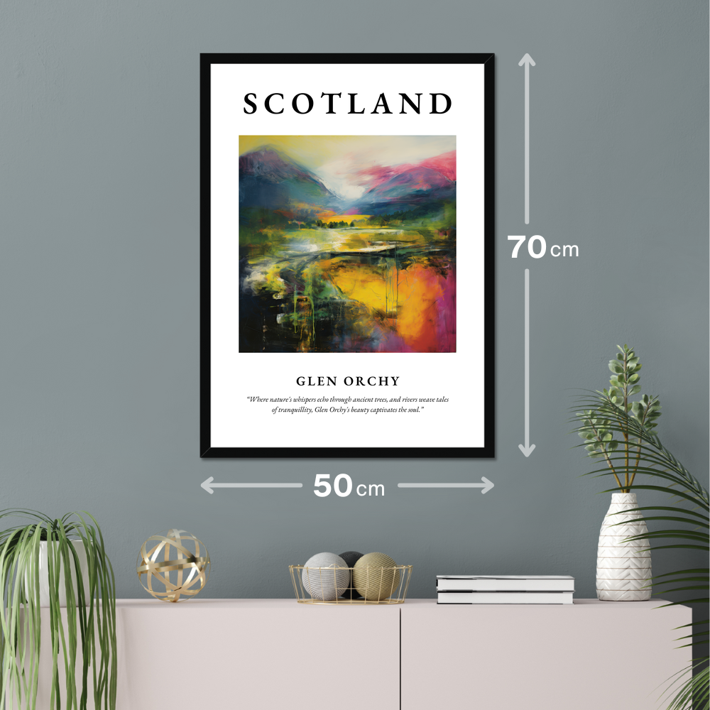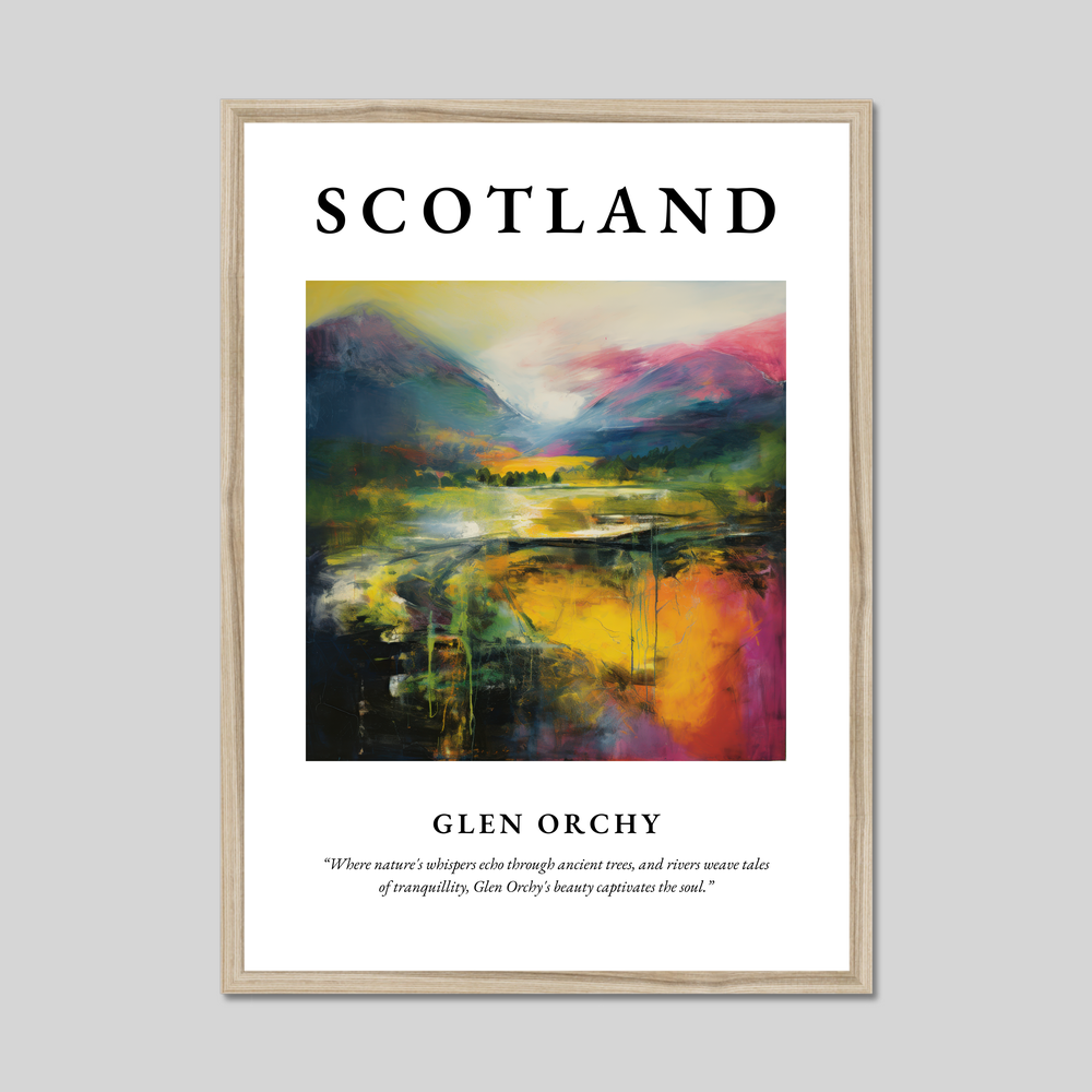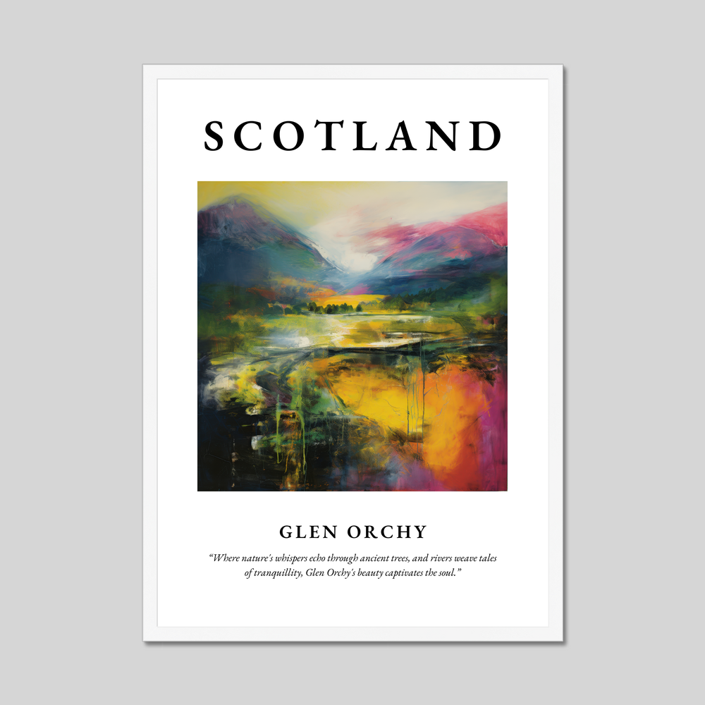Vibrant and evocative, this stunning framed poster from our "Scottish Glens" collection brings the haunting beauty of Glen Orchy into your living space. Measuring an impressive 50cm x 70cm, it commands attention on your wall, offering a grand scale without a hefty price tag. Adorning the top in bold lettering, “SCOTLAND” proudly introduces you to the enchantment below—a mesmerising Abstract Expressionist painting that captures the essence of Glen Orchy.