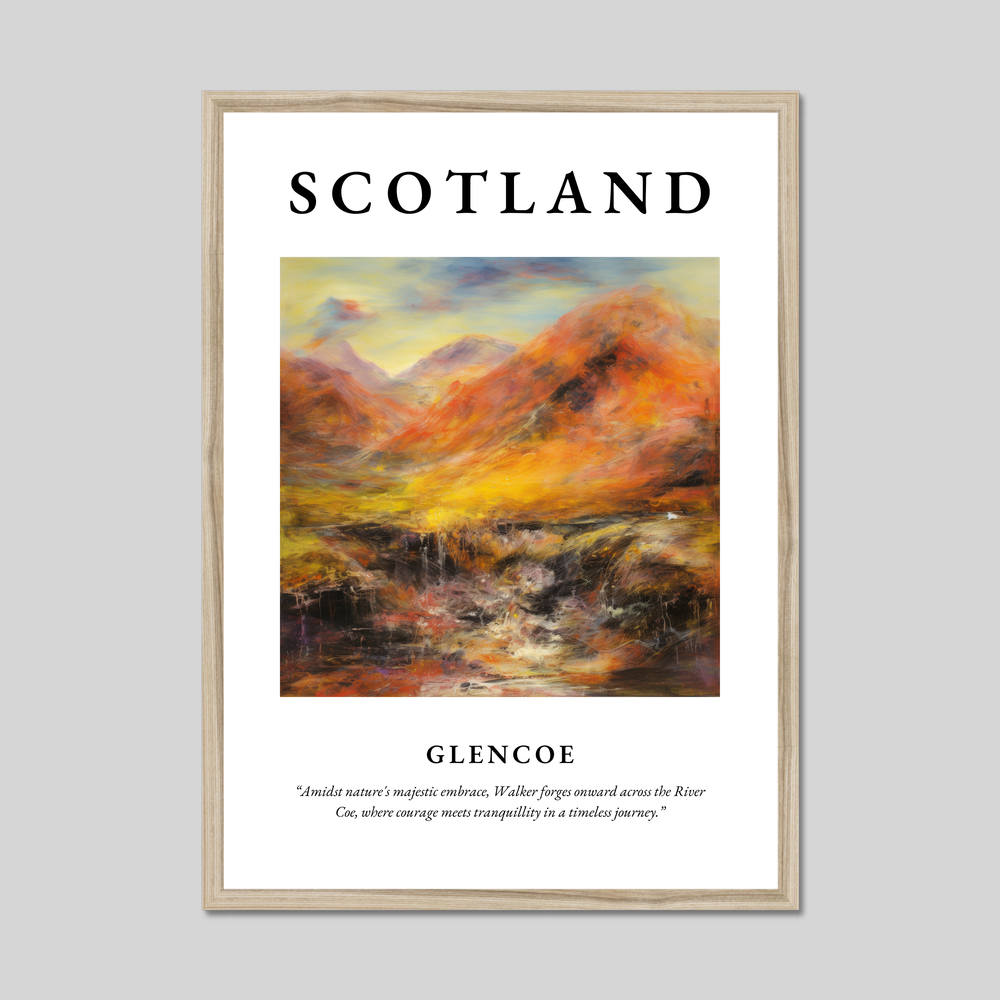 Immerse yourself in the captivating allure of Scotland with our stunning framed poster print from the "Glencoe" collection. Measuring an impressive 50cm x 70cm, this large artwork vividly captures the essence of Glencoe's majestic landscape, beautifully depicted in the bold style of Abstract Expressionism. Choose from a sleek black, classic white, or natural wood-effect frame to seamlessly complement your home decor.